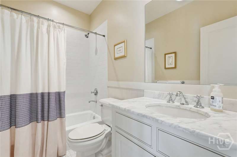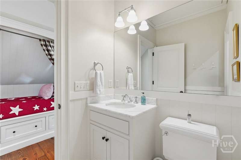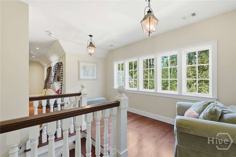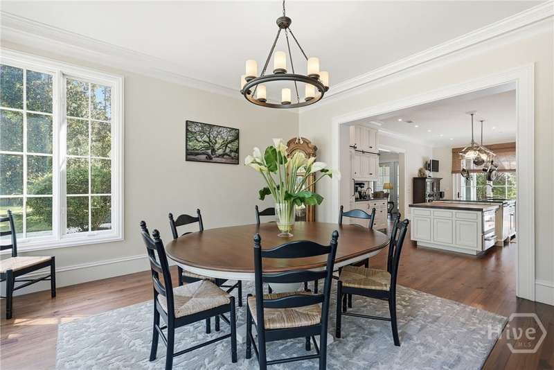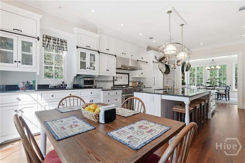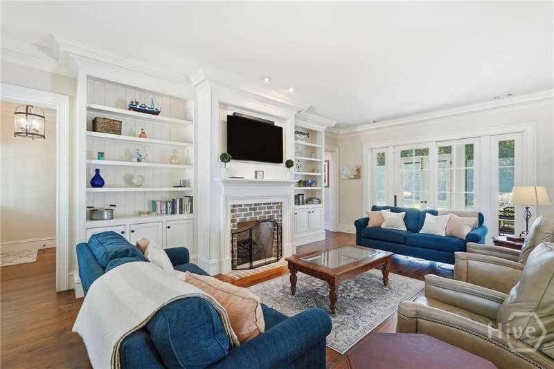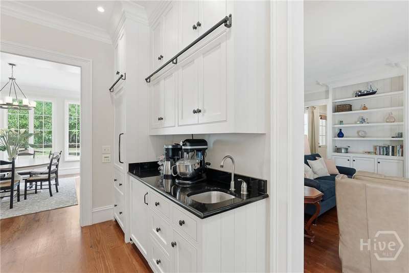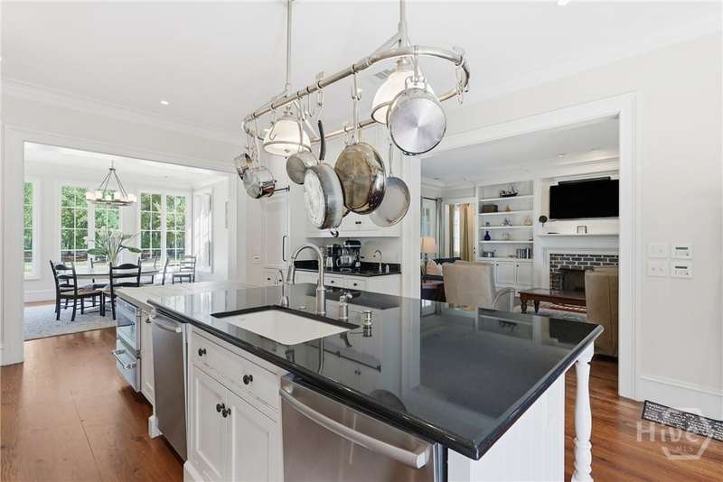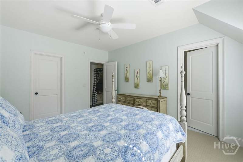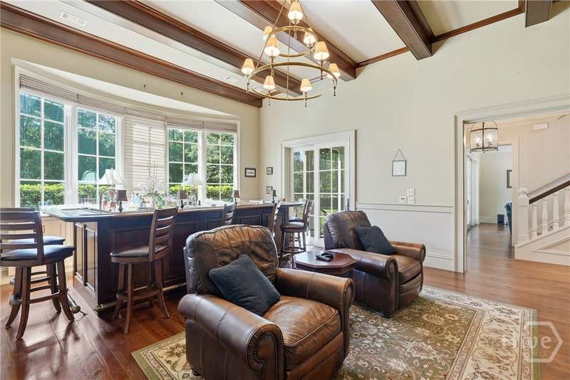 Tucked within this exclusive community, this 4-bed, 4-full & 2-half-bath home offers an extraordinary blend of comfort, character, and craftsmanship. Designed with entertaining in mind, the heart of the home showcases a spacious kitchen, an elegant dining area, and a full sports bar, perfect for hosting gatherings. Primary suite is privately situated on the main level with access to the serene backyard. Dual walk-in closets and a spa-inspired bathroom create a sense of everyday luxury. Upstairs, 3 additional bedrooms each feature their own ensuite baths, and one enjoys a private balcony overlooking the lush grounds. A built-in bunk nook adds charm while a detached carriage house provides a 2-car garage, golf cart bay, and the footprint for future guest quarter.Surrounded by evergreens and set in one of the most peaceful corners of Ford Field & River Club, this residence is as idyllic as it is impressive. A perfect blend of elegance, creativity, and timeless Lowcountry living.