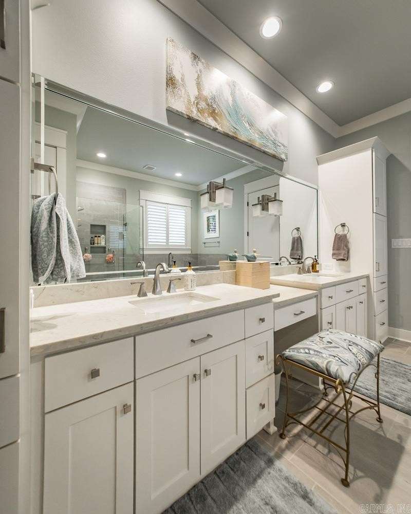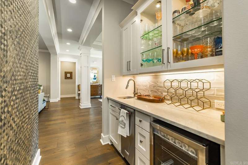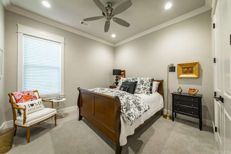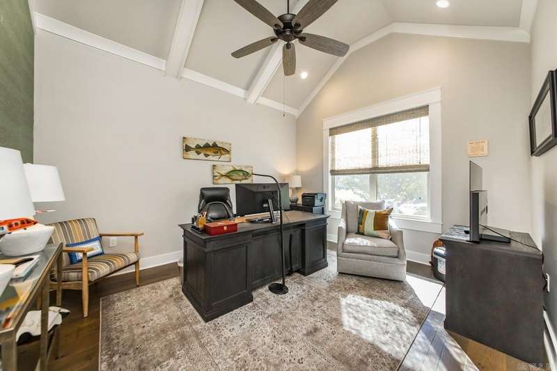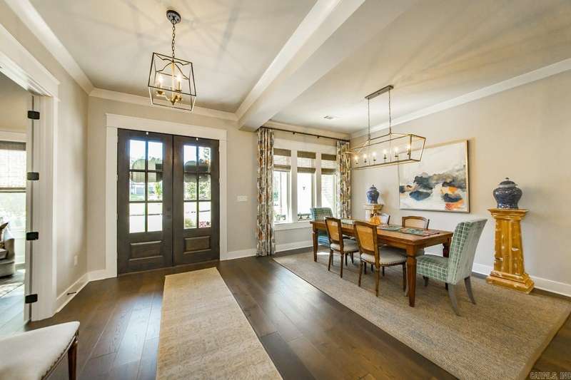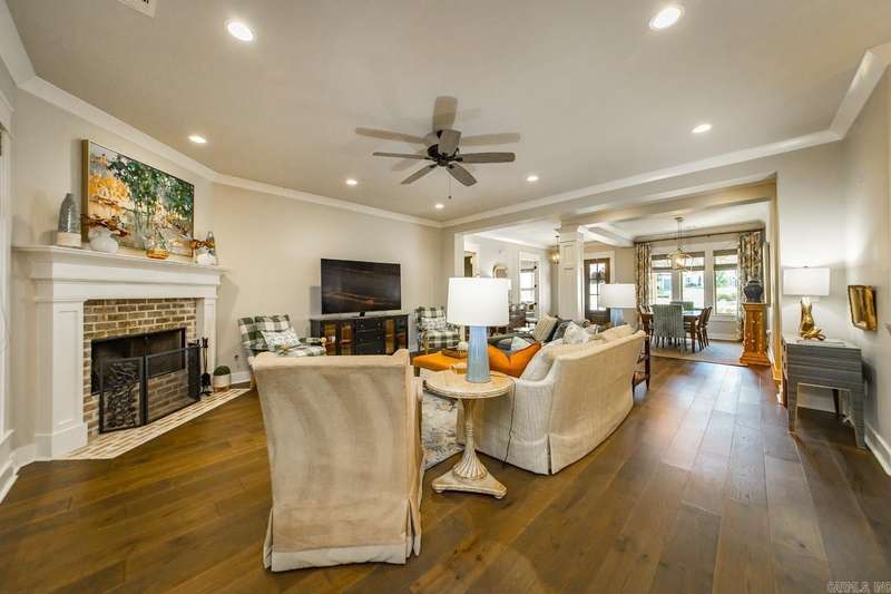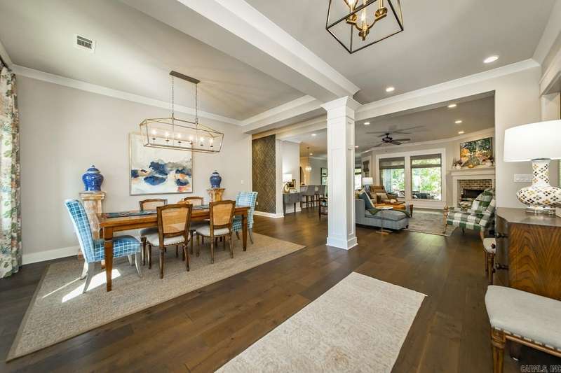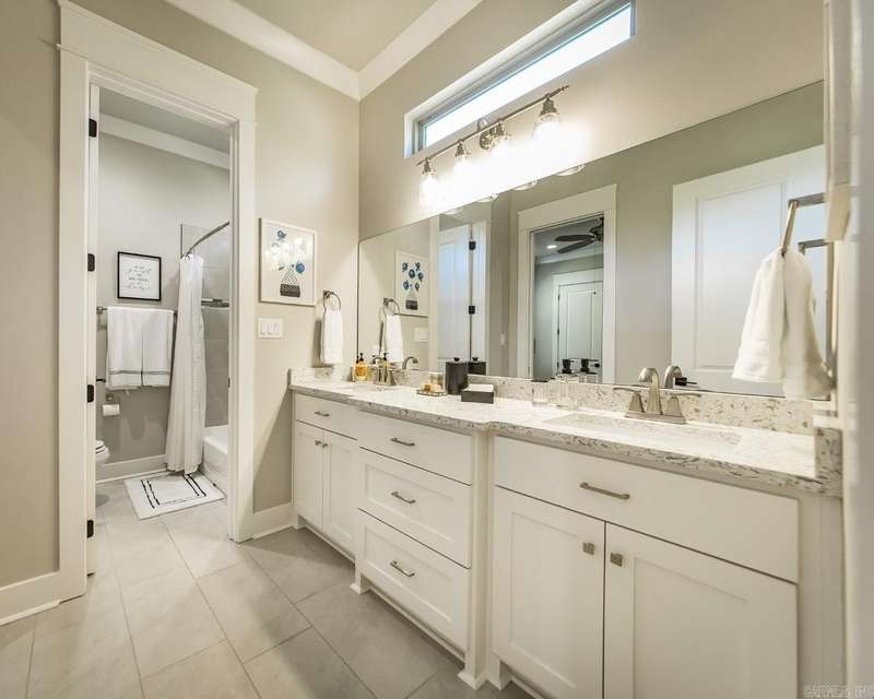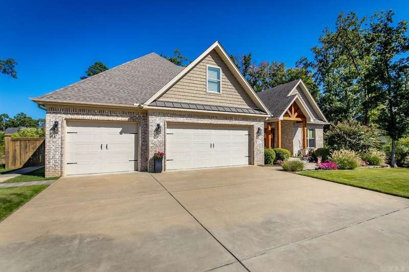 PREMIER 3,960 SQ FT LUXURY IN CHENAL VALLEY'S ENSBURY PLACE! This exceptional 5 bedroom, 4.5 bath home is designed for sophisticated living. Step inside the grand open-concept floor plan featuring striking 10-foot ceilings and natural light. Gather around the warm wood-burning fireplace in the living room on chilly evenings. The spectacular Owner's Suite is a true sanctuary with an oversized walk-in closet and a spa-like bath boasting a soaking tub and separate walk-in shower.. Outdoor entertaining is effortless on the covered porch, complete with its own wood-burning fireplace and dedicated TV hookup. Location is unparalleled: enjoy a 1-minute golf cart ride to Chenal Country Club's Bear Den Course! The home is supported by high-end features, including an oversized 3-car garage, dual tankless water heaters, a home security system, and an in-bar fridge/ice maker. The property boasts beautiful, enhanced landscaping maintained by an irrigation system. A new EZ-GO golf cart is also available for separate purchase.