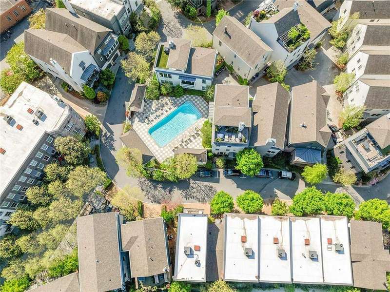 A luxury, custom-built Hedgewood dream home in the best intown location in Atlanta. Immediately, you'll love the charming exterior, including a private and impressive Cotswold-style courtyard entrance on Lambert Drive, plus a secondary family entrance and garage on Bismark, steps to the community pool. This home has all the most envious features of Manchester homes, including a spacious and light-filled open concept main floor, one-of-a-kind top floor terrace with dazzling views of Buckhead, and elevator connecting you to all floors. And the location within the community is ideal - with the vibrant energy and sparkling city views on one side, and the tranquility of true, walkable community living on the other. If you're a cook (or just want to impress your private chef or caterer!), you'll love the expansive kitchen with large center island. Everyone loves a butler's pantry, and this home has an enviable one with tons of storage and elegant glass cabinetry. There's plenty of room for both barstools at the island, plus a large dining table. The main level also features a wood burning fireplace, seating area large enough for a sofa and chairs, built-in bookshelves, and the cutest powder room. Floor to ceiling windows let in all the light, and perfectly frame the balcony planter boxes. The top floor terrace is the home's showstopper: an urban gardener's paradise, with plenty of space to relax and entertain, and city views to dazzle guests. Also upstairs, the primary suite has a spacious bathroom with dual vanities and a large shower - and your secondary bedroom and full bath enjoy quietude and lovely views. Your third bedroom and full bath is on the ground level, making it perfect for a guest seeking privacy or for your home office. Storage and parking are no concern, with a large attic, and a 2-car garage (and elevator from the garage level all the way to the top floor!). Manchester is a hidden gem that offers the resort-style perks of a true community with peaceful gathering places, a spectacular pool, and meandering walking paths - but just moments from all that this coveted intown location has to offer, including Morningside Village, Sprouts Market, Ansley Golf Club, Ansley Mall, the Beltline, and quick access to I-85, Buckhead, Midtown and Downtown.