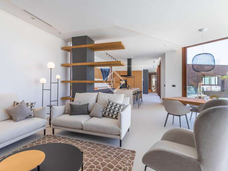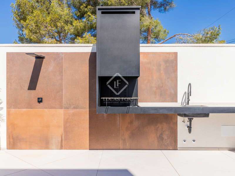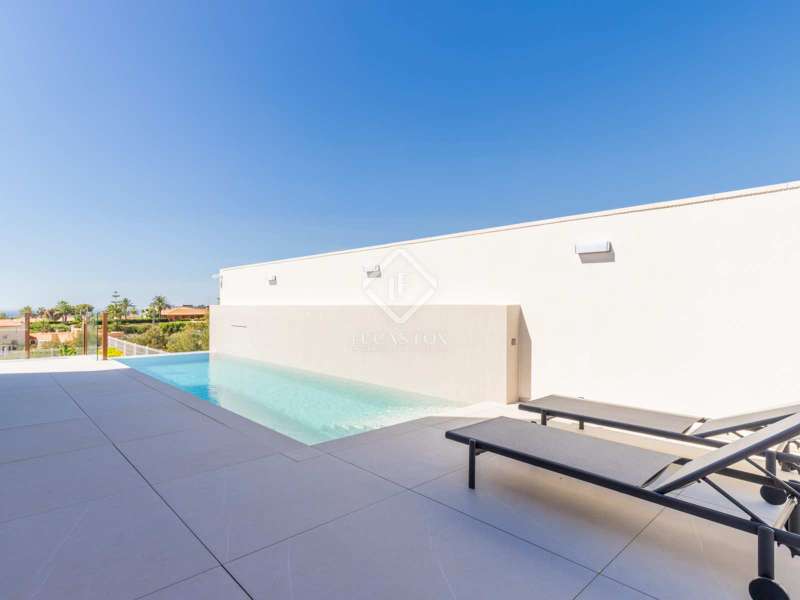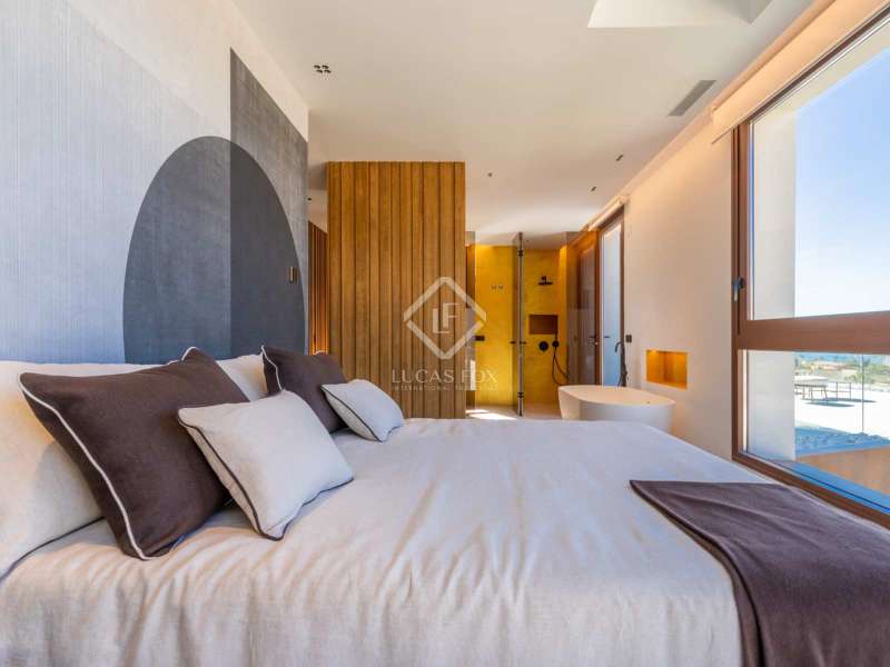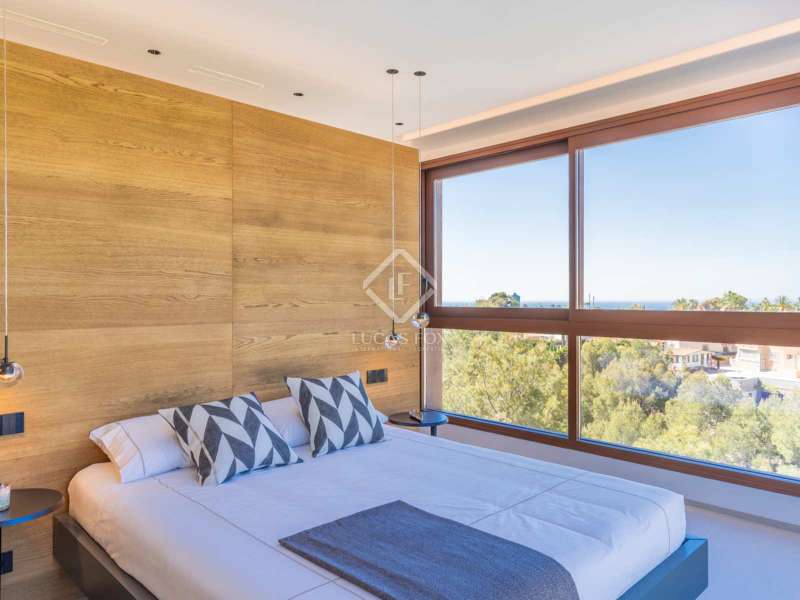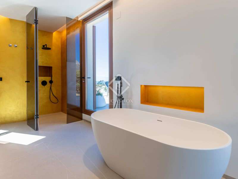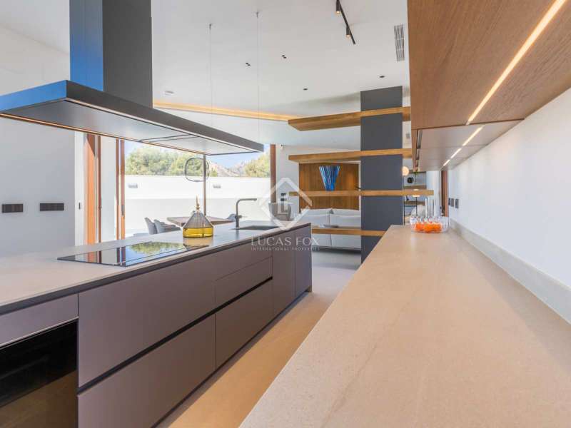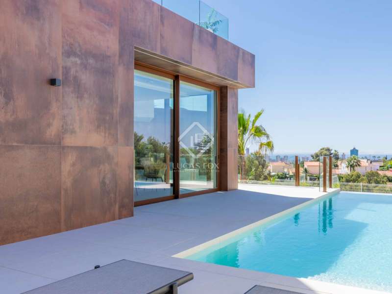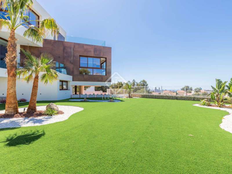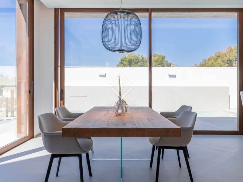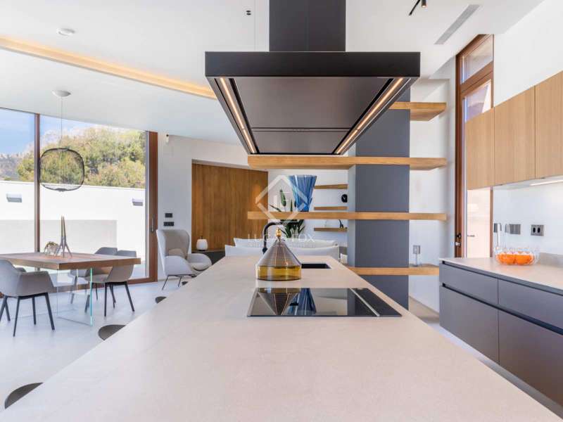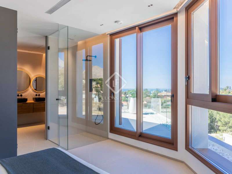 Located between the coast and the mountains of the charming town of La Nucía, just minutes from the bustling coastal city of Benidorm, this residence is an outstanding example of modern architecture. As you approach the property, the elegance and cleanliness of its design immediately captivate. Straight lines and high-quality finishes give this home an impeccable appearance. The spacious living room offers a stunning panoramic view of the Mediterranean Sea. Large glass windows, protected from the sun, allow natural light and sea breezes to flood the rooms, creating a cozy and relaxing atmosphere. The house features a spacious office and four complete suites, all with sea views and two of them with access to private terraces. The spaces are elegantly designed with minimalist furniture and finishes in light tones, promoting a serene atmosphere. Each room has a private bathroom and dressing room, ensuring a luxurious and comfortable experience. On the ground floor, a luxurious spa stands as the heart of the residence. Equipped with a heated jacuzzi-style swimming pool, a large Finnish sauna, Turkish bath, and a wine cellar, this space invites absolute relaxation. Additionally, an outdoor infinity pool and barbecue area allow you to enjoy the outdoors and sunset views from the meticulously maintained garden. The garage, with capacity for two vehicles, is equipped with an electric car charger. With high insulation in the facade, south orientation, and photovoltaic panels on the roof, this property boasts an "A" energy rating, ideal for environmentally conscious individuals. State-of-the-art home automation, underfloor heating, and Airzone in each room are just some of the details that complete the comfort and quality of this residence. In summary, this property offers a unique lifestyle with modern, elegant, and sophisticated design in the Costa Blanca. If you wish to explore this residence personally, feel free to contact us at +34 646 037 026.