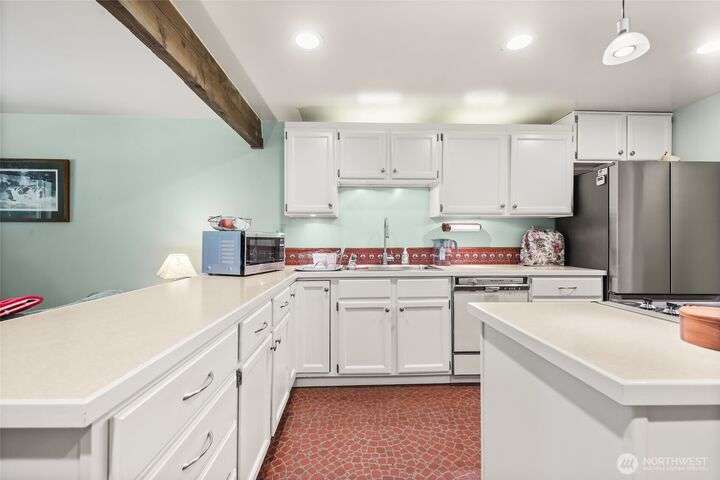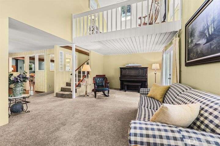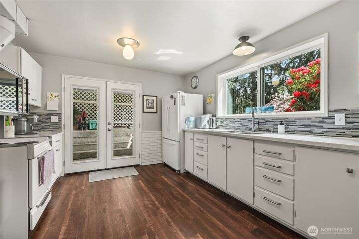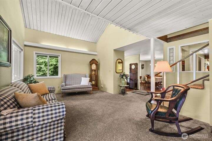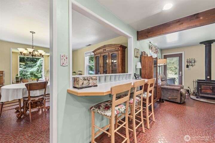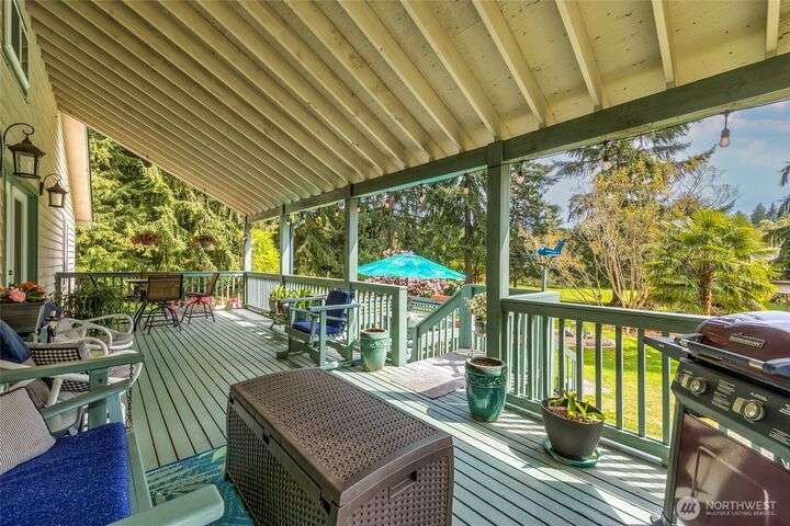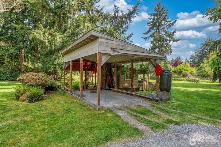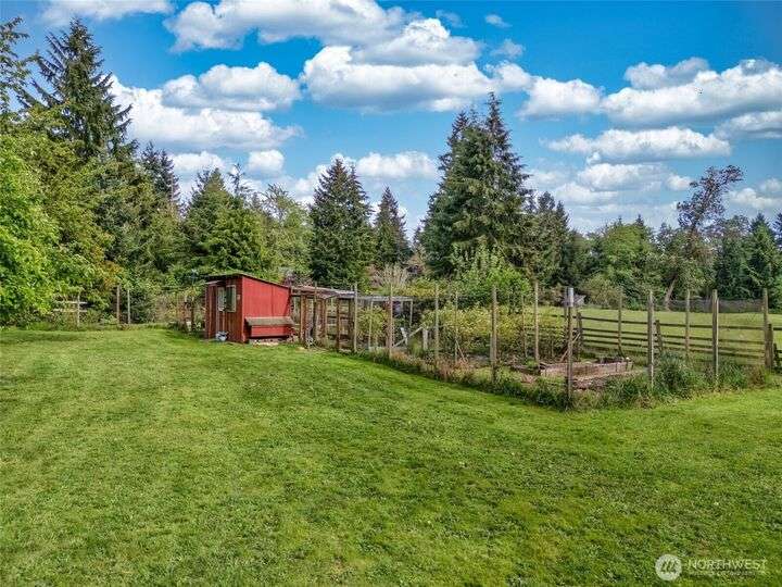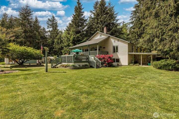 Welcome to your private retreat on this sunny & level shy-5 acre property, with a unique blend of rustic charm & railroad nostalgia. Includes a charming caboose adding a whimsical touch! This one-of-a-kind property features a beautifully appointed home with 3 bedrooms & 2 full baths. Full daylight basement, with private entrance, includes a 2nd kitchen, bedroom, living room, full bath, & a bonus room! MIL apt. or extra income! Two level decks, one completely covered, offer great opportunities for entertaining, summer BBQs, or just relaxing on a rainy day. Spacious shop perfect for hobbies, storage, or workspace. This parklike setting has magnificent fruit trees, a vibrant garden area,plus an outbuiliding for chickens! An extraordinary home!