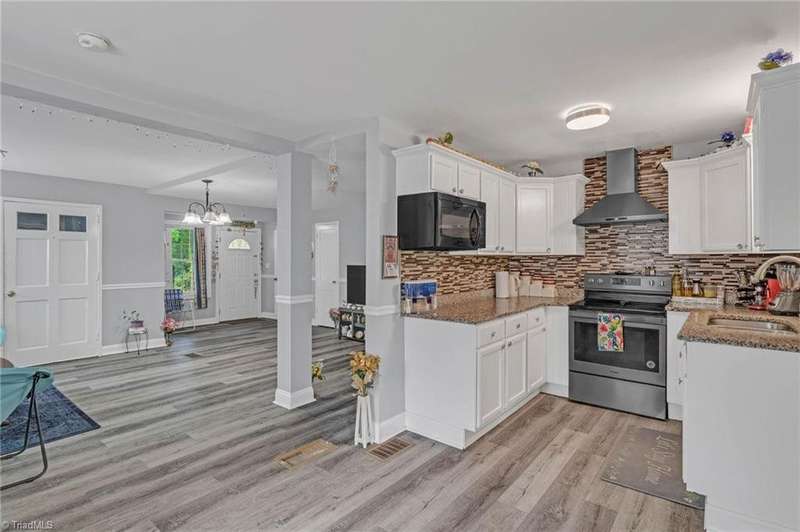 Don't miss this beautifully renovated single-level ranch in Winston-Salem!! Step into an open-concept living space with luxury LVP flooring, ideal for hosting friends or enjoying cozy evenings in. The rocking chair front porch sets the tone for the charm that continues throughout this 3 bed / 1.5 bath home. The kitchen is a true highlight with granite countertops, a stylish tiled backsplash, and crisp white shaker cabinets ? a space you'll love cooking and gathering in. The full bath is thoughtfully tiled, combining comfort and style. Unwind on the covered back porch as you overlook the mature trees and serene landscaping ? your peaceful retreat after a long day. Plus, with easy access to I-85 and I-40, your commute stays convenient while your home feels like a quiet escape. This home checks all the boxes for style, comfort, and location ? and it won't last.