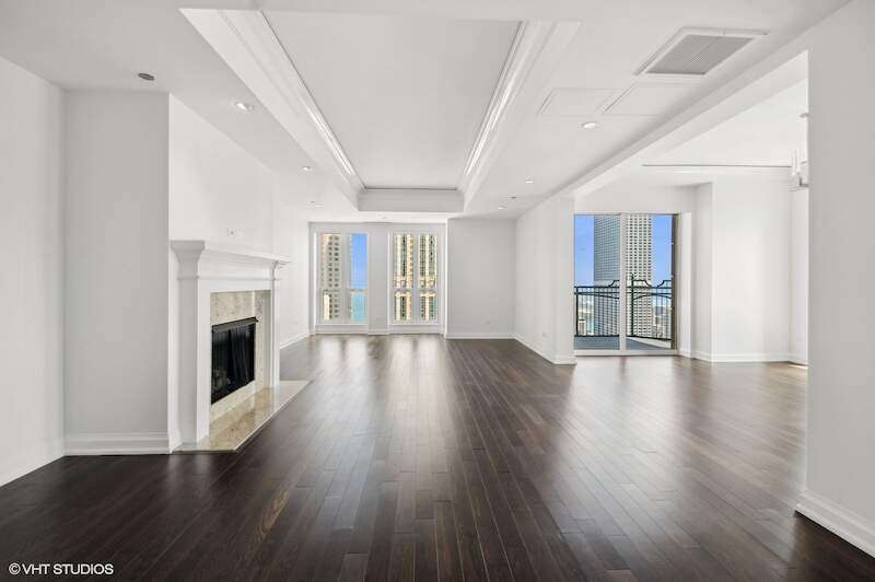 Introducing a rare opportunity to own an exclusive penthouse residence in Chicago's iconic Waldorf Astoria. This boutique-style penthouse offers 12.5-foot ceiling heights and spans 2,650 square feet and features two luxurious bedrooms, two and a half elegantly appointed bathrooms. Immerse yourself in an unparalleled realm of luxury that distinguishes this residence, starting with the private elevator foyer, 12.5-foot ceilings that extend throughout the entirety of the home and expansive picture windows that reveal unobstructed, panoramic views spanning the Southern, Eastern, and Western horizons - showcasing the sparkling city lights views of the lake. Chevron hardwood floors grace the home while the designer lighting anchors each room. The kitchen and family room offer south and east views. A fluid and open floor plan unfolds, effortlessly connecting the family room and kitchen. The formal living space anchored with a fireplace - steps out onto the exceptional 250-square-foot Open Sky Terrace, where the vibrant pulse of the city converges with the awe-inspiring skyscape. Two oversized ensuite bedrooms offer organized closets and luxurious baths. A beautifully designed powder room that combines elegance and functionality - This intimate space features sophisticated decor, with walls adorned in a rich, textured wallpaper that adds depth and warmth. Enhancing this luxurious home, a carefully included parking space is provided, accompanied by additional parking options for your convenience. Elevating the experience, the penthouse encompasses a complete array of five-star amenities and services synonymous with a luxury hotel and spa, ensuring a lifestyle of unmatched comfort and indulgence.