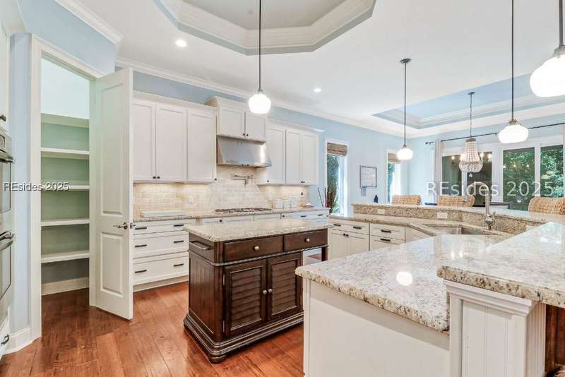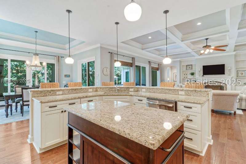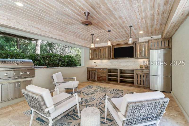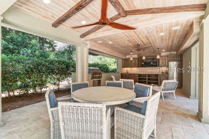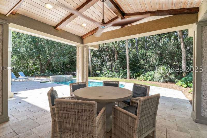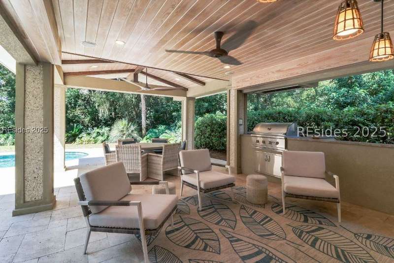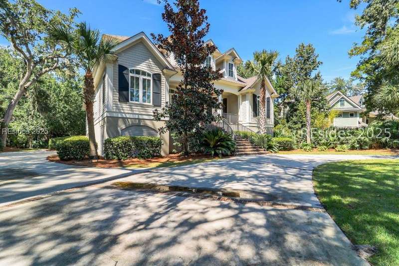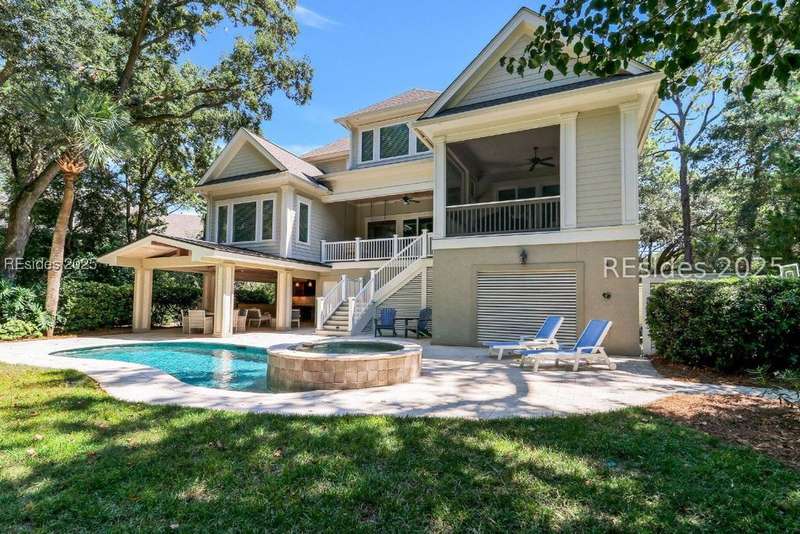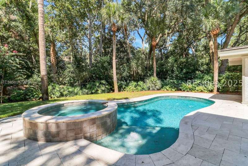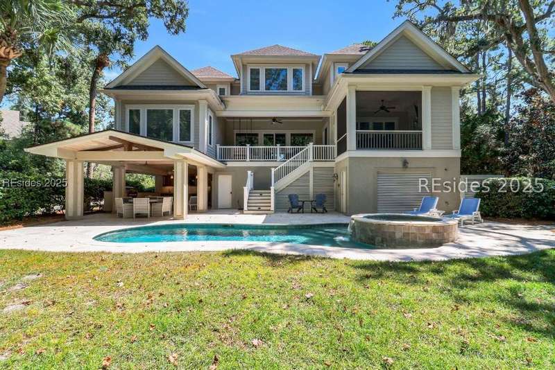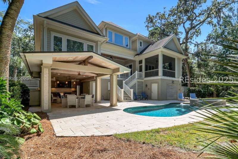 Spectacular, newer (2015) 5 bedroom home on huge 4th row lot, just steps from the beach in Palmetto Dunes. This home, boasting the finest details in construction, appointments and decor shows like new construction as it has only been used as a second home and never a rental. Main level has a huge coffered-ceiling great room, gourmet kitchen, guest bedroom and a luxurious master suite. There is a second master upstairs with 2 additional bedrooms and large entertainment room. Two back porches, one open and one screened with fireplace, overlook a private backyard oasis with heated pool/spa, travertine pool deck, pool bath and a large amazing outdoor kitchen/living area. With elevator shaft built-in and $200K in projected rentals, this home has every consideration you'd want in an Island residence, vacation home or investment property.