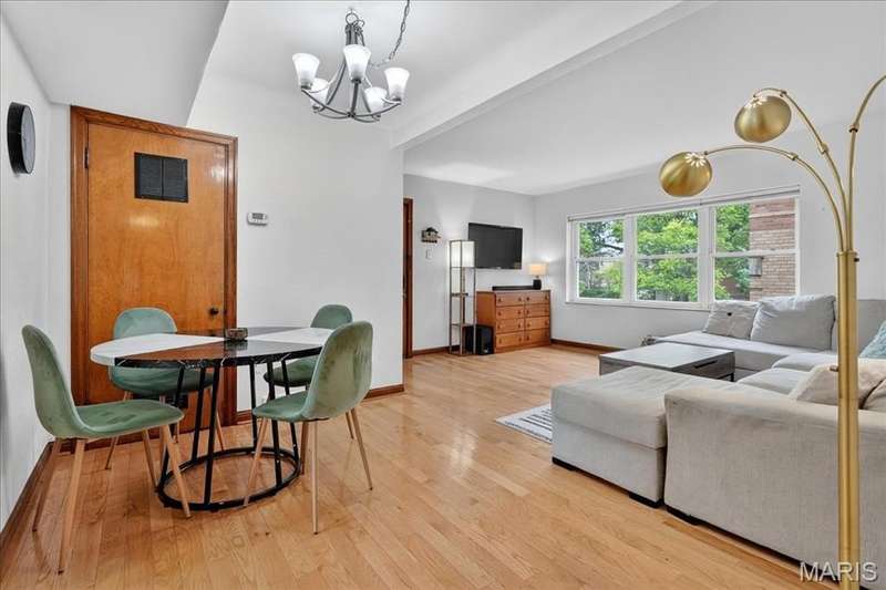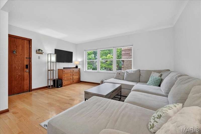 Light-filled 1BR/1BA condo in sought-after St. Louis Hills! Spacious 1st-floor unit with hardwood floors, open layout, and private building entry shared with just one neighbor. The inviting, open living and dining room leads to the galley kitchen boasting stainless appliances & ample cabinets and counter space. Down the hall leads to the large bedroom with two closets and a full bathroom. Enjoy a private back stairwell that leads to the basement where you will find your large storage unit, as well as your personal washer and dryer. Superior location just steps to Francis Park, Ted Drewes, and many other amazing South City amenities plus a brand new roof make this condo an amazing opportunity!