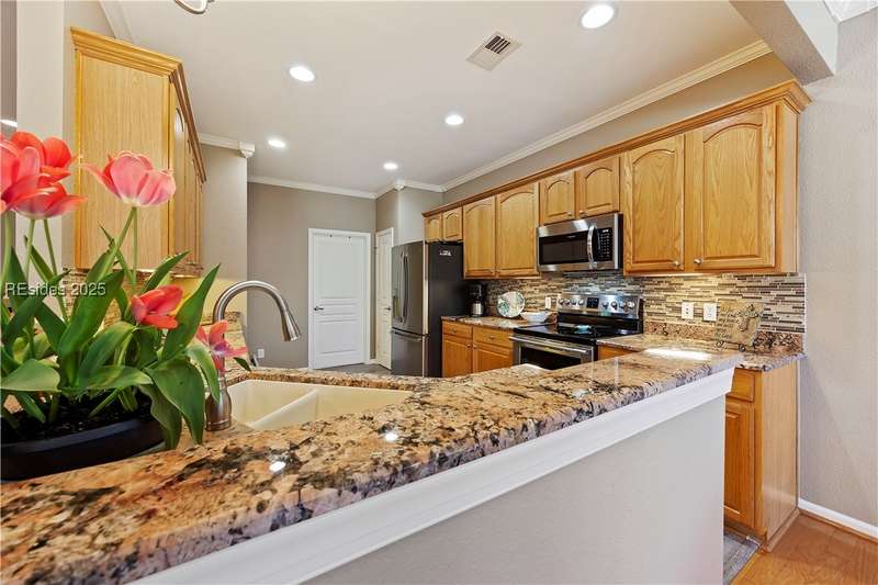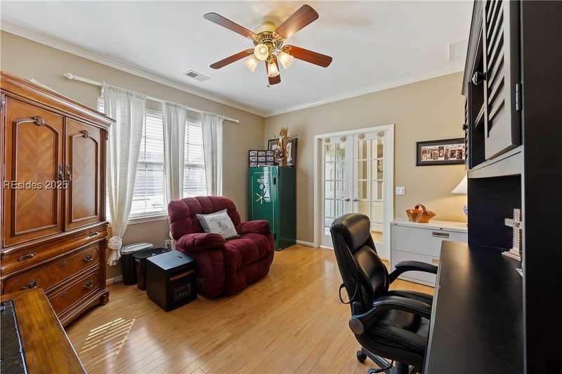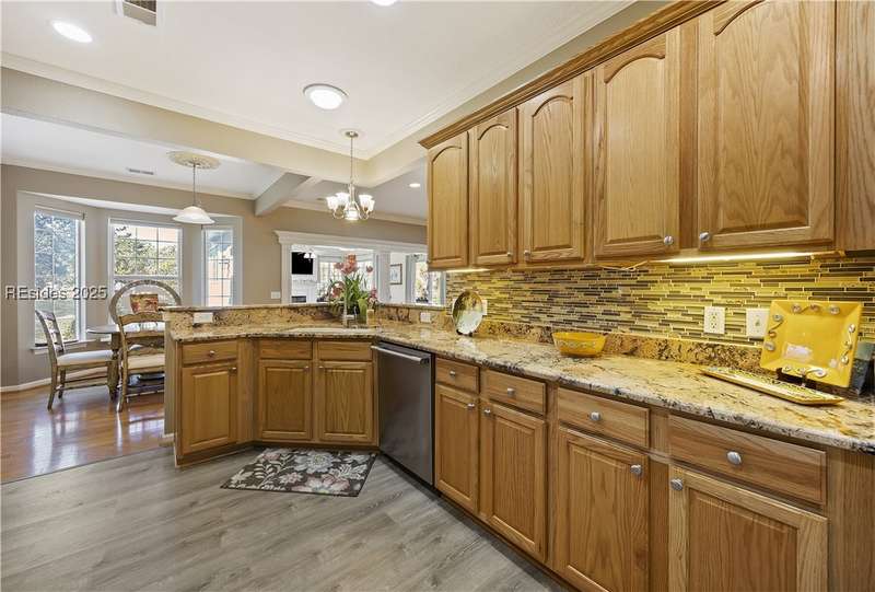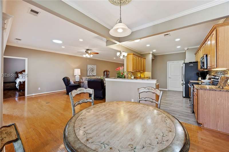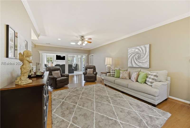 Discover this beautifully upgraded home at 23 Raindrop Lane! Enjoy wood floors, crown molding, and no popcorn ceilings. Kitchen features granite counters, stainless steel appliances (NEW FRIDGE), under-cabinet lighting, and pullout drawers. Relax in the 256 sq. ft. Carolina Room w/ window seating/storage and new electric fireplace. Other highlights include a 2024 AC, 2016 roof, 3 SolaTubes, new Zoysia grass, UV window film, hurricane shutters, insulated garage door with 4 extension, long driveway, remodeled shower w/ seat and attic storage. Plus, a Marathon water heater, air filtration system, and clean stucco report! Furniture negotiable.