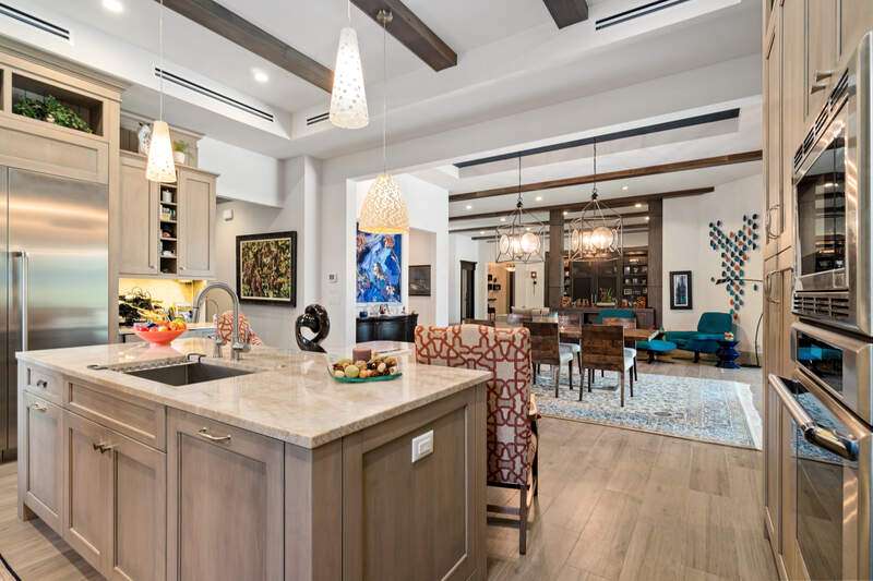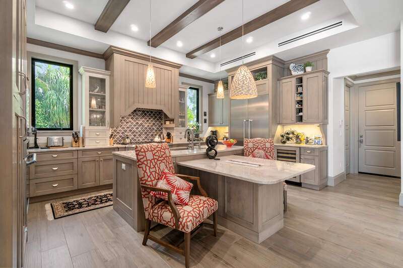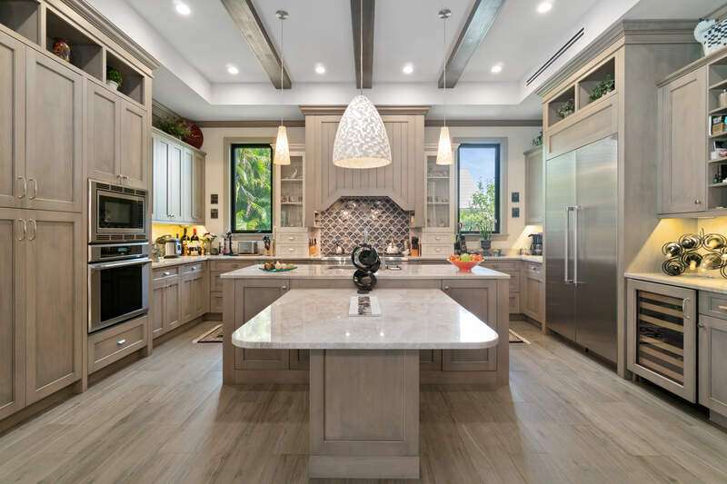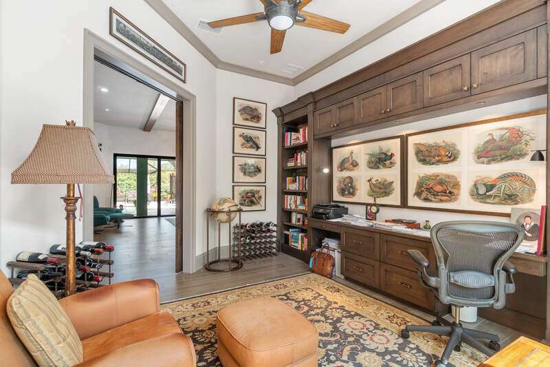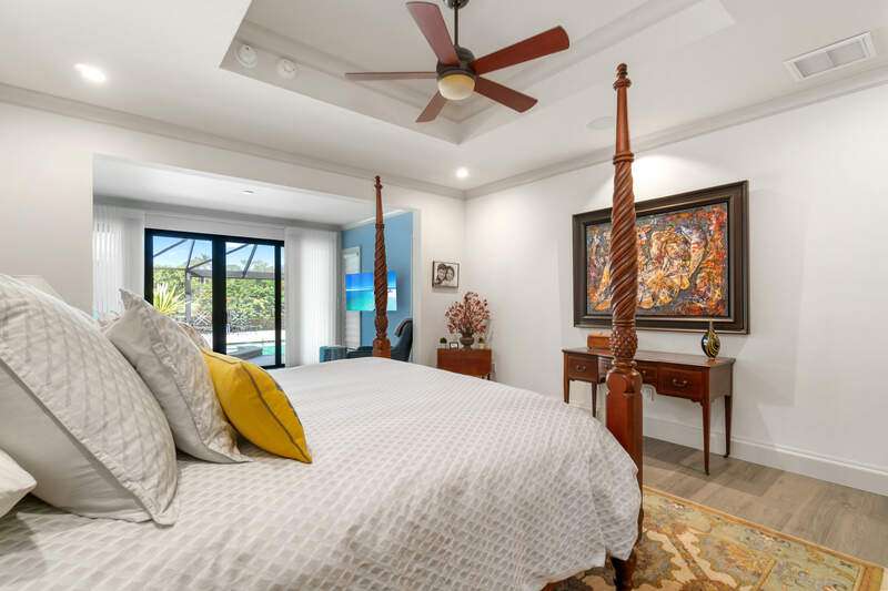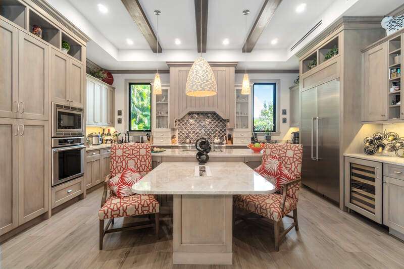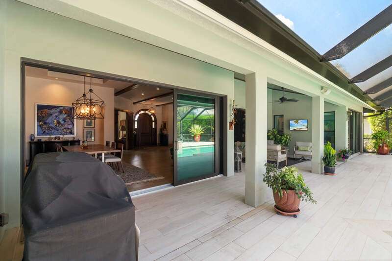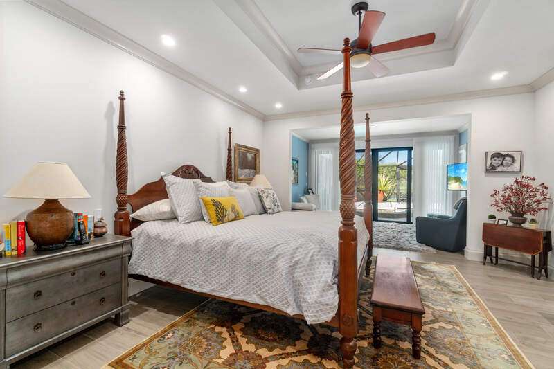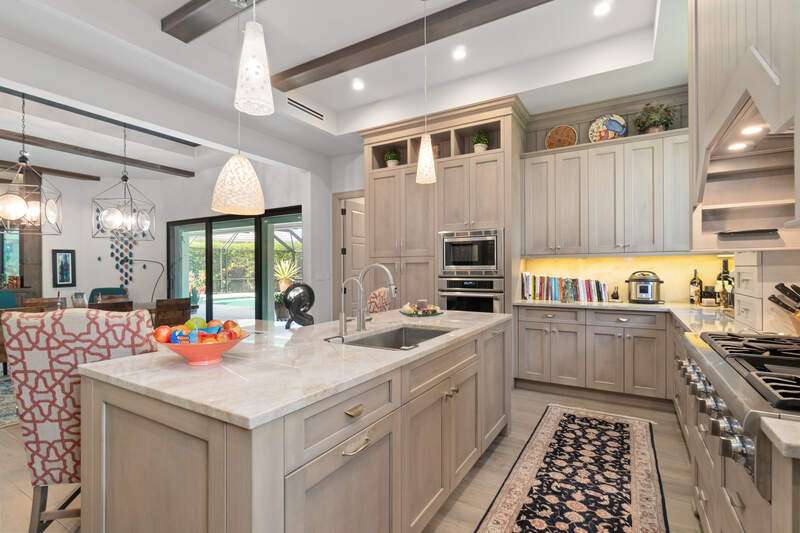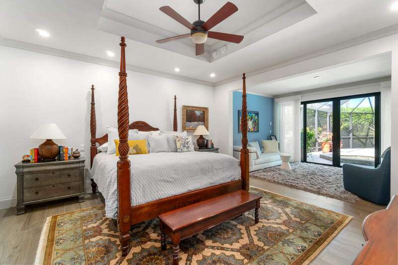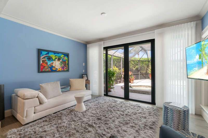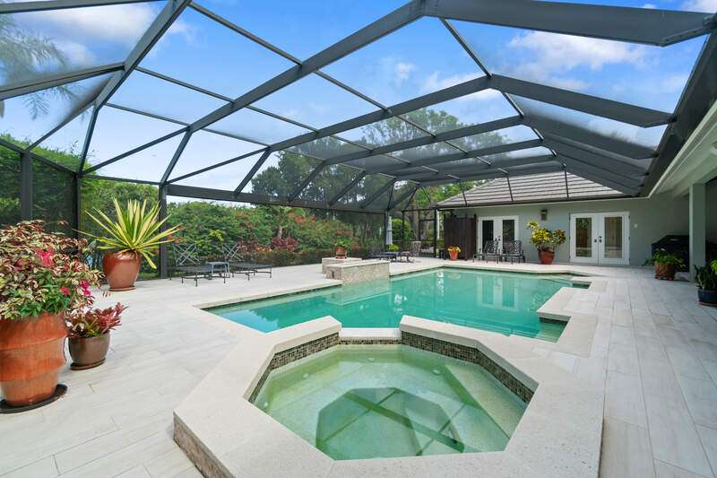 Beautifully renovated estate with stunning lake views in the prestigious Audubon Golf & Country Club in North Naples. Offers highly sought-after WESTERN exposure for breathtaking sunsets and optimal sun over the pool. This beautiful residence offers 3,204 sq ft of luxurious living space with 3 bedrooms, a den, a 2nd den/sitting room off the primary suite, 3 bathrooms, wood-look tile flooring, and custom wood detailing throughout. Additional highlights include hurricane impact windows/sliders and a new roof (2015). Step outside into your private backyard retreat-complete with a pool, spa, fire pit, outdoor shower, and a picture-frame screen enclosure providing unobstructed lake views. Inside, you'll find the beautiful chef's kitchen boasting stunning quartz countertops, custom wood cabinetry, and high-end appliances. The primary suite is a tranquil retreat featuring private access to the lanai, a cozy sitting area, generous walk-in closets, and a spa-inspired bath with dual vanities, a large frameless glass shower, and a separate jetted soaking tub. Audubon's prime location is just 5 minutes from Mercato and world-class beaches, and the community offers a gated/guarded entrance, an 18-hole championship golf course, tennis, pickleball, a Bayside boardwalk, and a newly renovated clubhouse with dining and a second beautiful poolside club and cafe.