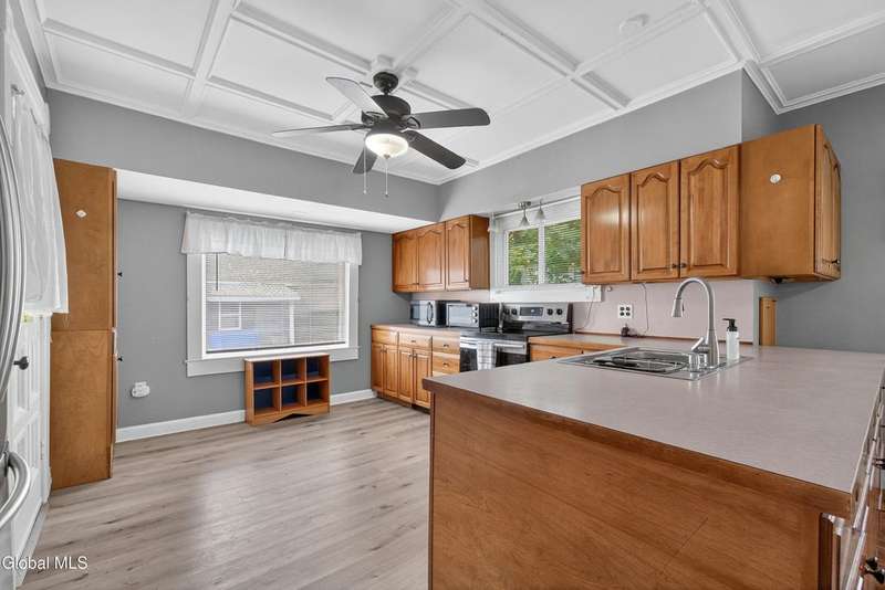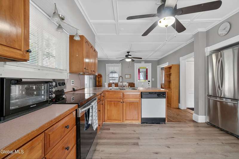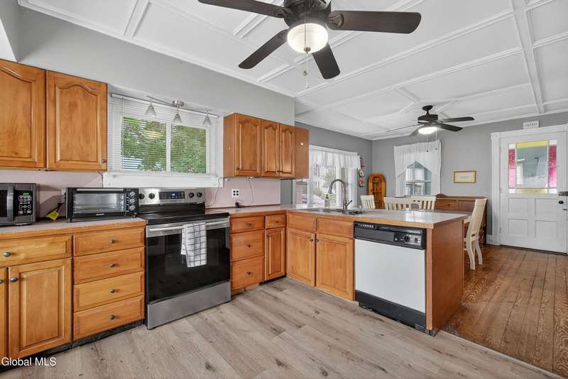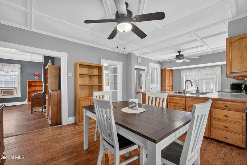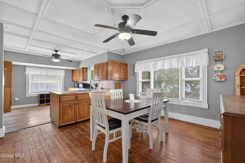 Charming & Well-Maintained Village HomeWelcome to this warm and inviting village home, lovingly cared for and thoughtfully updated over the years. Step inside to find a beautifully remodeled kitchen that opens to a formal dining area?perfect for family meals and entertaining. The spacious living room offers plenty of natural light and comfort, while an enclosed summer porch provides a relaxing retreat.The main floor also features a convenient half bath and laundry area. Upstairs, you'll find three comfortable bedrooms and a full bath. Enjoy the charm of hardwood floors throughout, along with modern updates including replacement windows, a new fuel tank, and fresh exterior paint.Additional highlights include oil heat, a paved driveway, and a large two-car garage with wood stove hookup?ideal for hobbies or extra storage. The nicely sized yard offers space for gardening, play, or simply enjoying the outdoors.Located close to local schools, this home is a perfect fit for families or anyone looking for a cozy, move-in-ready property in a friendly neighborhood.See Virtual Tour!