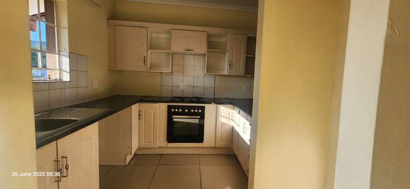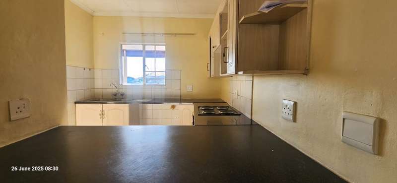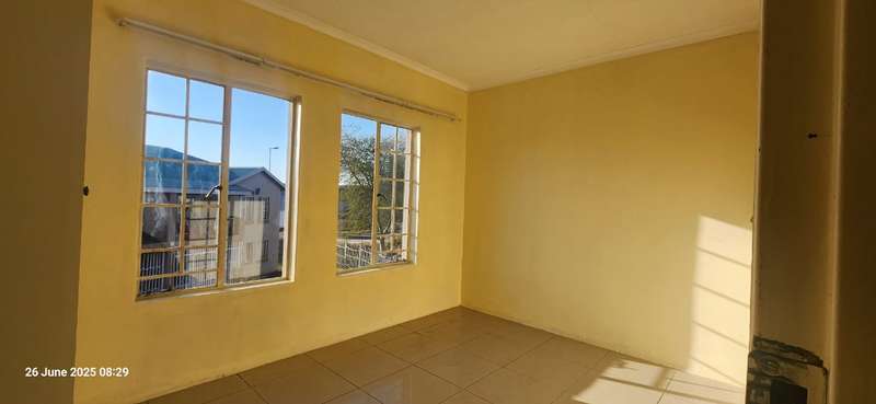 Neat 2-bedroom flat to rent in Cashan. Offers a spacious lounge, kitchen, and bathroom. Located in a secure area close to shops and schools. Ideal for a small family. Water & Electricity excluded.