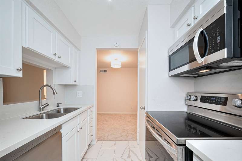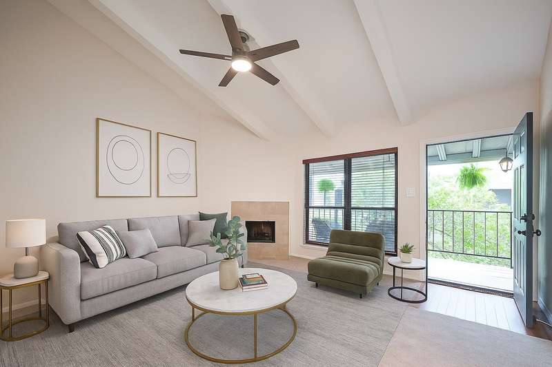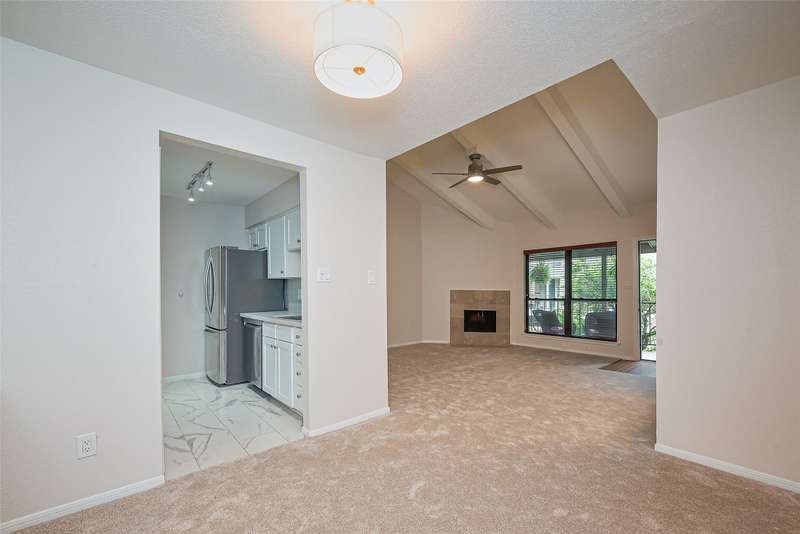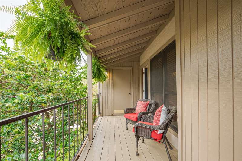 Tanglewood area upper-level condo featuring quality updates throughout! Water heater just replaced 10/25. Fresh paint and plush upgraded carpet installed March 2025 (with hardwoods underneath). Recent 2023 updates include: AC air handler, marble flooring in the kitchen and bath, quartz countertops, new tub, commode, and fixtures, plus stylish lighting and ceiling fans. Kitchen updates also include a replaced refrigerator, dishwasher, stove, and microwave. Windows and the AC condenser have also been recently replaced. The living room boasts a vaulted ceiling, cozy fireplace, and dry bar, while the dining area features wainscoting and a mirrored wall for added elegance. Enjoy one assigned covered parking space and a convenient storage closet off the balcony. This move-in-ready home truly checks all the boxes! (All per Seller.)