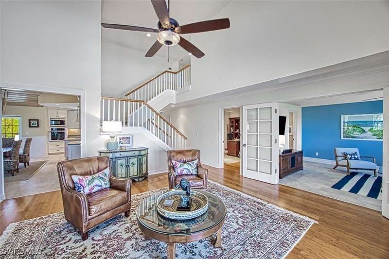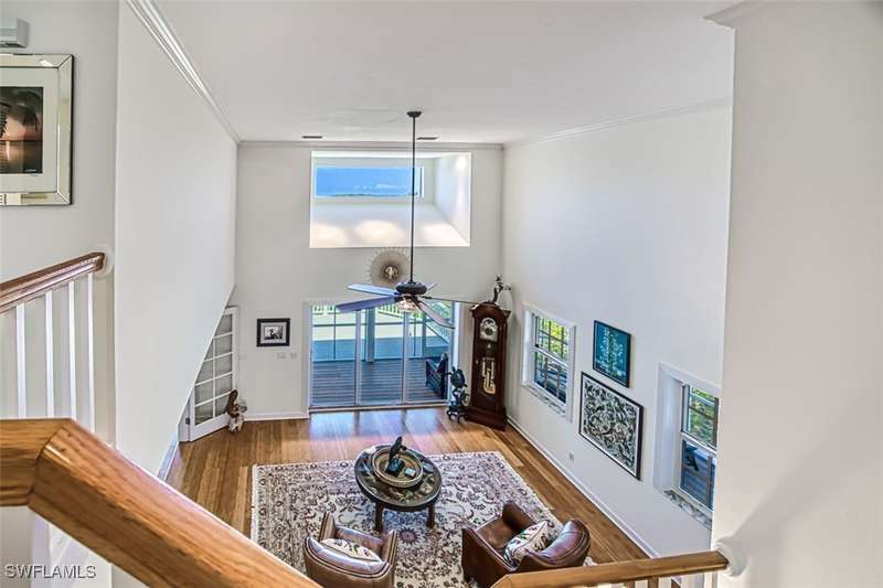 Welcome to a refined bayou home that offers essential luxuries. Featuring a private elevator to all living levels, this 3-bedroom, 3.5-bathroom residence, with a den and office makes island living a breeze. Upon entry, you'll find an ensuite that doubles as an office, complete with a Murphy bed. The kitchen includes a separate pantry and opens to an airy patio perfect for grilling. It seamlessly connects to the dining area with vaulted ceilings. The first level also houses a true office, a half bath, a den, and a living room, both offering breathtaking views of the bayou and long vistas of the Gulf of Mexico. The expansive deck and balcony face west, while the enclosed screen porch offers both west and north views. On the second floor, the primary ensuite features his and hers closets, with an updated bathroom with mesmerizing views. Adjacent is the secondary bedroom with a separate full bathroom and laundry area. Ascend the stairs to the rooftop, an unfinished space perfect for stargazing and sunset views. The two-car garage includes a substantial workshop and storage room, providing ample space for all your needs. Conveniently located near Bowman's Beach, J.N. Ding Darling, and Captiva. ENTRANCE TO HOME HAS FLOOD BARRIER PROTECTION.