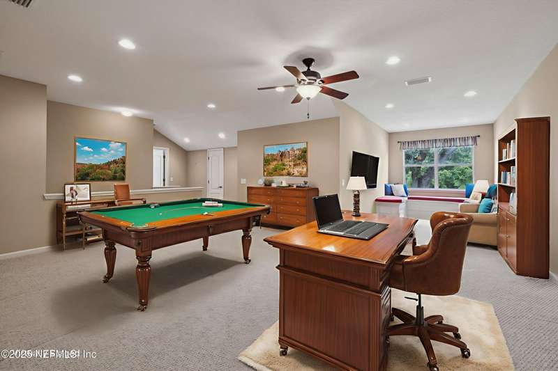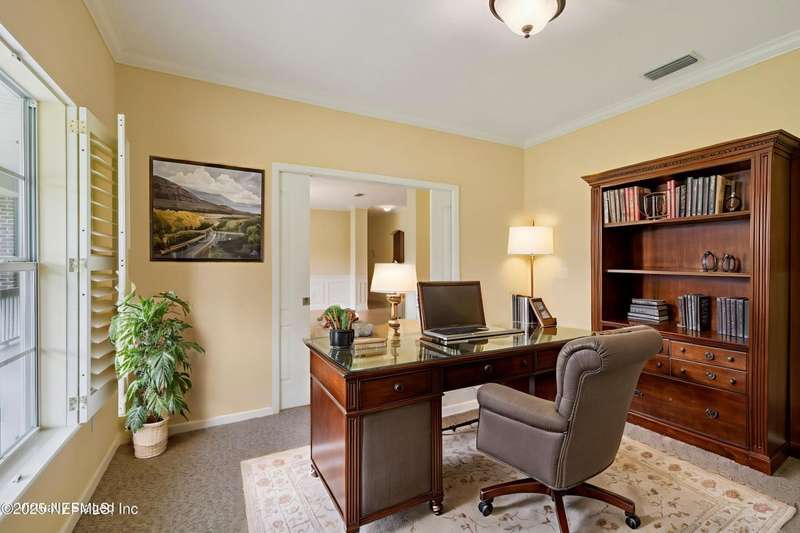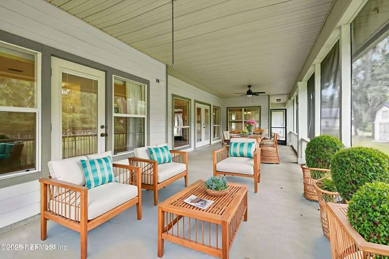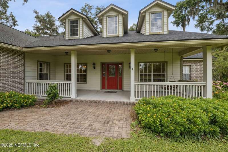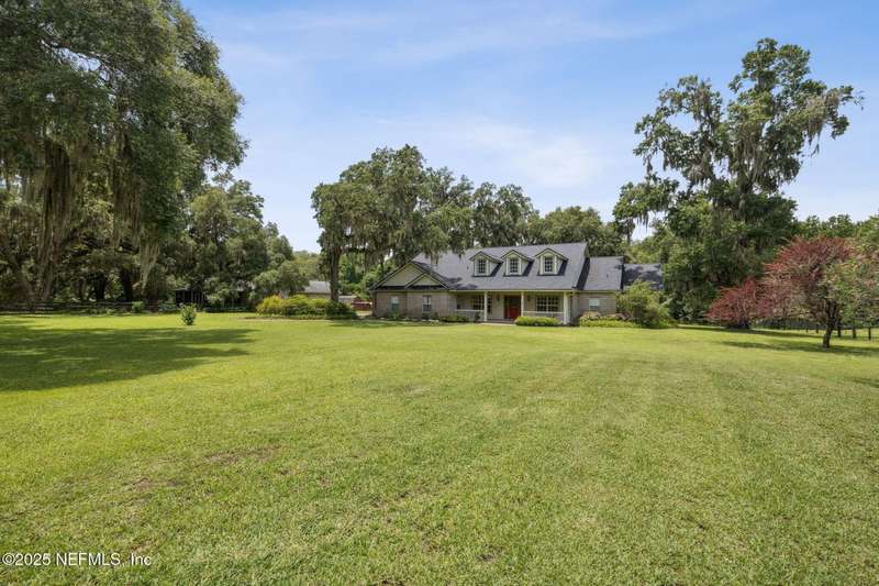 Peaceful Equestrian Community! Welcome to this gorgeous, custom-built residence set on 2.71 picturesque acres along a scenic, tree-lined lane. Built in 2005 & lovingly maintained by its original owners, this 5-bed, 3-bath home blends charm, comfort, & thoughtful design-complete with a split floor plan and roll-in showers in every bath. Natural light fills every room, from the cozy gathering room with wood-burning fireplace & built-ins, to the dining room overlooking the expansive front lawn, to the spacious kitchen & breakfast nook with views of the wooded backyard. Enjoy the outdoors year-round on the large screened back porch or the welcoming front porch. The primary suite is a private retreat with its own porch access, two walk-in closets, dual vanities, a soaking tub, & a walk-in shower. Upstairs you'll find the fifth bedroom, a generous bonus/flex room, & extra storage-note that this space is not included in the tax records. Beautiful oak trees, colorful landscaping, & a creek at the back of the property set the scene. Recent updates include a 2-year-old roof, a 1-year-old water heater, & a septic system pumped 3 years ago. Tile floors run through the main living areas, with carpet in the bedrooms, plus a two-car garage and workshop. With Jennings State Park horse trails just minutes away & warm, welcoming neighbors all around, this is country living at its finest come see it for yourself - you'll never want to leave.