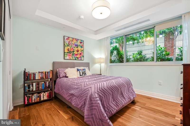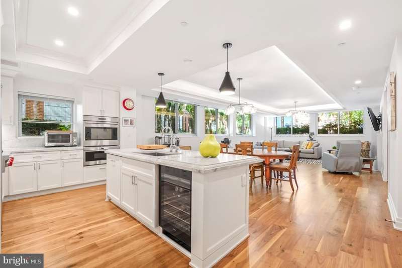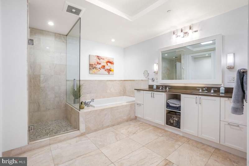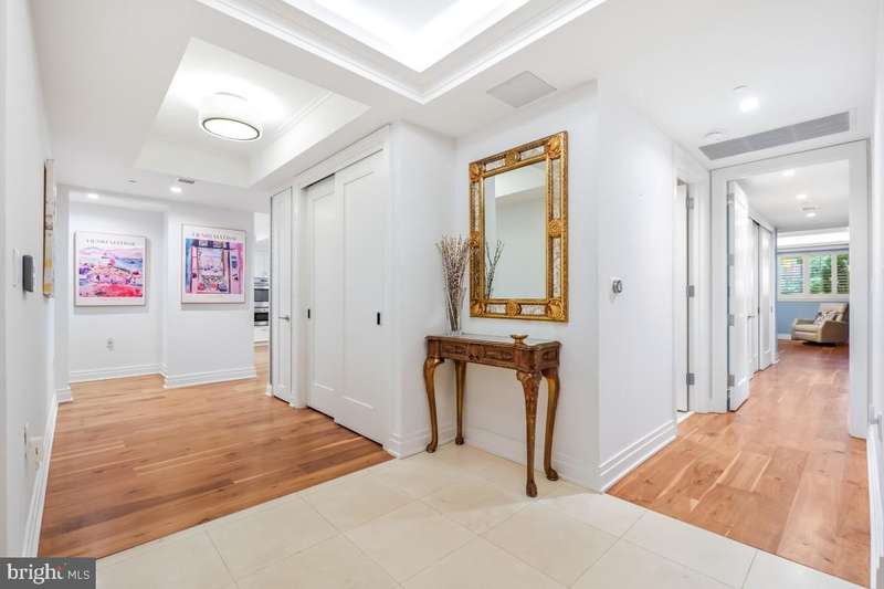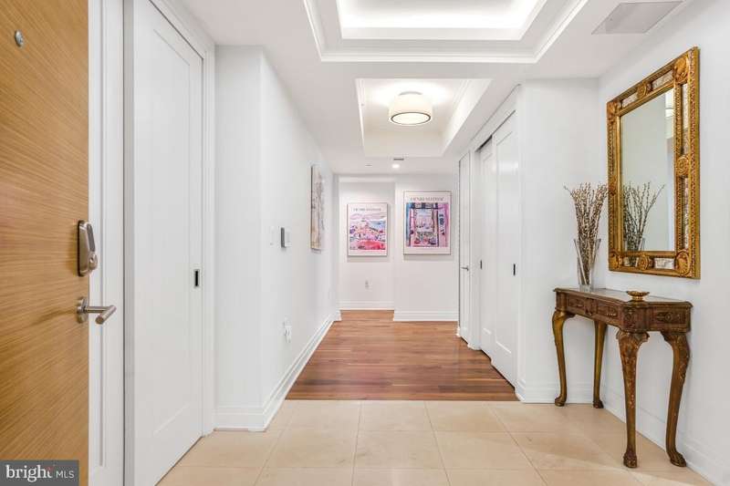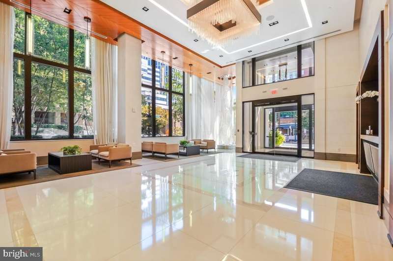 Sophisticated luxury living in downtown Bethesda's prestigious building, The Lauren. Welcome to The Lauren, an exclusive boutique condominium known for its refined style and exceptional service. This spacious two bed, two and a half bath condo with den/office offers 2,264 sq. ft. An extremely quiet, light-filled corner residence, where you have no neighbors on either side, #107 will welcome you and your guests into its large foyer, with two double coat/storage closets. From there you will walk into the kitchen with high-end stainless steal appliances, marble countertops, and oversized kitchen island with seating. The open living area is perfect for entertaining, featuring a gas fireplace and built-in shelves. The space also features a nicely sized den/office with pocket doors for privacy, and a half bath. The large laundry room with sink leads to the large owner's suite with its abundance of closets. The luxurious primary bath has a dual sink vanity, soaking tub, and separate shower. On the other end of #107, is the second bedroom with ensuite full bath, providing comfort and privacy for guests. The sale includes two garage parking spaces with EV charger (#60 & #61 ), a storage unit (#19), and a private wine locker (#16) in the Onyx Lounge. The buildings' amenities include an elegant lobby with 24-hour concierge & secure access, on-site management, engineering staff, plus a rooftop terrace with a caterer's kitchen, the Onyx Lounge/party room with caterer's kitchen, and a gym/fitness center. And the best part of all- you are literally steps from all the shops and restaurants Downtown Bethesda has to offer! From the moment you walk into The Lauren lobby, no other building defines luxury like this.