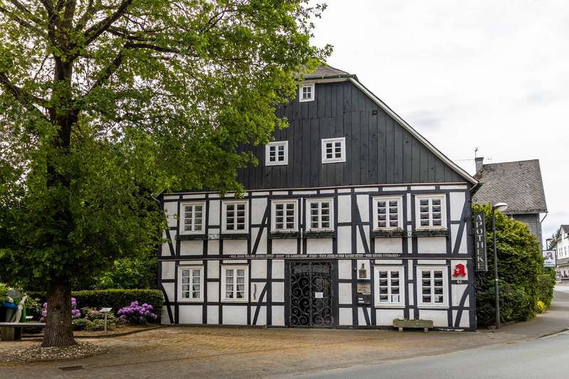 This unique historic property in Olsberg-Bigge offers a fascinating blend of tradition and modern use. The complex consists of four separate buildings arranged around a private and secluded garden that guarantees peace and privacy. The main building, a magnificent half-timbered house dating back to 1750, embodies the charm of past centuries. This building is the heart of the estate and retains many original details that keep the character and history of the house alive. The spacious extension from 1960 offers modern living options and a spacious living area flooded with natural light. Large window fronts provide a wonderful view of the idyllic garden and create a harmonious connection between the interior and exterior. A further building, which was erected in 1850, extends the living space of the property by around 399 m². This building can be used as a separate residence, but is also ideal for guests or as an office or workspace. The garage, which is directly adjacent to the park-like garden, offers practical storage space for vehicles or other equipment. Overall, this ensemble presents itself as a unique opportunity for lovers of historic buildings who value privacy, tranquillity and a charming atmosphere. With its extensive garden and its combination of traditional and modern elements, this property offers a wide range of possibilities for individual use and design. Energy certificate is in process.