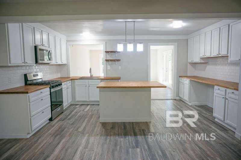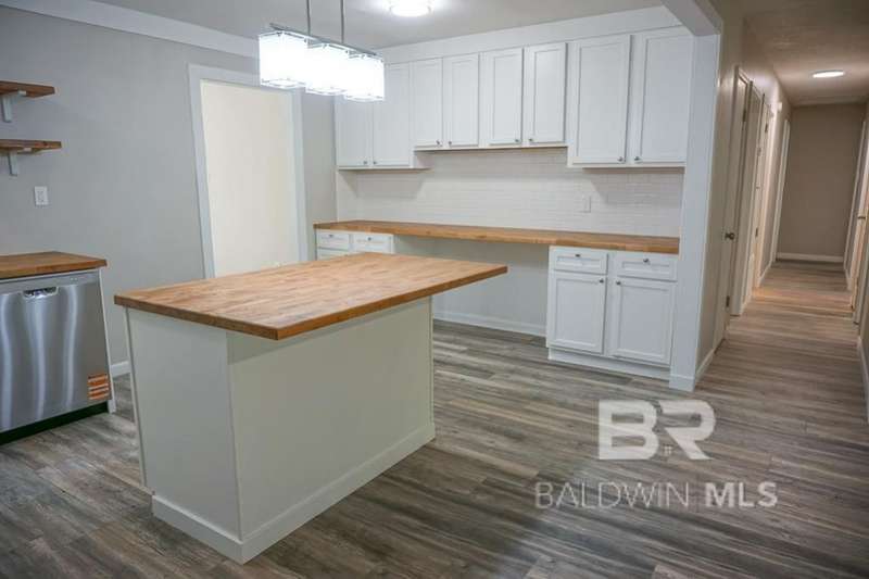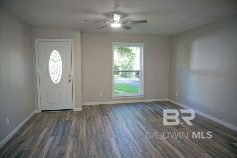 VRM: Seller will entertain offers between $229,900 - $239,900 upper and lower ranges. Completely renovated 4-bedroom, 2 bath home in the heart of West Mobile. Only minutes from shopping, Mobile Regional Airport, Coast Guard ATC and schools, you'll find everything you need in this low maintenance, brick home. Features include the following: all new interior and exterior paint, new HVAC system (2025), gas water heater, new flooring, new cabinetry, new showers, new faucets, fixtures, fans, toilets, new double paned energy efficient windows, large/open kitchen with new cabinetry, new countertops and stainless appliances, large den with fireplace, rear deck, fenced backyard and freshly paved driveway. All measurements are approximate and not guaranteed, buyer to verify. Buyer to verify all information during due diligence.