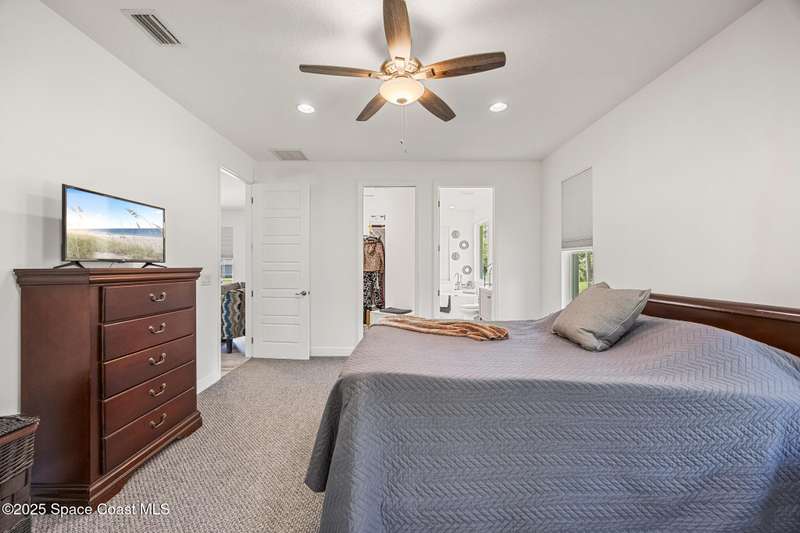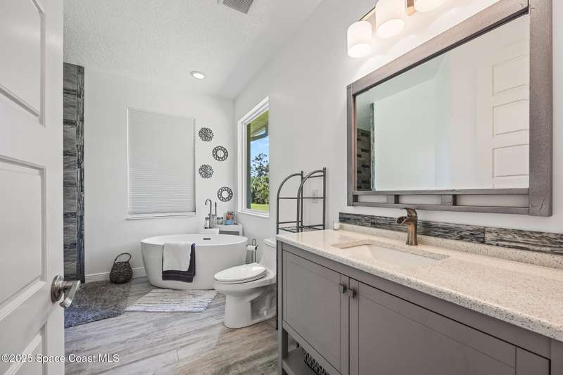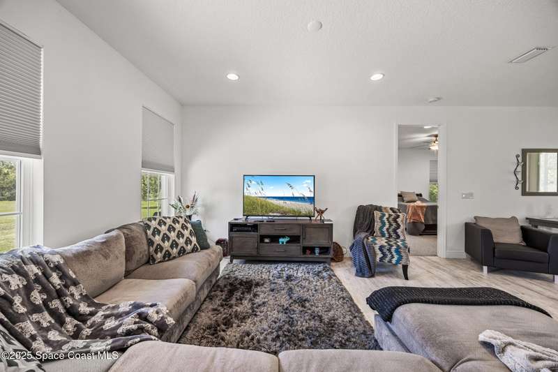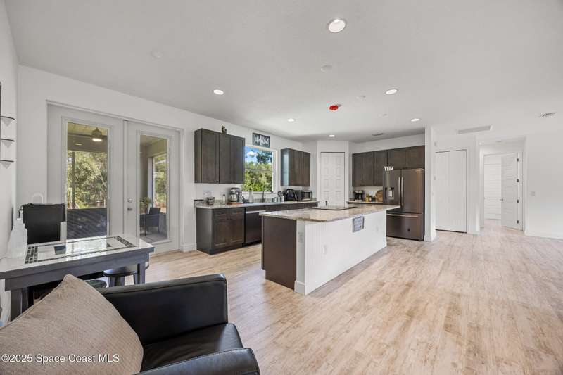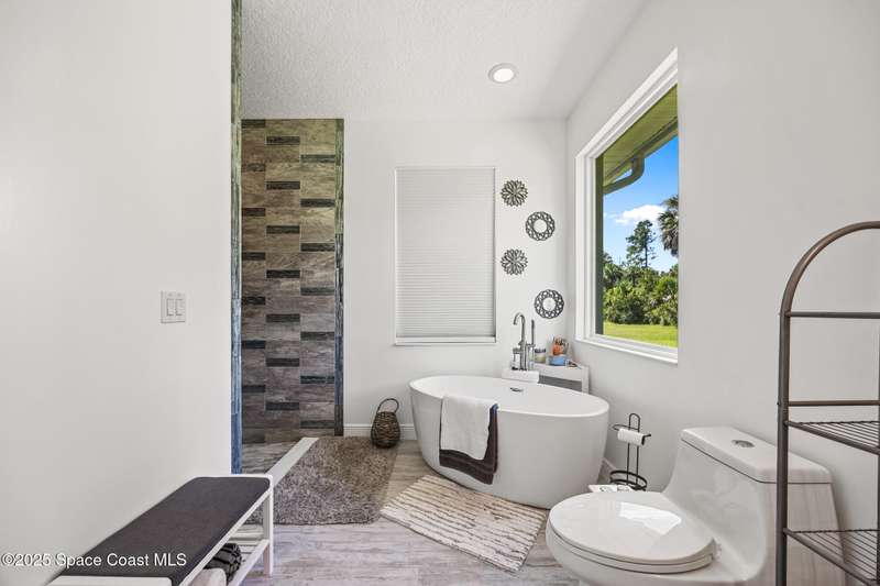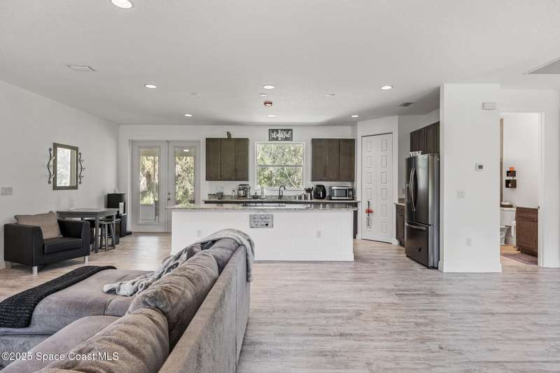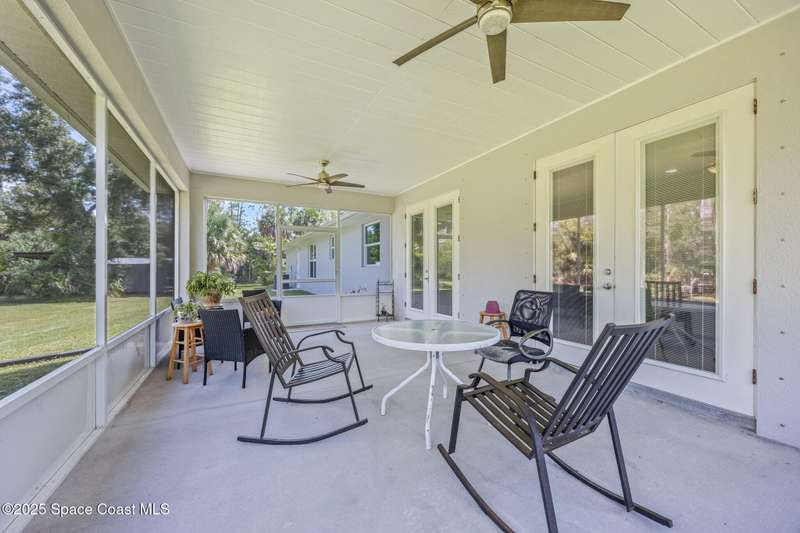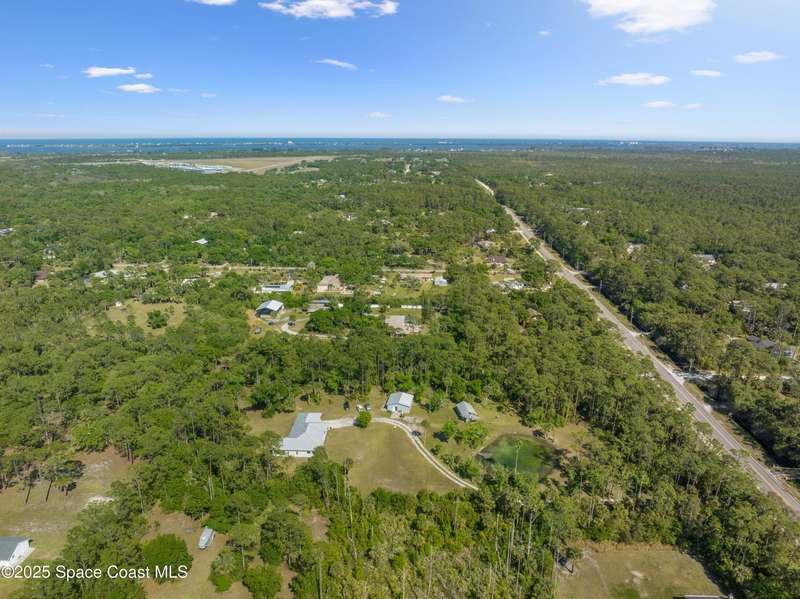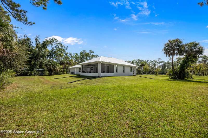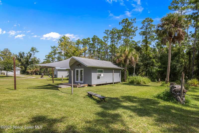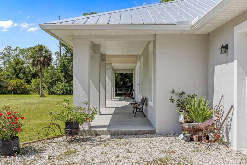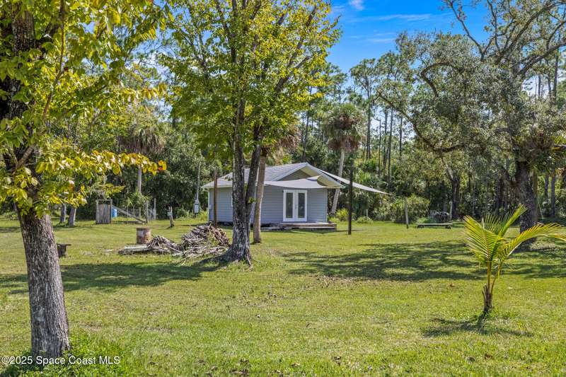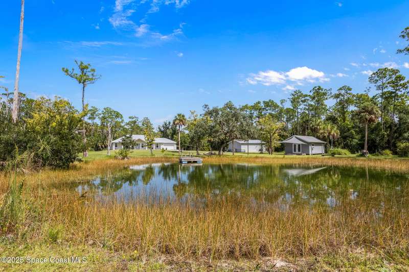 Custom-built in 2020, this 3 bed 2 bath home sits on 3.97 acres. An artesian-fed pond, a finished cabin with electricity for guests or office use, and a 900 sq ft workshop with a hydraulic car lift give the property real utility. The interior delivers an open layout with 9.5 ft ceilings, Italian tile throughout, granite counters, Tuscan black appliances, and impact-rated windows. The primary suite features an oversized tiled shower and a freestanding tub. Outdoor living includes a 480 sq ft front porch and a 336 sq ft screened in back porch under truss, plus space for a pool. Enjoy scenic trails, 360 degree privacy, quick access to I-95, US-1, Valkaria Airport, The Habitat Golf Course, Grant Valkaria Community Park, nearby boat ramps at Christenson's, Jorgenson's and Main St Sebastian, and minutes to waterfront restaurants along the Indian River in Sebastian and Melbourne.