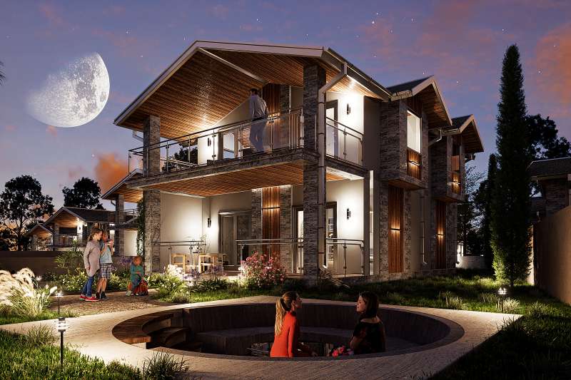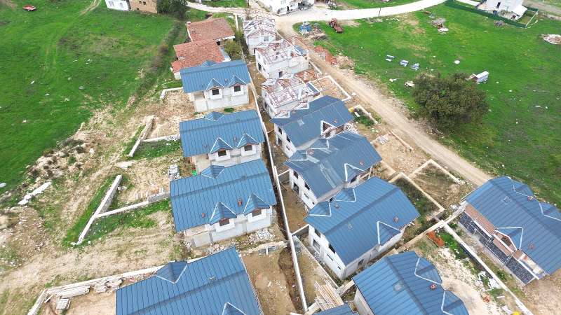 The project, built on an 8,200 m² land area, consists of 17 villas. Each villa offers a duplex layout with 3 bedrooms and a total indoor area of 520 m², along with a 250 m² private garden. At the entrance, there is a veranda with a fireplace. The villas feature an underfloor heating system, and the project will include a satellite system providing internet access. Additional amenities such as a swimming pool, landscaped garden areas, and an indoor parking lot are available as optional features.