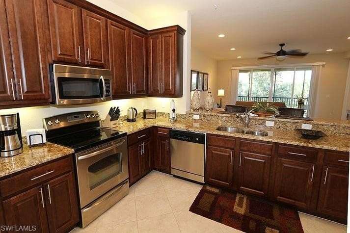 Marbella Lakes. The location of this Southern exposure carriage home is central to everything in Naples. This 2nd floor, carriage home offers all the luxurious touches typically found in the more expensive vacation rentals. The kitchen and 3 bathrooms offer granite counter tops, stainless steel appliances, tiled living area, luxuriously carpeted bedrooms and flat screen TV in the living room and Master bedroom. The condo can sleep 6 with a king in the Master and Queens in each guest bedroom, seating for 6 at the dining table and 2 bar stools at the kitchen counter plus a dinette table and chairs in the kitchen, Hi-speed wireless internet service and a single car garage. Marbella Lakes is a gated community and offers more amenities than most: tennis, resort style pool and clubhouse, separate children's pool with playground, indoor basketball court, and fitness center. The community is located on Livingston Road between Golden Gate Pky and Pine Ridge Rd. it offers easy access to either downtown Naples, North Naples or our beautiful white Sandy Beaches.