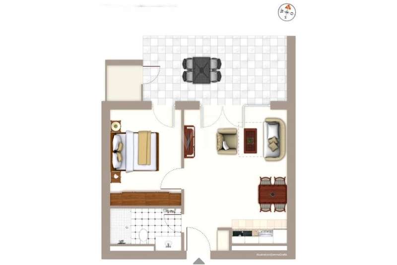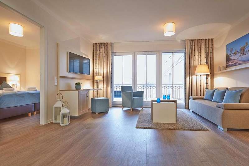 The exclusive aparthotel "Waterkant Suites" is located on the Baltic Sea beach of Börgerende - not far from the Baltic Sea resorts of Warnemünde, Kühlungsborn and Heiligendamm, Germany's oldest seaside resort. In addition to its ideal location just a few steps from the fine sandy beach, "Waterkant Suites" offers luxurious facilities with a 600m² wellness area with swimming pool and sauna area, in-house gastronomy, reception and underground parking. The high-quality, modern apartment on offer here is located on the first floor of the aparthotel and offers 49 m² of space for up to 4 people. The apartment consists of a spacious living and dining area with a high-quality fitted kitchen, a bedroom and a bathroom with a floor-level rain shower. The large balcony facing the sea can be accessed from both the living room and the bedroom and is equipped with patio furniture. Here you can end the day with a glass of wine while watching the sunset. The wellness area is just a few meters inside the house from the apartment, so guests can visit it comfortably in their bathrobes. The offer includes the complete furnishing of the apartment, a parking space in the underground garage as well as shares in the restaurant and wellness area. Due to its location on the Baltic Sea and the fact that the aparthotel is open all year round, occupancy rates are consistently high. Have we piqued your interest? We would be happy to present this property to you in detail in a meeting and look forward to hearing from you.