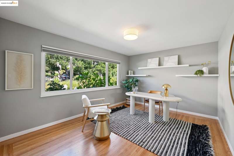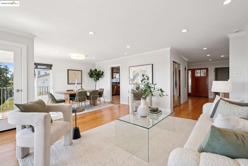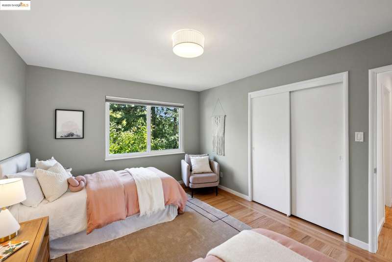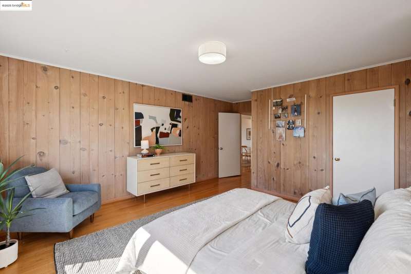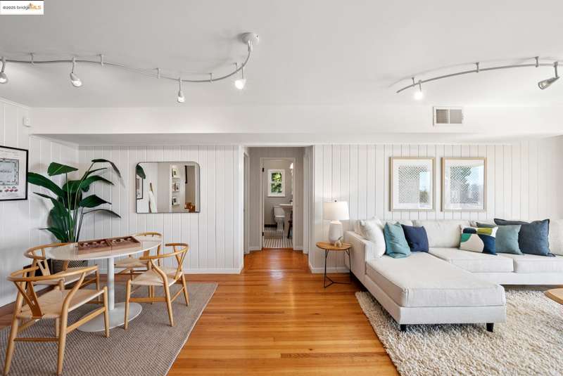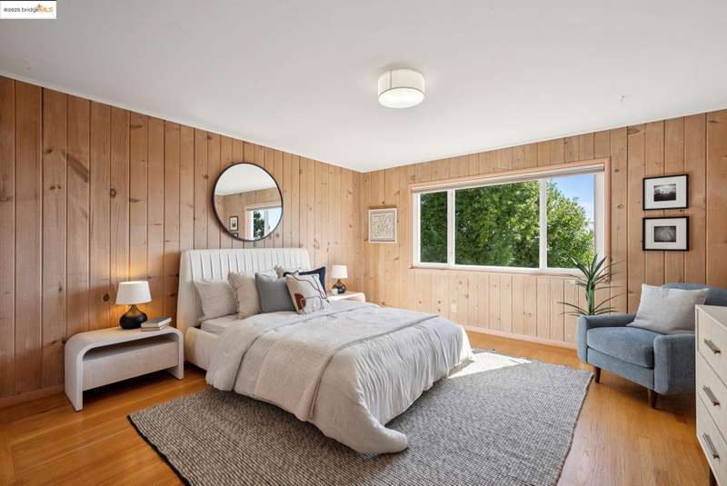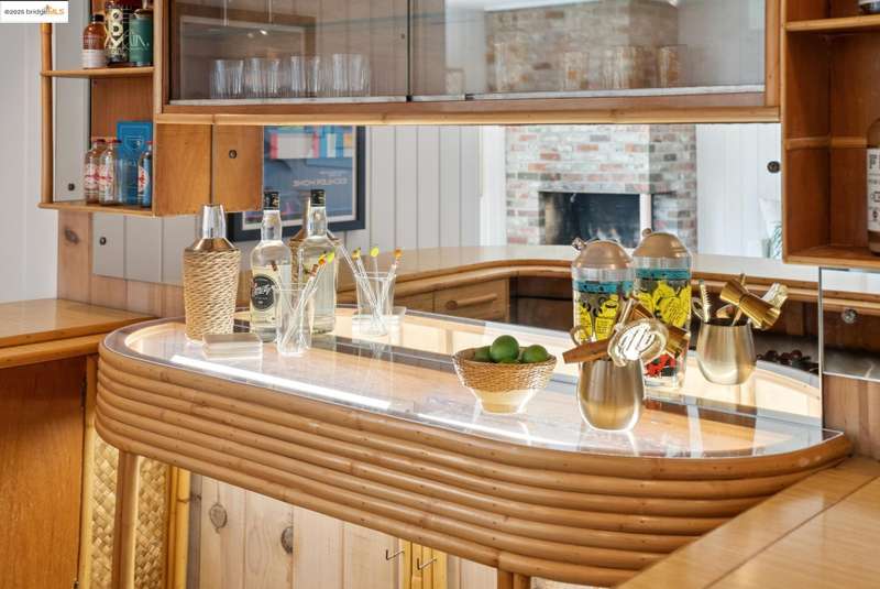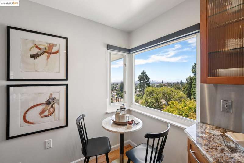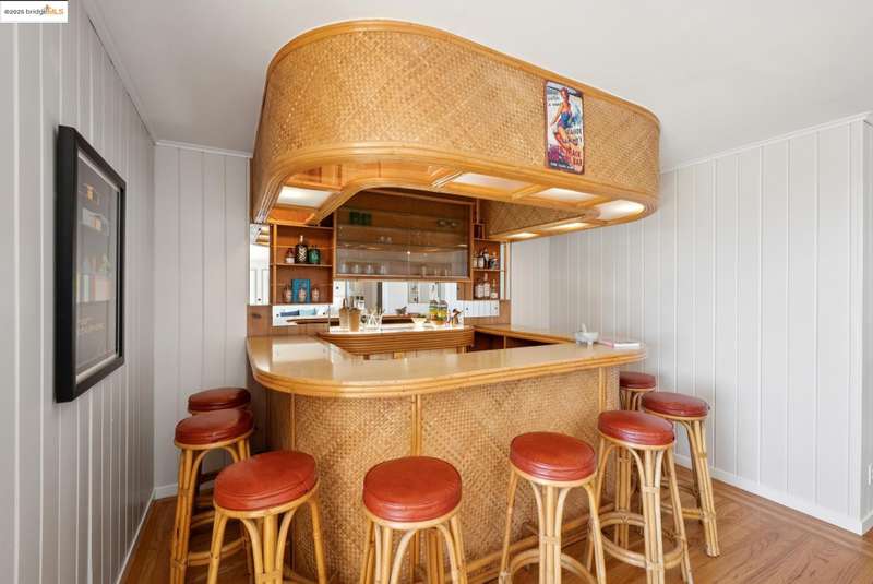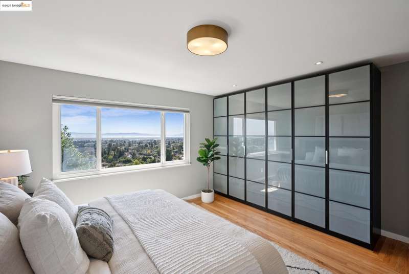 <strong>Spacious Level-in Mid-century Stunner with Panoramic Bay Views </strong> Fabulous, spacious, and ready to impress — this 5BR/3BA home offers stunning Bay, bridge, and city views, level-in access, family room with Tiki Bar, and exceptional outdoor space. Main Level Highlights <dl><li>Level-in entry from both garage and front door (no steps)</li> <li>Sun-drenched living room with floor-to-ceiling windows, classic mid-century fireplace, and access to the view deck</li> <li>Chic dining area with views flowing into a kitchen with new hardwood floors (summer 2025), granite island, stainless steel appliances, and abundant storage</li> <li>Three spacious bedrooms and two updated baths</li> <li>Dreamy view deck for morning coffee or evening sunsets</li></dl> Lower Level Fun & Flexibility <dl><li>Two additional bedrooms and full bath</li> <li>Huge family room with built-in Tiki Bar and second fireplace</li> <li>Bonus workshop/storage space</li></dl> Outdoor Oasis <dl><li>Private backyard with patio, grape arbor, fruit trees, and hot tub with deck surround</li> <li>Lush and private front courtyard patio</li> <li>Perfect for entertaining or quiet relaxation</li></dl> Prime Location <dl><li>Tucked at the end of a serene cul-de-sac in the coveted Oakmore neighborhood</li> <li>Minutes from shops, dining, parks, and schools</li></dl>