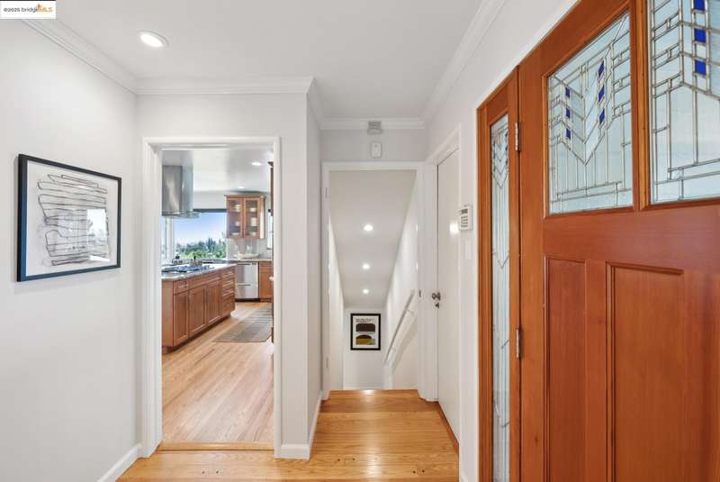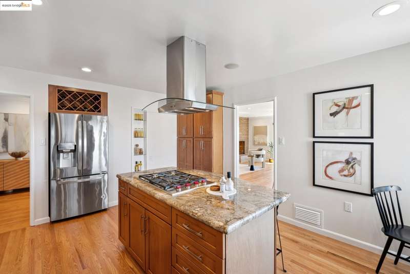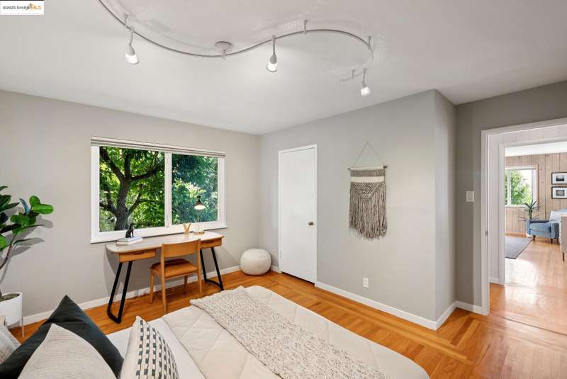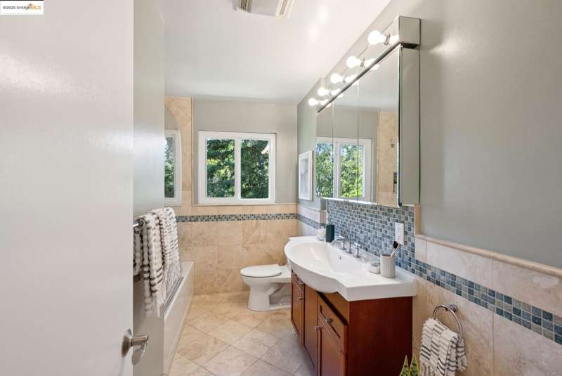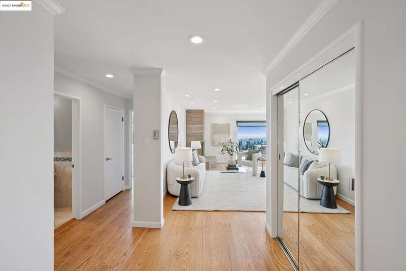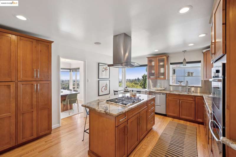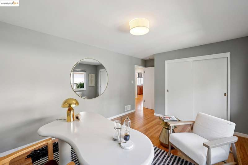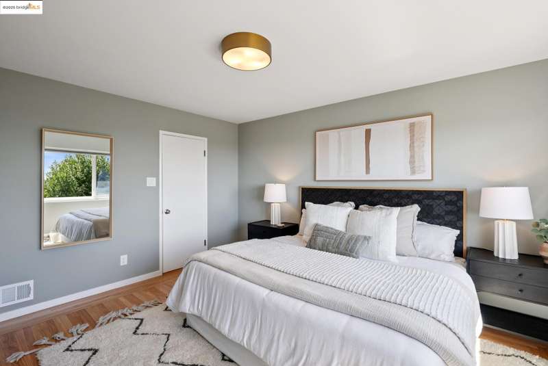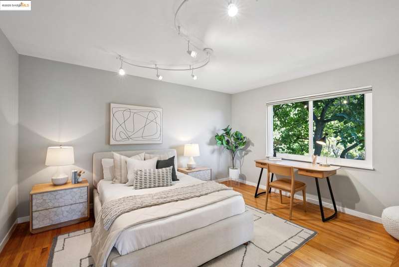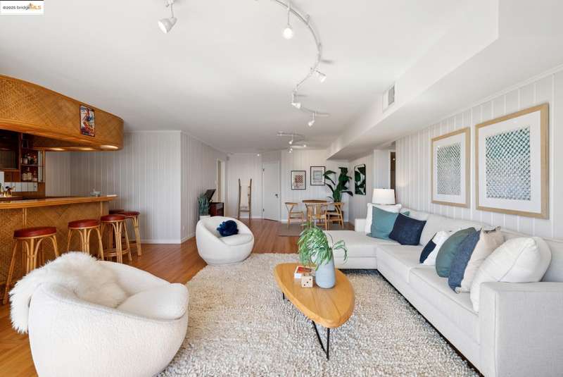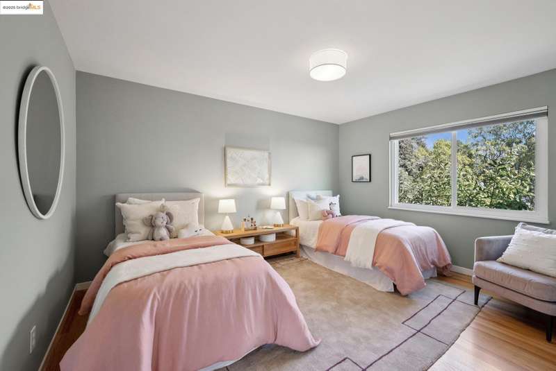 <strong>Spacious Level-in Mid-century Stunner with Panoramic Bay Views </strong> Fabulous, spacious, and ready to impress — this 5BR/3BA home offers stunning Bay, bridge, and city views, level-in access, family room with Tiki Bar, and exceptional outdoor space. Main Level Highlights <dl><li>Level-in entry from both garage and front door (no steps)</li> <li>Sun-drenched living room with floor-to-ceiling windows, classic mid-century fireplace, and access to the view deck</li> <li>Chic dining area with views flowing into a kitchen with new hardwood floors (summer 2025), granite island, stainless steel appliances, and abundant storage</li> <li>Three spacious bedrooms and two updated baths</li> <li>Dreamy view deck for morning coffee or evening sunsets</li></dl> Lower Level Fun & Flexibility <dl><li>Two additional bedrooms and full bath</li> <li>Huge family room with built-in Tiki Bar and second fireplace</li> <li>Bonus workshop/storage space</li></dl> Outdoor Oasis <dl><li>Private backyard with patio, grape arbor, fruit trees, and hot tub with deck surround</li> <li>Lush and private front courtyard patio</li> <li>Perfect for entertaining or quiet relaxation</li></dl> Prime Location <dl><li>Tucked at the end of a serene cul-de-sac in the coveted Oakmore neighborhood</li> <li>Minutes from shops, dining, parks, and schools</li></dl>