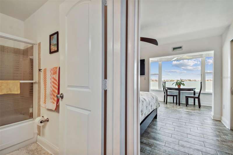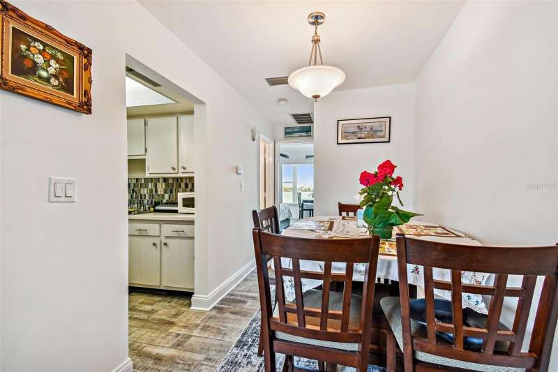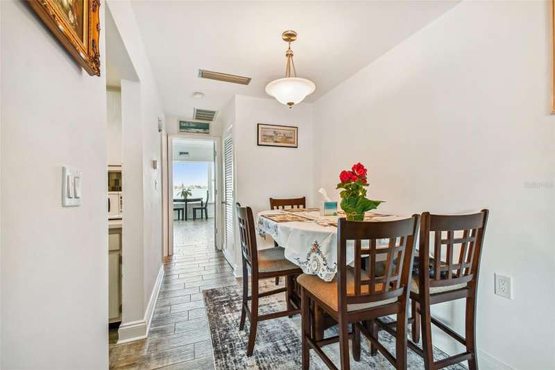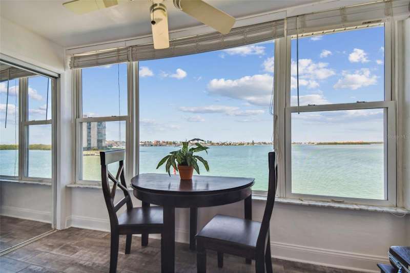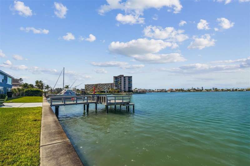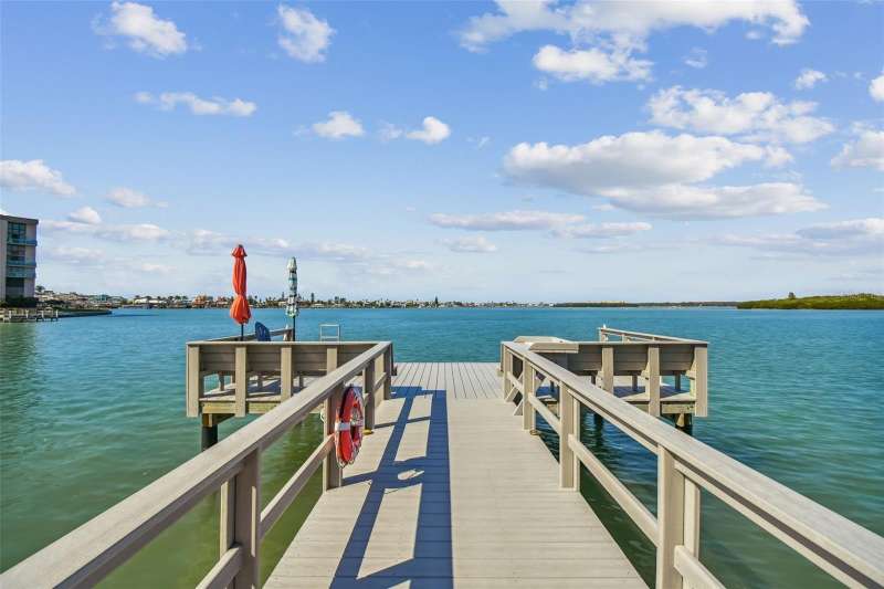 Discover your perfect retreat in this charming 1-bedroom, 1-bath condo, where every day feels like a vacation. Nestled in the serene Isle of Capri in Treasure Island, this delightful second-floor unit offers breathtaking views of boats gliding by, playful dolphins, and stunning water vistas across from John's Pass. Step into your air-conditioned Florida Room, where you can soak in the spectacular scenery year-round or let the gentle breeze flow through open windows. This cozy, light-filled condo is thoughtfully designed for both full-time living and an idyllic beach getaway. The kitchen, with its adjoining dining area, is bright and welcoming—perfect for enjoying your morning coffee while planning your day. The spacious living room is bathed in natural light, creating a warm and inviting atmosphere for relaxation or entertaining. This well-maintained 55+ community boasts a new roof (2017) and a freshly paved parking lot. You'll also appreciate the convenience of a private storage space downstairs for your beach gear and a laundry area for added ease. Take a leisurely stroll to the beach or enjoy a peaceful walk through nearby Rosselli Park. As the day winds down, catch the sunset from the sandy shores or unwind with neighbors on the dock, under the shade of an umbrella, or in the comfort of your cool Florida Room. With only 20 units, this quiet, pet-friendly community offers a tranquil lifestyle just minutes from two international airports. Don't miss your chance to own this slice of paradise—schedule your showing today and start living the beach life you've always dreamed of. Financing options are available. Land lease through 2066.