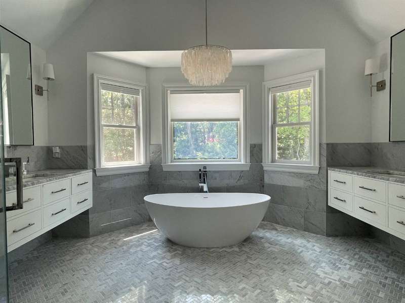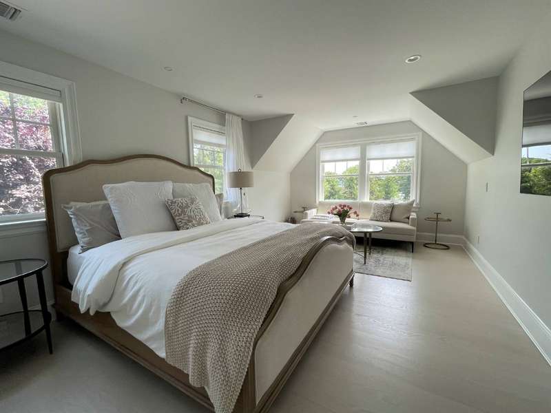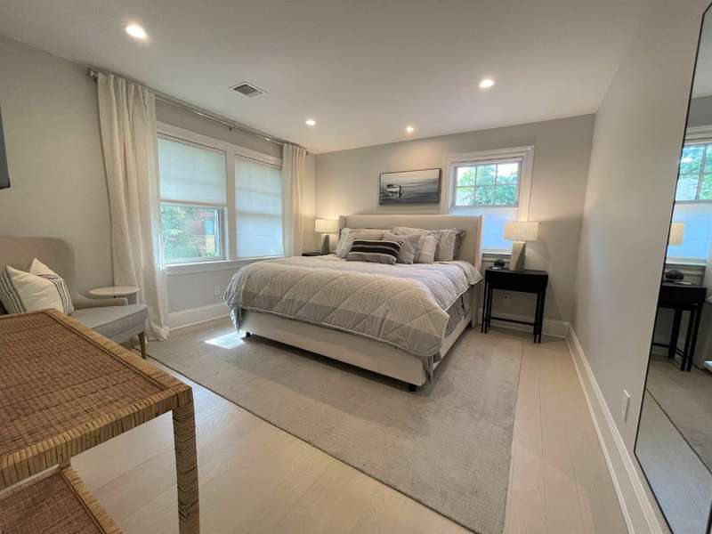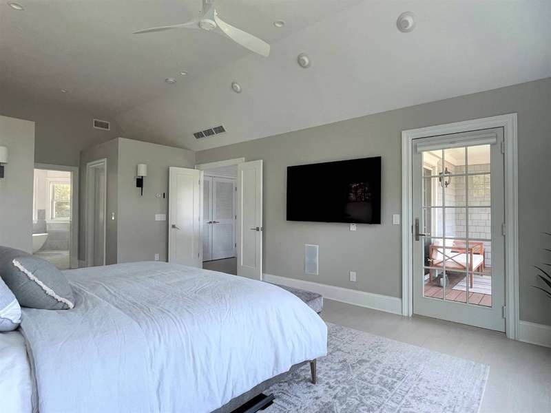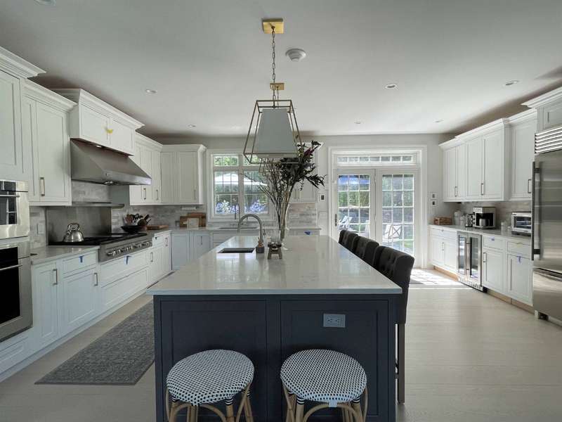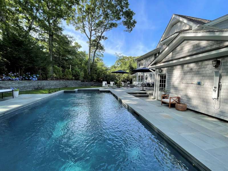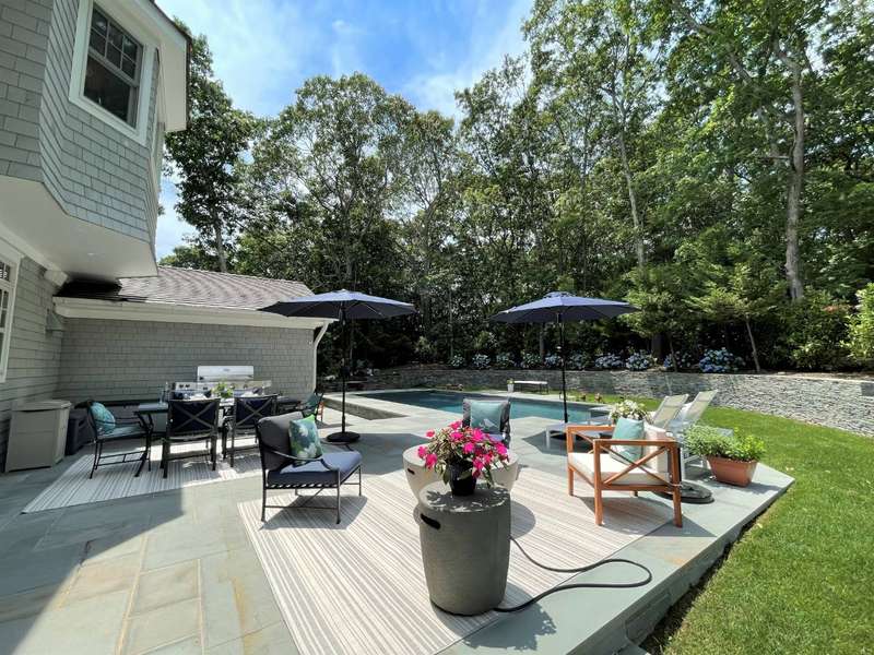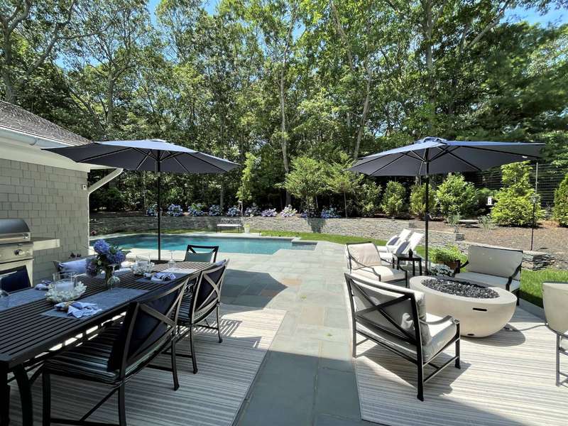 Rental Registry #25 - 0,795 - Brand new construction with five bedrooms and four full baths in the Northwest part of East Hampton has it all. Upon entering the home, to your immediate right is the sunroom with vaulted ceiling and gas fireplace. The open floor plan combines the great room with a gas fireplace, dining area, and a gourmet kitchen with Wolf and Subzero appliances that leads to the backyard where a heated gunite pool is surrounded by a bluestone patio with a professional infrared bbq grill, fire pit, eating area, lounge chairs, hot water outdoor shower, and a lush landscaping with nightscape lighting. The ensuite primary bedroom has a soaking tub with double vanities, and surround sound system. Amenities include central-air-conditioning, whole house audio system including outdoor, instant hot water plumbing, smart enabled lights throughout, surround sound system in the great room, large screen wall mounted TV in every room, Westin Hotel Heavenly mattress in all bedrooms (3 King, 1 Queen, and 2 Twins), a work from home office sitting area with balcony, and ping pong table in the lower level. All of these and access to Three Mile Harbor just across the street. Make this your Hampton home for the summer.