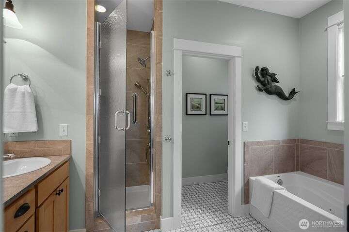 This beautifully appointed, coastal-style home offers the ultimate in beach town living. Designed for comfort and style, the open-concept living areas are ideal for gathering, and three spacious bedrooms, each with an ensuite, are perfect for quiet relaxation. Enjoy private outdoor spaces, including a backyard with a built-in fireplace, and a garage with a one-bedroom carriage house. Located in the heart of Seabrook, you're steps from parks, shopping, a fitness center, pools, sports courts, and miles of trails.