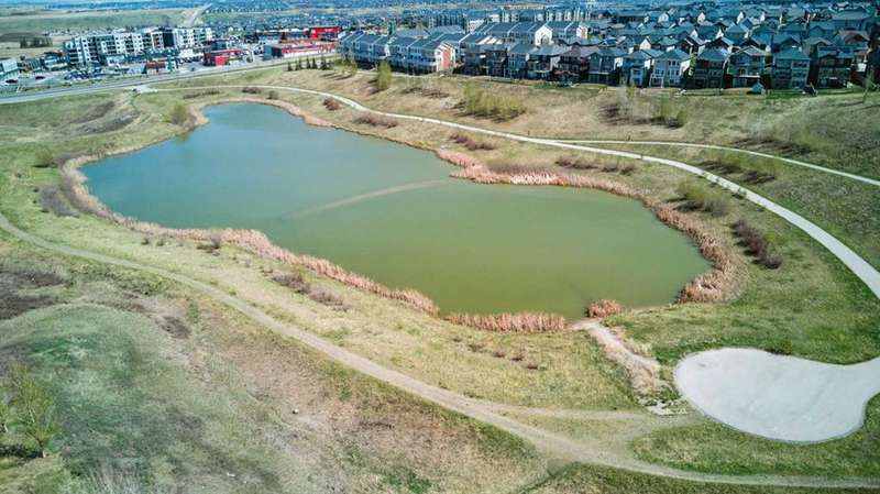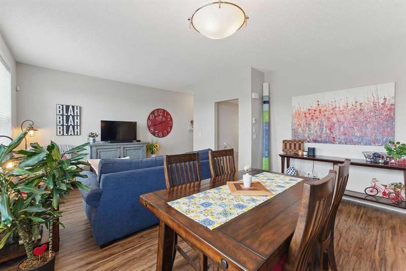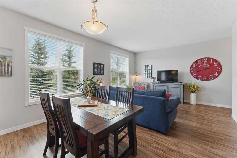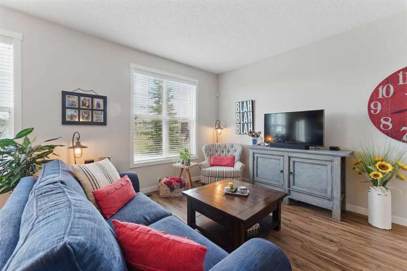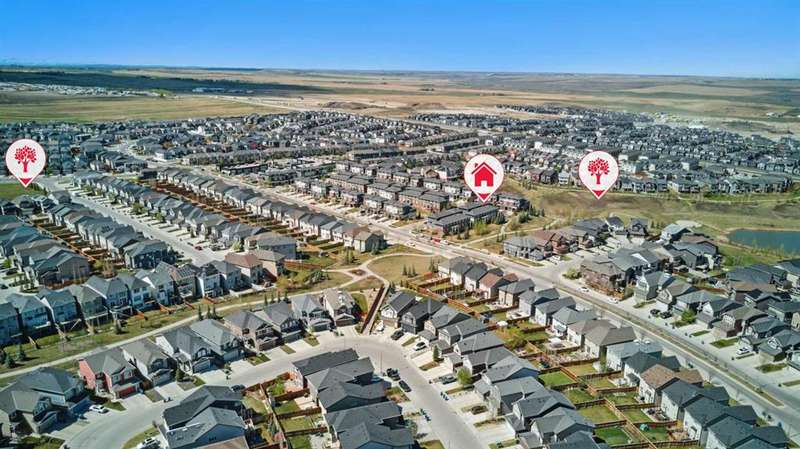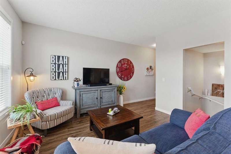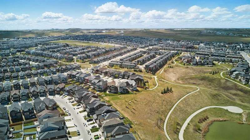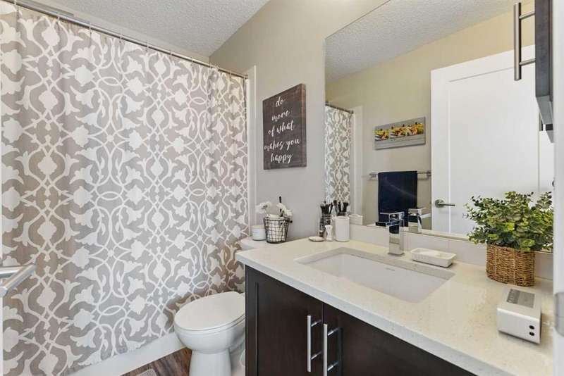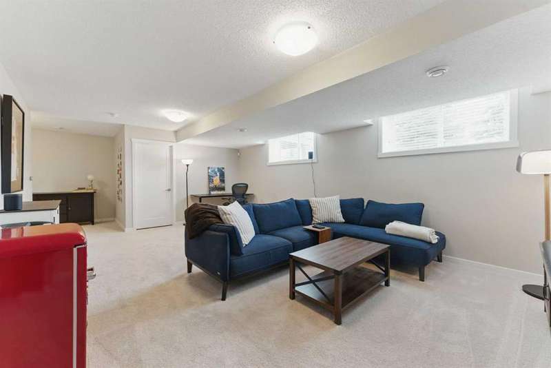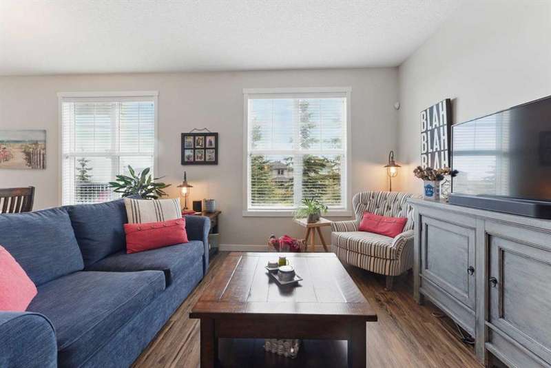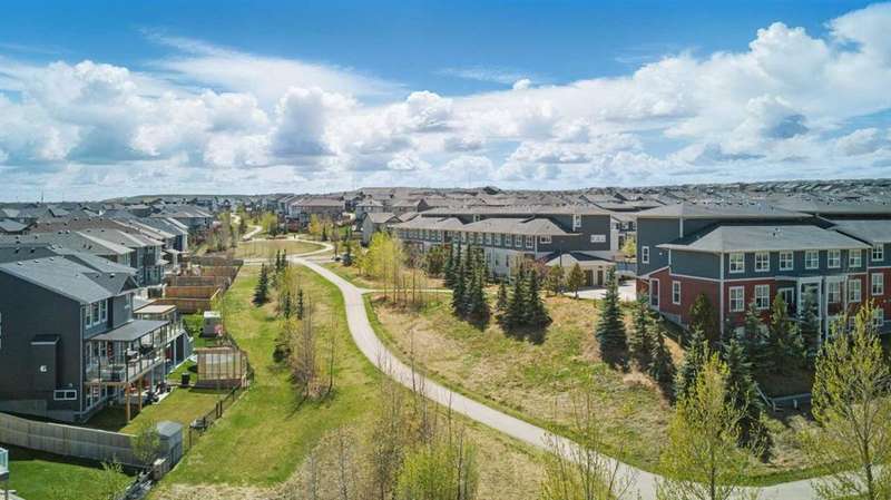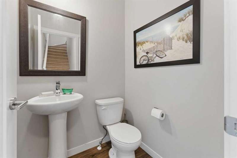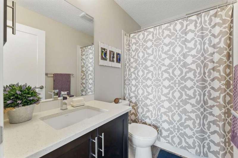 It’s rare to find a beautiful townhouse in such a coveted location—backing onto peaceful green space with scenic walking paths and overlooking a tranquil pond, offering privacy and breathtaking views. The front back stacked layout of these units gives this unit the feel of an END UNIT. Step inside this impeccably maintained 2-bedroom, 2.5-bathroom townhouse and be greeted by an expansive open-concept layout, where the main floor is bathed in natural light. The thoughtfully designed kitchen features rich dark cabinetry, sleek stainless steel appliances, and a large island that seamlessly flows into the spacious living room—perfect for both everyday living and entertaining. Just off the kitchen, step out onto your private deck, ideal for morning coffee or summer evening BBQs. A stylish 2-piece powder room completes the main level. Upstairs, you'll find two generously sized primary suites, each offering its own 4-piece ensuite and a large walk-in closet—creating the perfect balance of comfort and privacy. Every room is carefully positioned to capture the best views and promote relaxation. A convenient laundry room completes the upper floor. The fully developed basement adds even more versatility with a large rec room—ideal as an additional living space, home office, or entertainment area. This home truly has it all: a single attached garage, extended driveway, ample visitor parking, and a backyard oasis with direct access to walking paths and serene pond views. Located in the highly sought-after community of Nolan Hill, this home offers the perfect blend of luxury and functionality, with close proximity to parks, schools, shopping, and major roadways.
