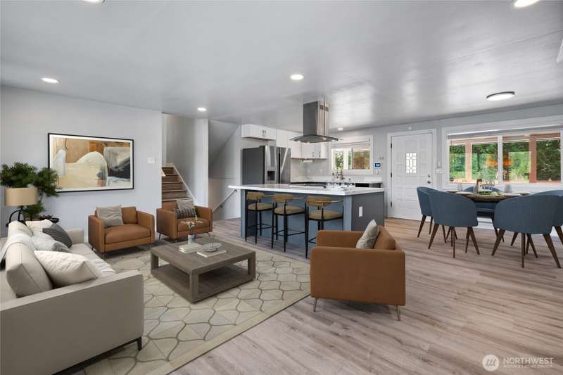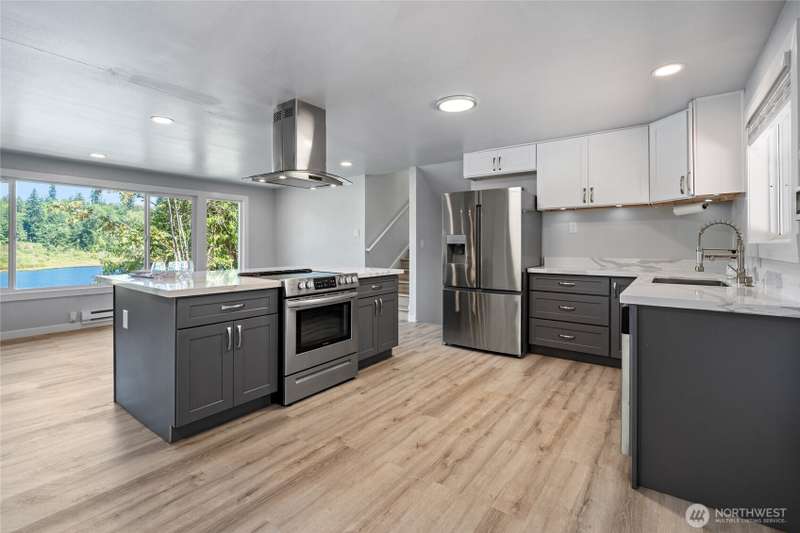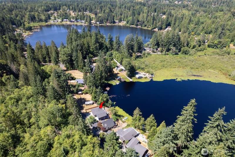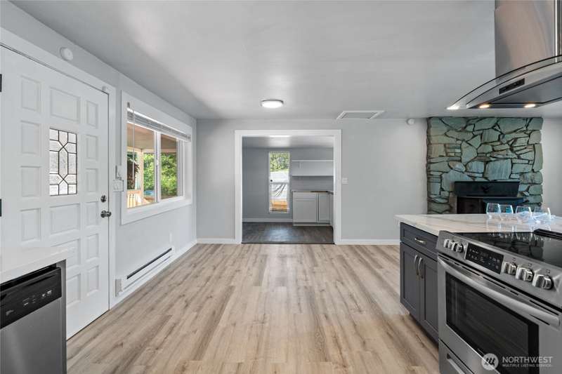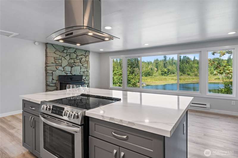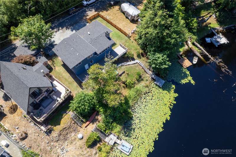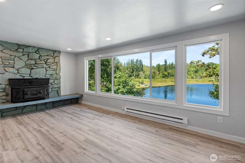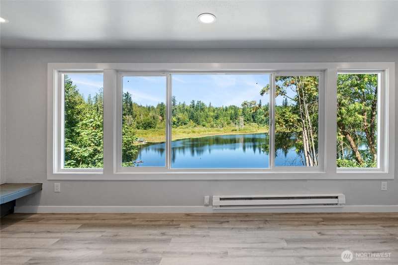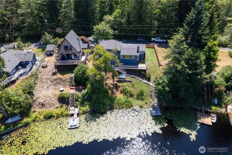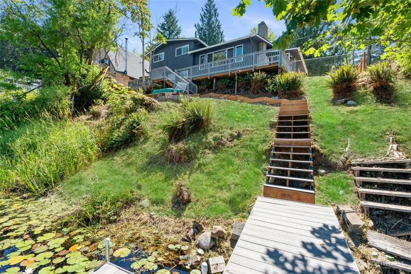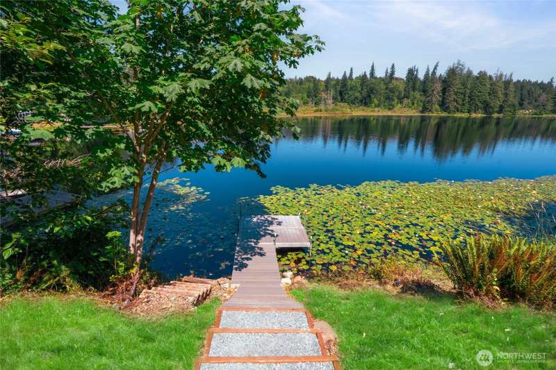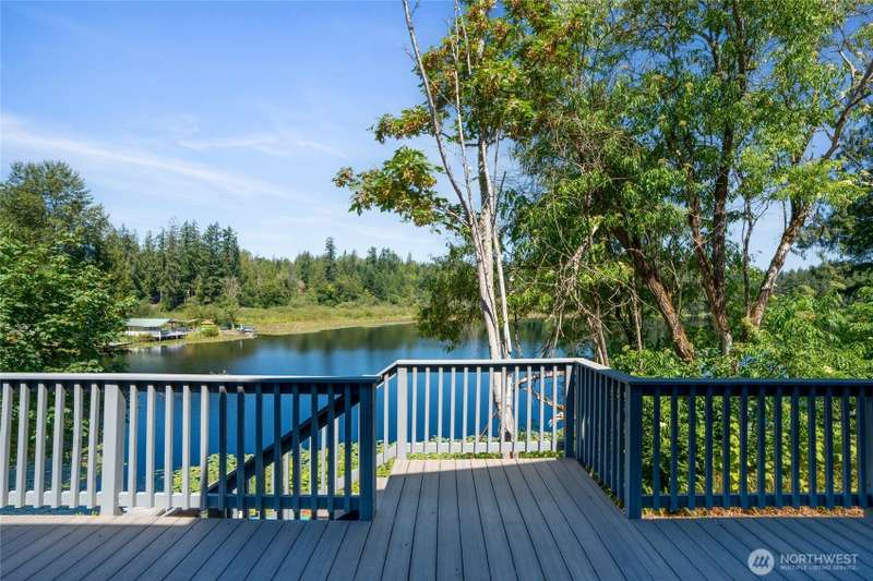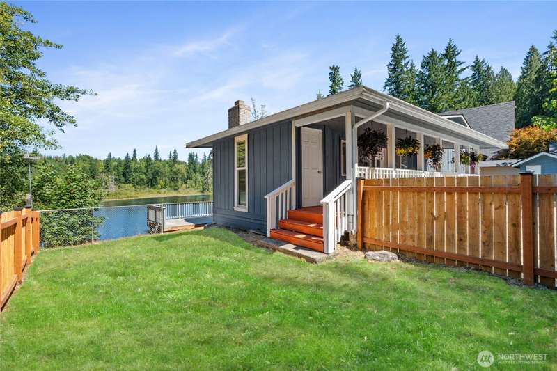 Over 90' of pristine lakefront on a non-motorized lake—perfect for kayaking, paddleboarding, and peaceful evenings fishing. This fully renovated 3-bed, 1.75 bath retreat is turnkey and ready for all seasons! Enjoy a bright, open layout with a quartz island and countertops, newer cabinets, SS appliances, and new LVP flooring throughout, updated windows, and a newer roof. This home is well built, and it's ready to be yours. The spacious living and dining areas showcase stunning lake views, while a cozy fireplace makes it a winter delight. Step onto the newer deck and soak in the serenity of LAKE LIFE—plenty of room to park your boat or RV. Whether you're after a year-round escape, vacation home, or Airbnb opportunity—this PNW gem has it all!