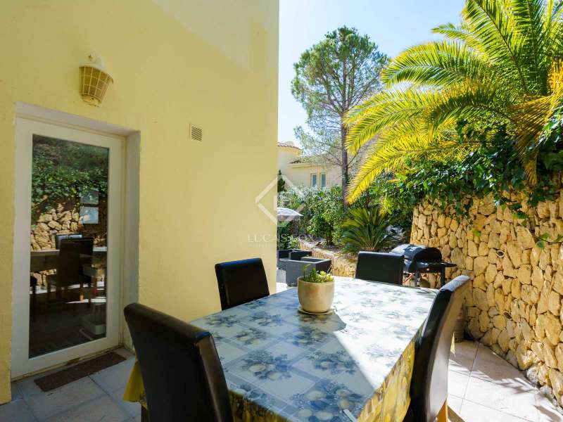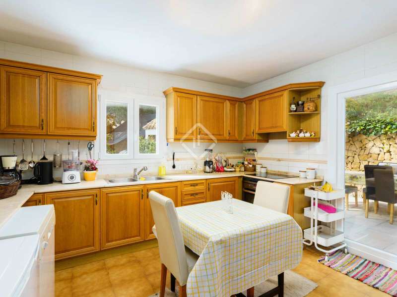 Lucas Fox Altea is pleased to present this characterful villa for sale in a private and quiet development in Altea. It is a property with an approximate area of 185 m² with a layout on two floors with views of the sea and the mountains. The property sits on a plot of 1097 m² southerly aspect. Through an automatic double-leaf door we access the property and arrive at a very comfortable parking area, where we can easily park more than three cars. The main floor is made up of a entrance hall and a very spacious living-dining room that receives abundant natural light, thanks to a glass opening in the ceiling. The living-dining room is presented in two environments: on the one hand, the dining room area with a very nice round table for eight people and on the other, the living area with sofas and fireplace. From the living room, you can access the exterior area where there is a covered terrace, the pool area and 220 m² of open terraces where you can enjoy the magnificent Mediterranean climate. In addition, the floor is completed with a double bedroom with a private bathroom, a comfortable separate kitchen with a window to the dining room, a service bathroom and a separate utility room area. Next, via a staircase, we access the first floor where there are two large double bedrooms, an study that could be converted into another bedroom and a complete bathroom with a bathtub. This floor has direct access to a terrace with beautiful views of the sea and the nature that surrounds the property. The villa has a very well-kept garden with a wide variety of plants such as palm trees, oleanders, bougainvilleas, pines, fruit trees, ivy and stone planters. The villa is in good condition and has new PVC windows recently changed with double glazing, electric underfloor heating , air conditioning in all rooms, built-in wardrobes and an installation of solar panels that significantly reduce electrical costs. The property is located in Altea, in a quiet and very private development , 15 minutes by car from the centre of Altea, the beach and the Mascarat port. For more information, do not hesitate to contact us by email altea@lucasfox.es or by phone number +34 965 208 331 or +34 646 037 026.
