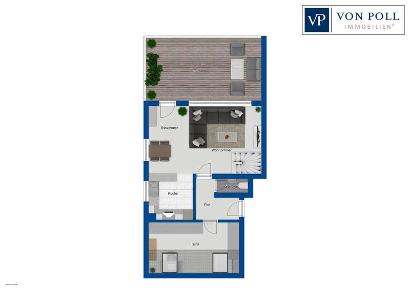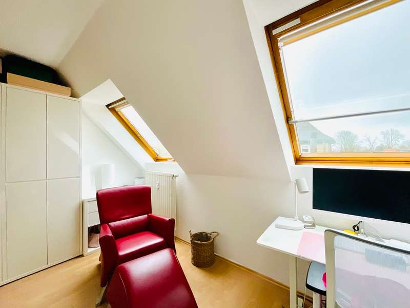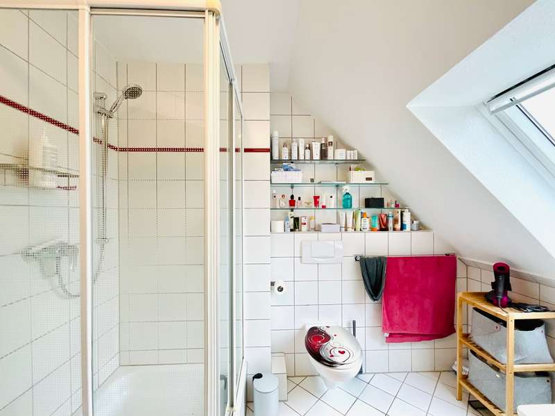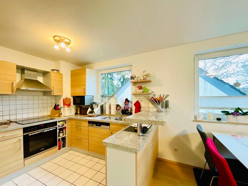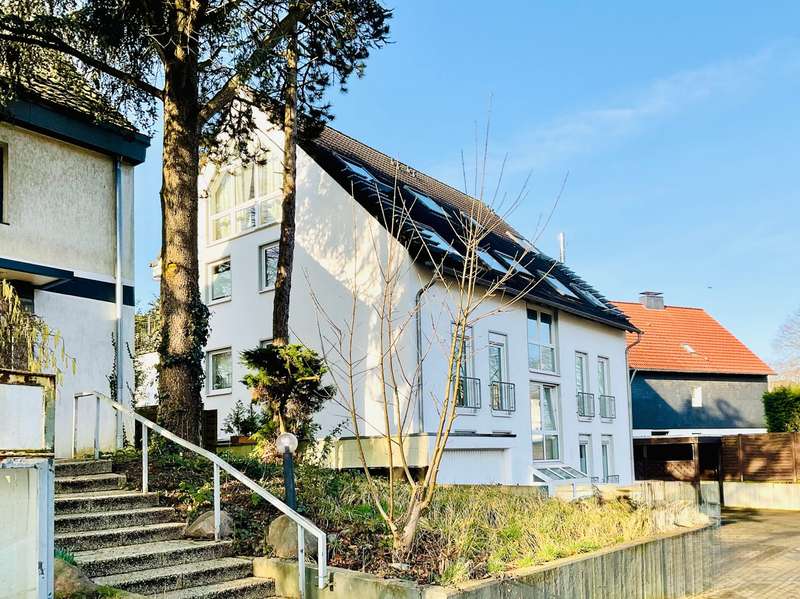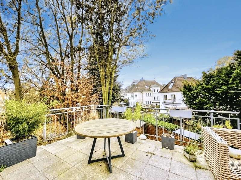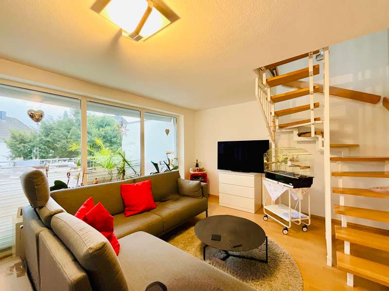 The six-family house, solidly built in 2001, still impresses today with its modern living space concept and high-quality staircase. In addition to the attractive location and the walking distance to Witthausbusch, you will be welcomed by an extremely well-maintained house and a light-flooded condominium. Our approx. 93 m² maisonette apartment on the second floor is spoiled with a spacious 25 m² terrace facing south-west, has many windows in all rooms and thus offers maximum light in all rooms. A fitted kitchen and modern built-in wardrobes further enhance this beautiful apartment and are already included in the purchase price. Ideal for a one or two-person household, the modern floor plan of the apartment is divided into a total of three rooms. The lower level of our property offer provides space for a study, a living/dining room, an open kitchen and a guest WC. The bedroom and a bright bathroom with a bathtub and shower are located on the spacious top floor. A large carport next to the house offers space for your car and bicycles. A cellar room belonging to the apartment (approx. 8 m²) rounds off our attractive real estate offer. The condominium impresses with a modern, open floor plan, bright rooms, a spacious roof terrace and its exceptional state of maintenance. The maisonette is currently rented out and is therefore ideal as a capital investment or for owner-occupation. If you are interested, we will be happy to provide you with a link to an online viewing.