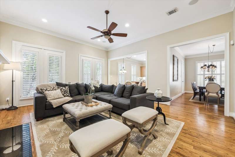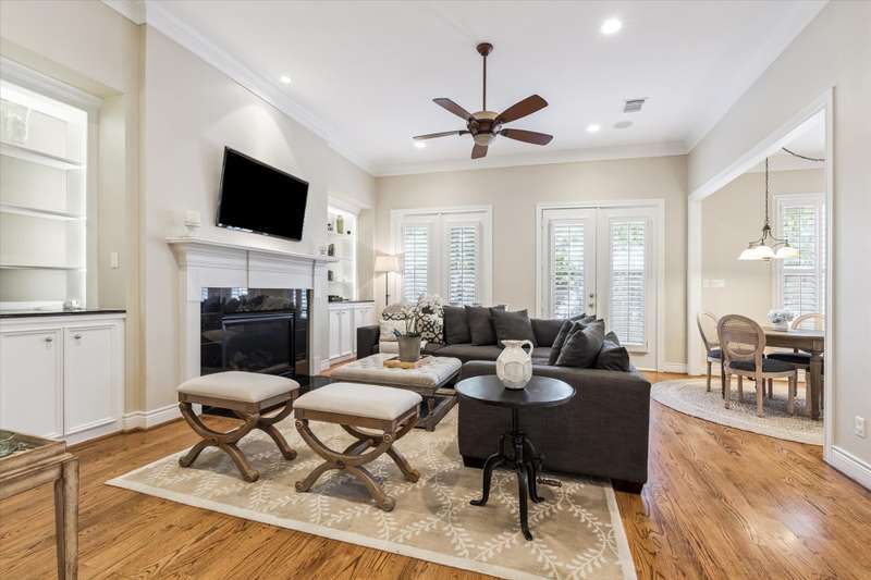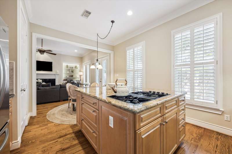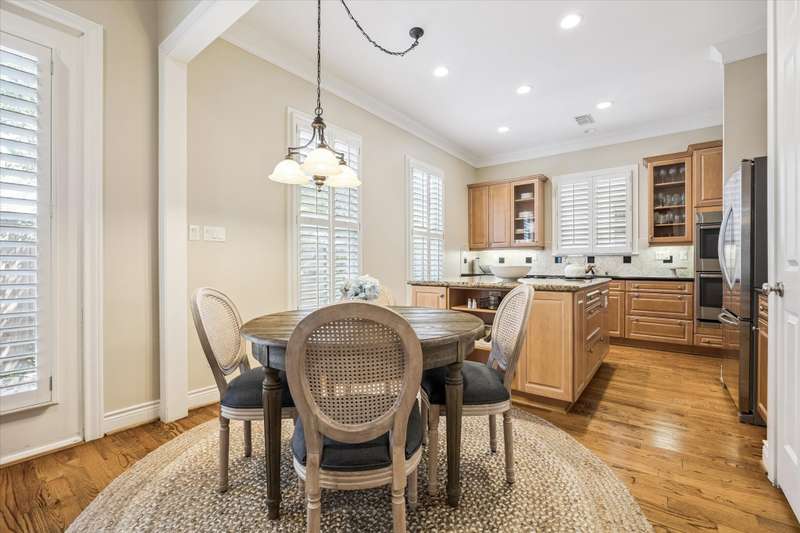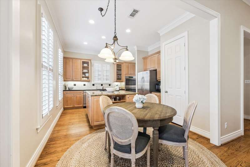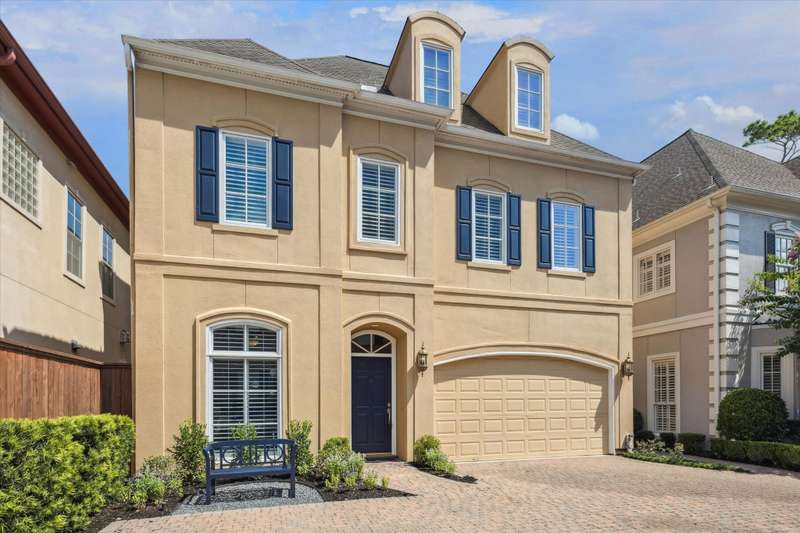 Located in a gated community in the Tanglewood area, this patio home offers a functional layout and generous spaces. The first floor includes beautiful hardwoods throughout, a formal living room, dining room, half bath, and a spacious family room that opens to the kitchen. The kitchen is complete with a large island and breakfast room for convenient dining. Upstairs, the second floor features three bedrooms, including a large primary suite with two walk-in closets. All bedrooms have ensuite baths. The third floor includes a fourth bedroom with full bath and two large walk in closets. Elevator capable. The private backyard provides an expansive outdoor space, perfect for entertaining. Per Seller