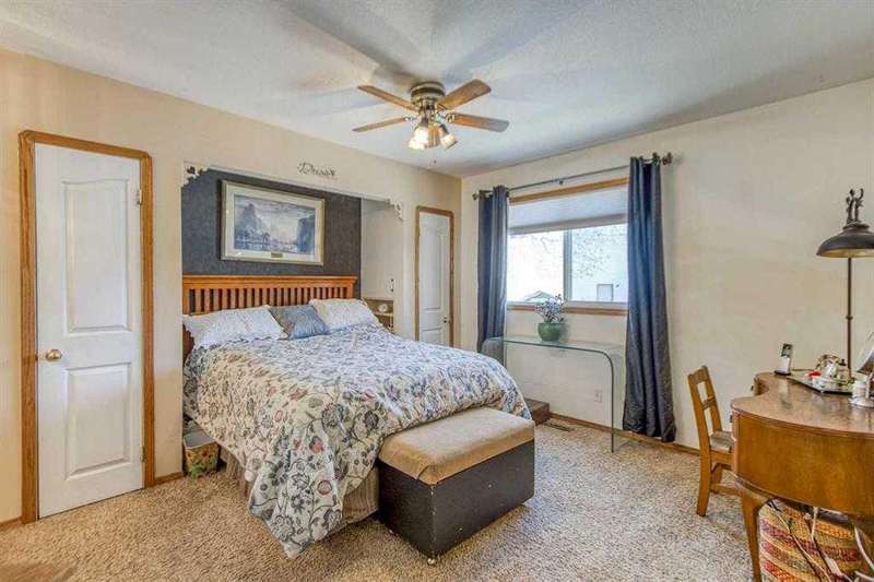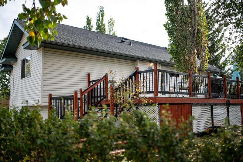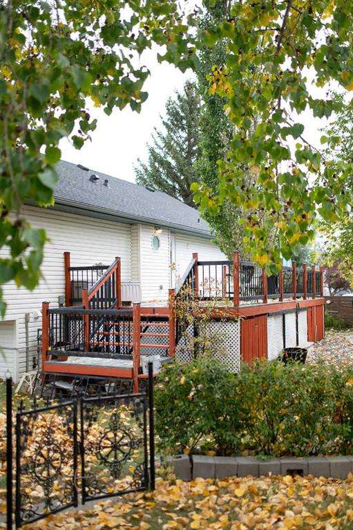 Located in a quiet cul-de-sac in Strathmore’s desirable Greenwood Meadows, this well-maintained home offers 4 bedrooms, 2 bathrooms, vaulted ceilings, and two fireplaces. The fully developed lower level includes a separate entrance, perfect for extended family, or home based business. Enjoy the huge south/west-facing deck, perfect for outdoor entertaining, overlooking a large yard with garden space, RV parking, and room to build a second garage or workshop. The oversized, heated double detached garage adds even more functionality. Upgrades include new shingles (2024), air conditioning, and updated mechanicals. Situated close to schools, sports facilities, shopping, and dining in Strathmore. A rare find with space, privacy, and potential — don’t miss out - call your AWESOME realtor today!