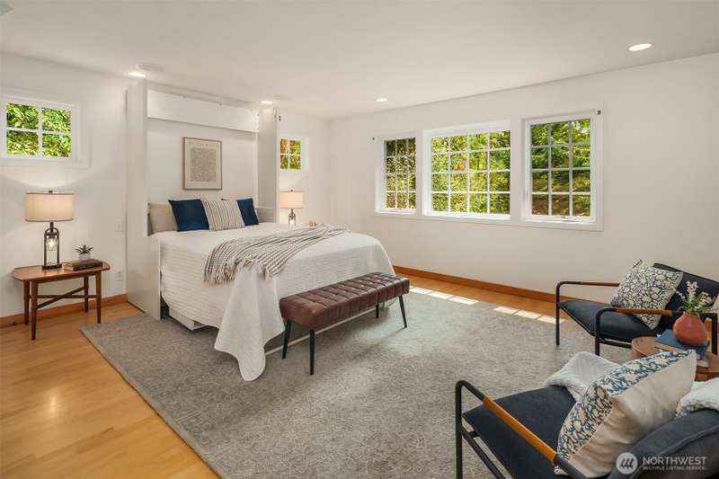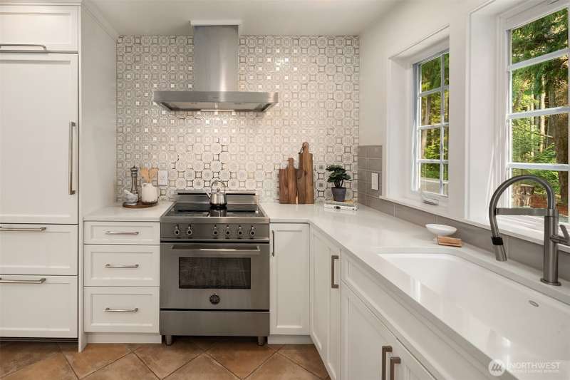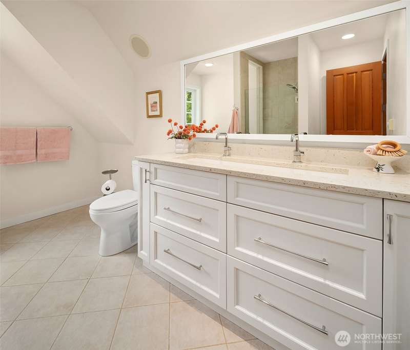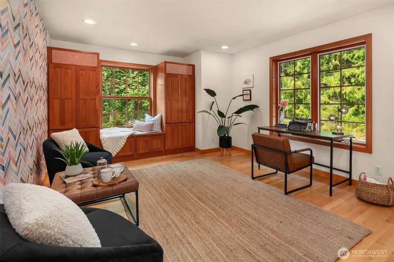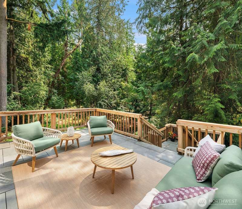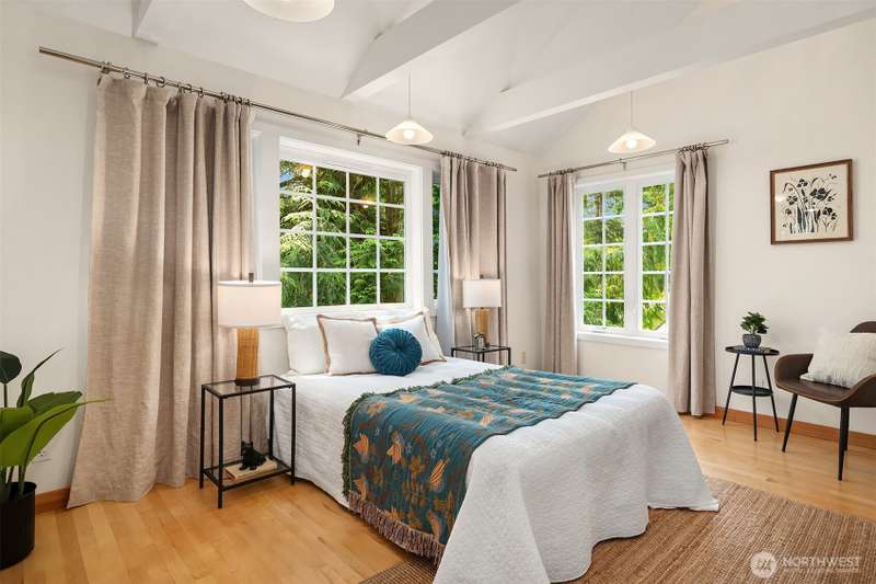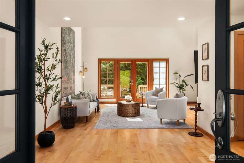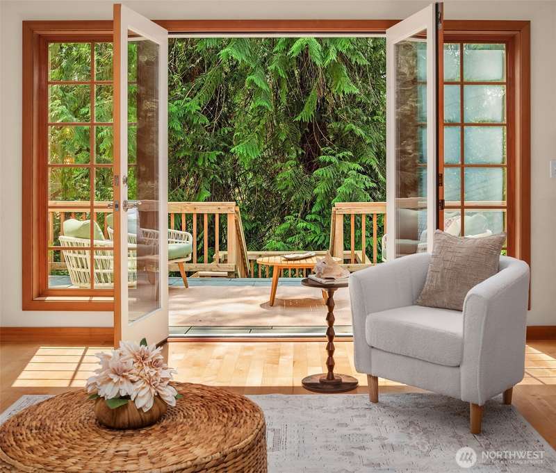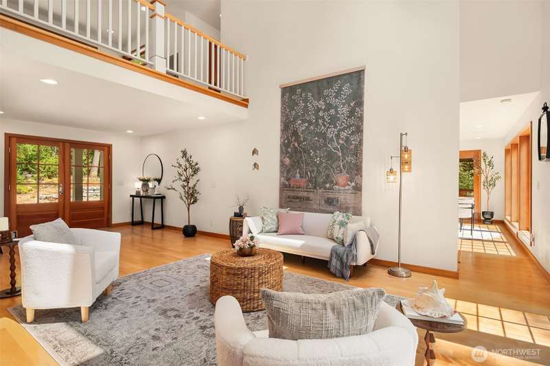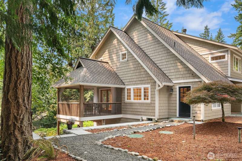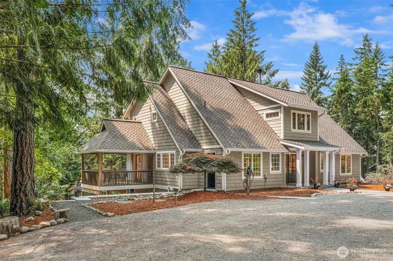 Tucked away on 5 serene acres along Vashon’s west side, this retreat-like home blends elegance w/ privacy. Enjoy the sun-filled LR where madrone floors, a cozy fireplace,& soaring vaulted ceilings create a warm, welcoming ambiance. A hidden door reveals the primary suite w/ dual walk-ins, tiled bathroom & FR doors to the deck. A kitchen designed for both beauty & function, showcasing quartz counters, custom cabinetry, & premium appliances including a Liebherr fridge & Bertazzoni range. Upstairs boasts spacious bedrooms, a bonus room & full bath. Radiant floor heating runs throughout for comfort in every season. A 2-car garage & EV charging completes this peaceful island sanctuary—an inspiring place to live, entertain & recharge.
