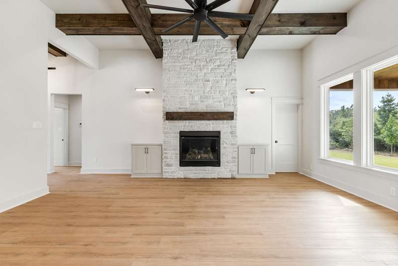 JUST WOW!!! This exquisite new build features top-of-the-line finishes. With beautiful cedar beams adorning the ceiling and quartz countertops throughout, this home is truly a masterpiece!!! The living room showcases a striking stone fireplace, and the vaulted ceilings in the master suite provide an airy feel. This stunning home boasts three bedrooms, two full baths, and an adorable half bath conveniently located off the living room. A spacious office and a generously sized laundry room add to the appeal! You will fall in LOVE the moment you walk inside!