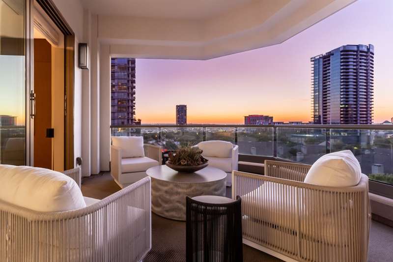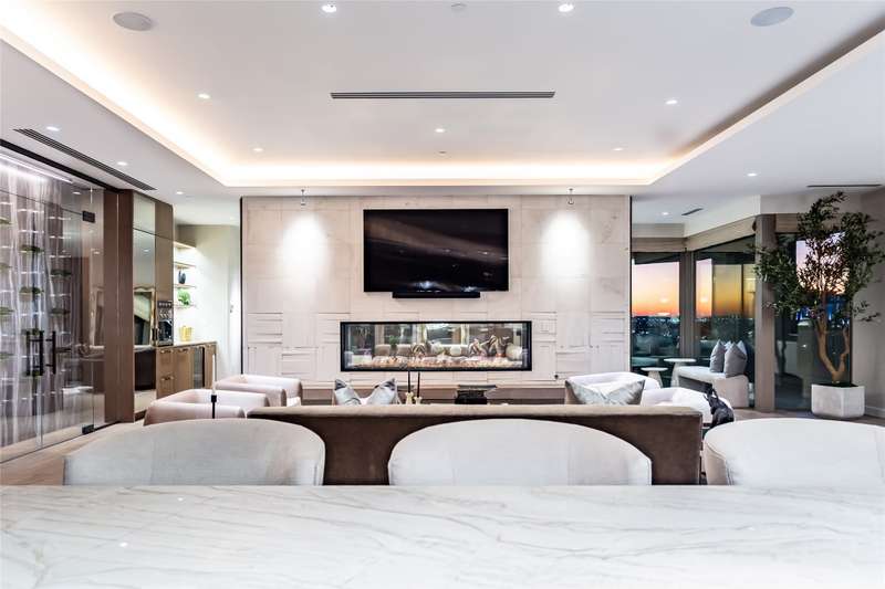 Every detail tells a story of artistry & intention in this bespoke 5,070 sq ft double unit at The Stoneleigh Residences. A masterpiece in the sky where craftsmanship meets couture living. This bespoke residence is a rare one-owner custom home blending timeless design, luxurious materials, & modern sophistication. Every inch is artfully curated with Ornare cabinetry, Aria Quartzite countertops, Ann Sacks tile, Conrad motorized shades, & premier Wolf, Sub-Zero, Meile, and Dacor appliancesincluding a Scotsman nugget ice maker & in-wall Meile coffee system. A stunning wine wall with built-in Dacor dispenser anchors the open-concept Living-Dining-Kitchen, where a see-through fireplace creates a seamless connection to the Family Room. The private elevator vestibule impresses with inlaid marble floor & double starburst wood doors, while a secondary elevator opens discreetly to the Utility Room for deliveries. A flexible bonus roomperfect for a media, game room, or officeoffers leather walls, built-ins, TV & blackout shades with a huge storage closet. The Primary Suite is an oasis of serenity with hand-painted embroidered wallpaper, dual Ornare closets & dual lavish marble baths featuring a shared oversized double shower. Two spacious balconies, one with a four panel double opening, invite you to savor skyline sunsets or morning coffee with city views & seamlessly invite the outside in. Residents enjoy 5-star amenities including valet, concierge, fitness center, 20-person theater, banquet room with catering kitchen, owners lounge, meeting rooms, pool, spa, outdoor fireplaces & grills, a pergola & a treed pet park. Nestled in Uptown, Dallas most vibrant corridor near Klyde Warren Park, Victory Park, the #1 Arts District in the U.S., Design District, The Katy Trail, & downtown, this is luxury redefinedelevated, exclusive & exquisitely detailed. Steps away from four hotels & some of Dallas' finest restaurants, shopping & entertainment venues. Convenient to 5 highways.