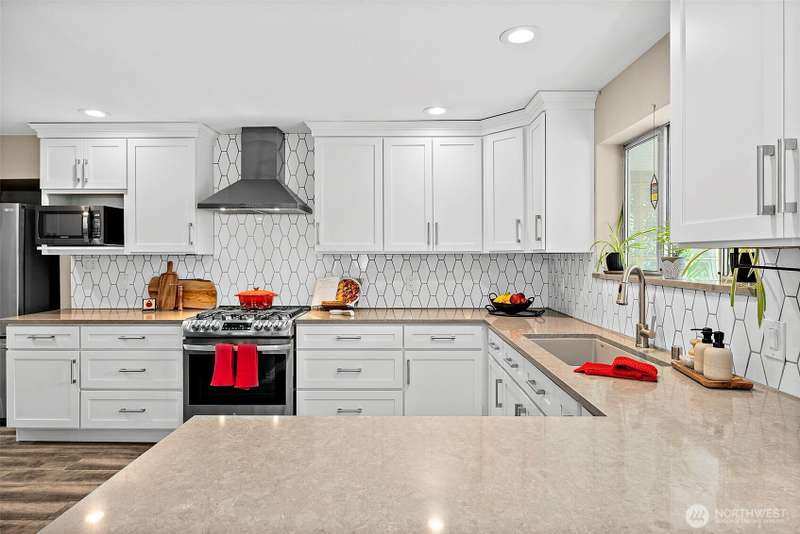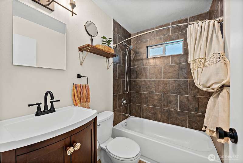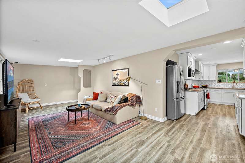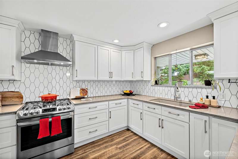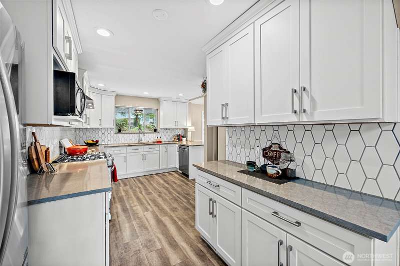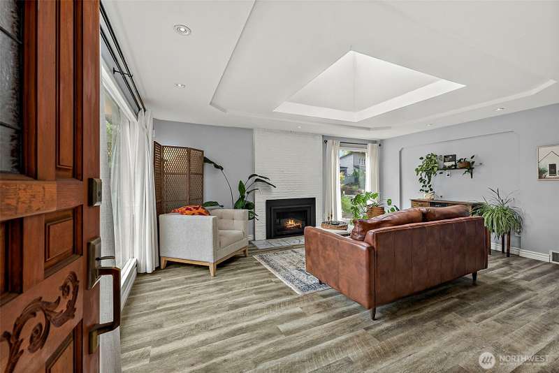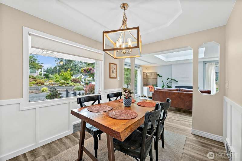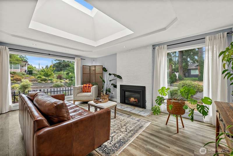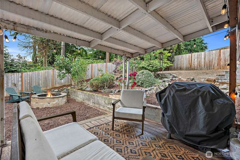 You'll feel like you won the Trifecta with this fantastic Fircrest home that's one-level, fully fenced, and on a corner lot! Tastefully updated with modern touches, the kitchen features quartz counters, white shaker cabinets, stainless steel appliances, & a 5-burner gas oven. The spacious primary suite offers a large 5-piece bathroom with a shower, a towel warmer, & a huge soaking tub. There's also a 'flex space' area for exercise equipment or an office. Impressive skylights throughout provide ample natural light, & the gas fireplace in the living room creates a cozy ambiance. The outside includes mature landscaping, a covered back deck, a fire pit, a large two-car garage, & shed with power. Close to parks, shopping, restaurants & HWY 16!