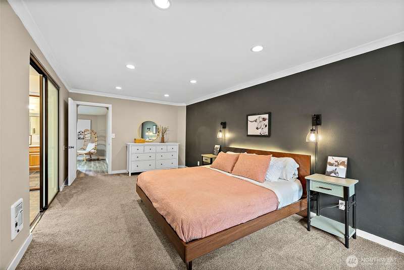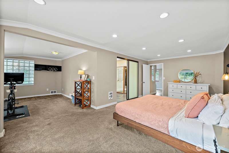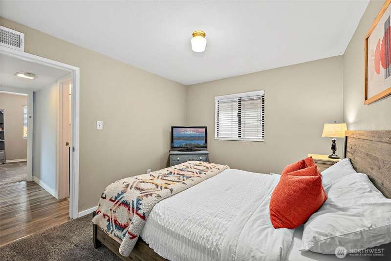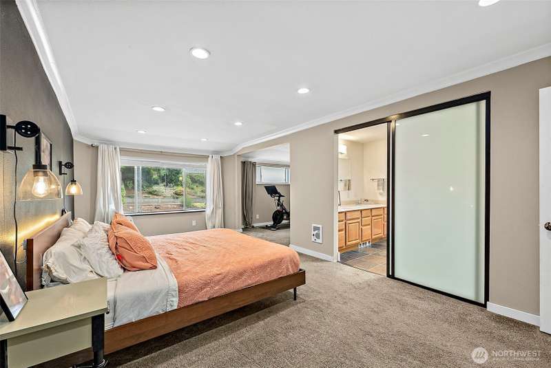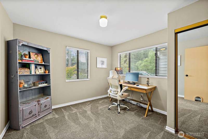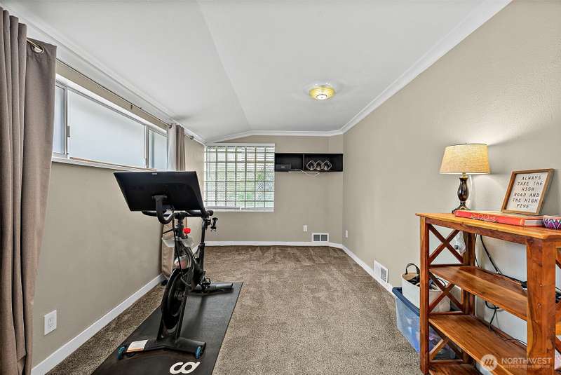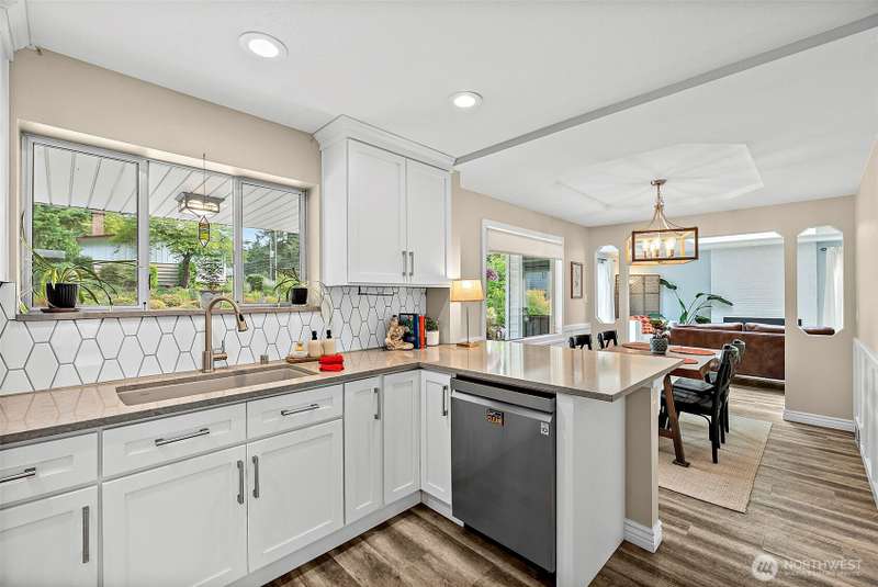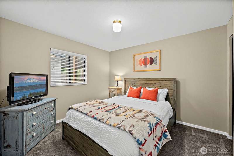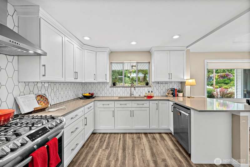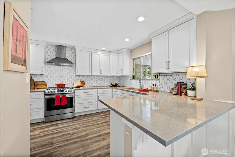 You'll feel like you won the Trifecta with this fantastic Fircrest home that's one-level, fully fenced, and on a corner lot! Tastefully updated with modern touches, the kitchen features quartz counters, white shaker cabinets, stainless steel appliances, & a 5-burner gas oven. The spacious primary suite offers a large 5-piece bathroom with a shower, a towel warmer, & a huge soaking tub. There's also a 'flex space' area for exercise equipment or an office. Impressive skylights throughout provide ample natural light, & the gas fireplace in the living room creates a cozy ambiance. The outside includes mature landscaping, a covered back deck, a fire pit, a large two-car garage, & shed with power. Close to parks, shopping, restaurants & HWY 16!