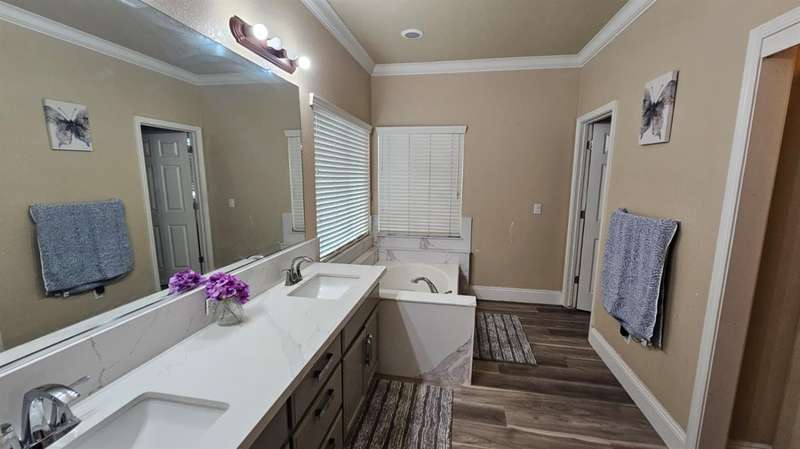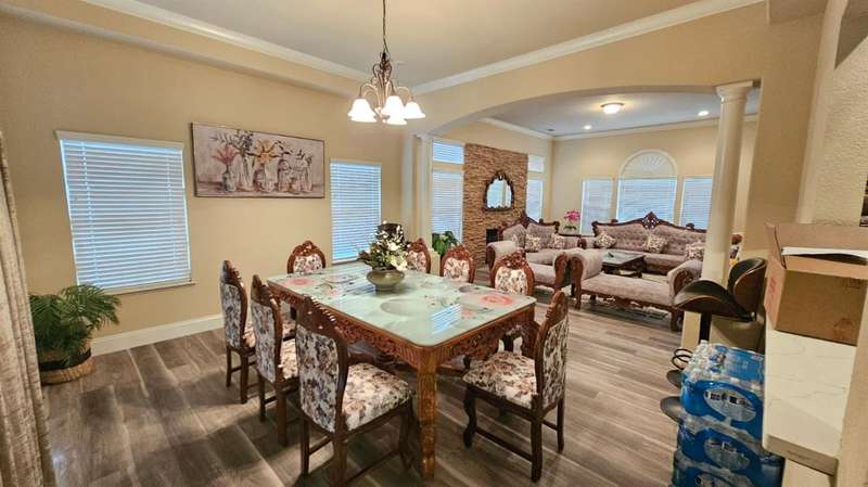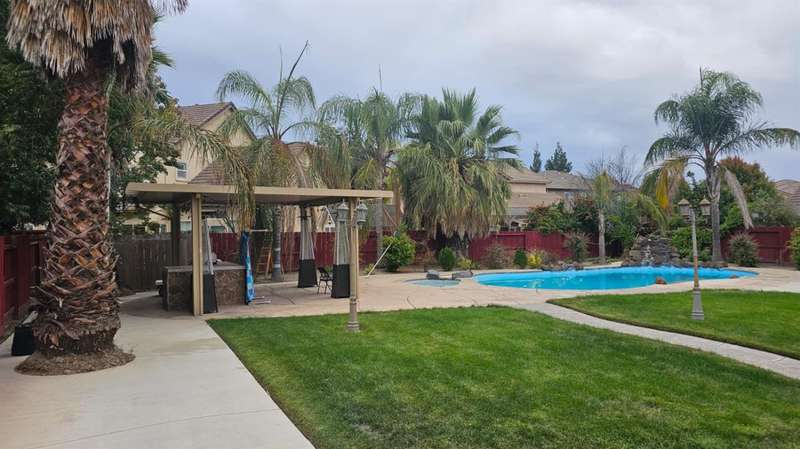 Located at 3703 Brookstone Dr, Turlock, CA, this attractive residential property presents an exceptional opportunity for refined living in a desirable location. The property is in great condition, ready to welcome you home. The living room is designed for both grand entertaining and quiet relaxation, featuring elegant crown molding and a welcoming fireplace that serves as a focal point, perfect for gathering with loved ones or enjoying a peaceful evening. The kitchen is a culinary dream, complete with a backsplash, stone countertops, a large kitchen island, a stovetop, a kitchen bar, and crown molding. The primary bedroom offers a private retreat with crown molding and an ensuite bathroom, while the bathrooms offer a walk in shower and double vanity. Step outside to discover your private backyard oasis, featuring a patio ideal for al fresco dining, a fenced backyard offering privacy and security, a sparkling private pool for refreshing dips, an in ground hot tub for ultimate relaxation, and an outdoor kitchen for effortless entertaining. The home also features a laundry room, and a tiled roof. With 3325 square feet of living area, four bedrooms and three bathrooms, this home features an open floor plan which enhances the sense of space and light.