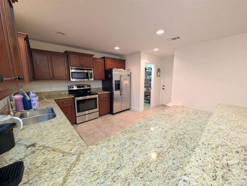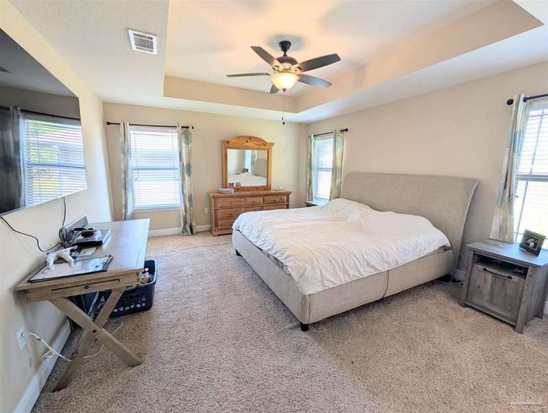 Welcome to this beautiful 4-bedroom, 3-bath Craftsman-style home in Grand Ridge. Built in 2014 and offering 2,238 sq. ft. of thoughtfully designed space, this two-story residence combines comfort, function, and timeless appeal. The main level features a spacious living room, an open dining area, and a modern kitchen with granite countertops, stainless steel appliances, a pantry, and a breakfast bar-perfect for family gatherings or entertaining friends. A guest bedroom and full bath downstairs add convenience and flexibility for visitors or a home office. Upstairs, you'll find a nice family/bonus room, three additional bedrooms, and two full baths. The main� suite offers a peaceful retreat with tray ceilings, a garden tub, separate shower, double vanities, and a large walk-in closet. Step outside to enjoy the fenced backyard, patio, and irrigation system with private well-ideal for kids, pets, and backyard barbecues. Additional highlights include a spacious laundry closet upstairs� and hurricane protection for peace of mind and insurance savings. Located within walking distance to the Elementary School, this home delivers the perfect blend of comfort, community, and convenience.