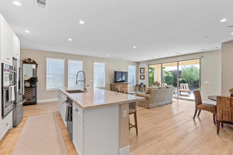 Priced to Sell! Light, bright, and move-in ready, this upgraded Evia model in Trilogy at The Polo Club is your ticket to stylish resort living with breathtaking mountain views.Offering 2 bedrooms + office/den, 2 bathrooms, and over 1,500 sq ft of designer-inspired space, this home blends luxury with comfort. The open-concept great room is anchored by a modern gourmet kitchen featuring stainless steel appliances, quarts countertops, tiled backsplash, an upgraded gas range and oven, built-in microwave, pantry, and a large island with bar seatingperfect for gatherings or quiet mornings at home.Every detail has been elevated with upgrades: luxury plank flooring, wide baseboards, soft close cabinetry, designer window coverings, and great lighting throughout. The primary suite is a serene retreat with dual sinks, quartz counters, and a frameless tiled glass shower.Step outside to your private expanded patio with upgraded landscaping and peek-a-boo mountain views. Plumbed for a fire pit or BBQ, this space was made for entertaining, relaxing, and soaking in desert sunsets.Additional features include tankless water heater, new washer, dryer, leased solar, and energy-efficient design.Trilogy at The Polo Club is one of the desert's premier 55+ communities, offering optional club membership with access to a resort-style pool, lap pool, state-of-the-art fitness center, pickleball, tennis, bocce, and a top-rated on-site restaurant. Conveniently close to world-class golf, shopping, dining, and entertainment, this is desert living at its finest.Don't miss this opportunity to make Trilogy your homewhere connection, convenience, and quiet elegance come together.