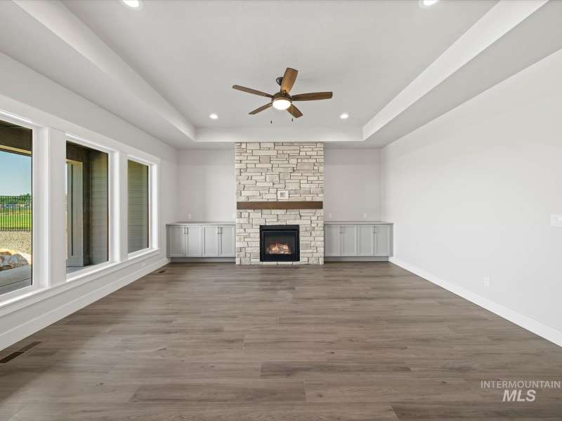 Ask about offered 4.5% interest rate! Welcome to the Durango RV by Riverwood Homes! 4kW Solar System included. Built on just under 1/2 acre, providing picturesque setting highlighting a spacious fully fenced and landscaped backyard and large covered patio. Spacious RV Bay with 13' tall door & approx. 50' deep. Impeccable design with quality craftsmanship throughout. This beautiful home has been designed with designer upgrades & an exterior featuring desirable curb appeal. Beautiful kitchen with abundance of custom-built cabinetry, large island, SS appliances & spacious butler's pantry. Boastful great room with large windows adding lots of natural light & cozy gas fireplace flanked by custom built-ins. Lush owner's retreat with walk-in shower, double vanities & separate soaker tub. Home also features a convenient office space. Northern facing backyard plus full landscaping and sprinklers.