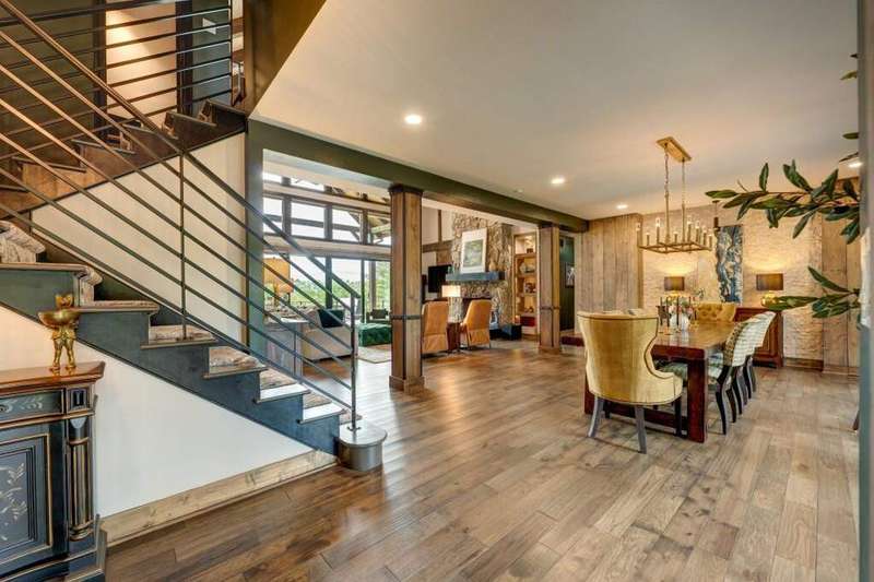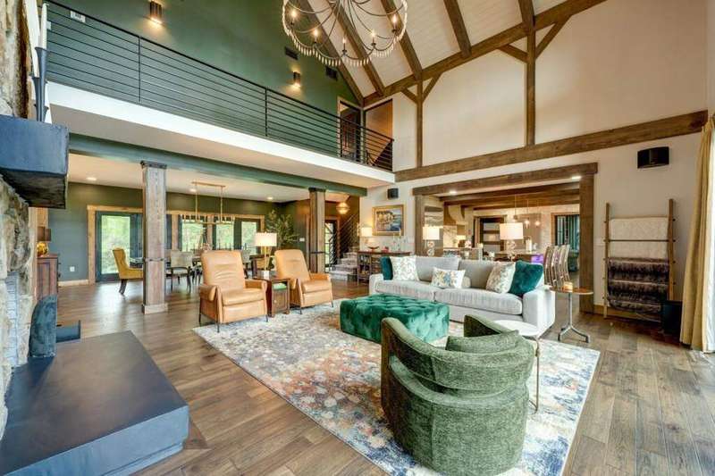 Welcome to Holly Hill Estate, a spectacular property set on 34+ acres showcasing year-round views in every direction. As you enter the property along the gentle pasture, past the vintage barn leading to the impressive home, to the sweeping mountain views from the expansive covered rear deck with swim spa, past the woodlands and down to the serene pasture and 875+ feet of Conasauga Creek frontage, this property encompasses many special moments. The fully furnished home underwent a two-year complete top-to-bottom renovation and transformation, with attention to detail and impressive finishes throughout. A complete features list is available to detail the significant level of improvements. Highlights include the chef's kitchen with custom white oak cabinetry, Quartzite countertops, and Monogram appliances. The den's Renaissance inspired details wow with custom cabinetry, marble and bronze inlays, a stunning ceiling fresco and private deck with stone fireplace. The great room's soaring ceilings, walls of glass to take in the views, custom cabinetry, stone fireplace, and doors opening to the covered deck create a welcoming space for year-round entertaining. The serene main level primary suite delights with a linear fireplace and luxurious spa bathroom; while the upper level has three ensuite bedrooms, one of which is oversized and suitable as a game room, media room, secondary living room, or bunkroom. Custom lighting, stone and wood details and bespoke furniture, all sourced from around the world complete the refined and luxurious interior. The exterior was designed for minimal maintenance with a new roof, soffits, fascia and gutters, no-fade siding, composite decking and cable railings, and new windows and doors throughout. Enjoy year-round comfort with three HVAC units, whole house generator, three propane tanks and fiber optic internet. Entertainment and relaxation abound with 4 fireplaces, 2280+sq ft of finished outdoor space with multiple front and rear covered spaces, heated swim spa, outdoor shower, fire pit, shooting range, multiple trails, and the peaceful pasture and creek frontage for year-round enjoyment. Suitable as a full time, secondary or vacation rental residence, with room for additional homesites, recreation, or equestrian use make this property so special. Enjoy the best of the North Georgia Mountains being conveniently located only 12 minutes to downtown Ellijay and 30 minutes to downtown Blue Ridge, making Holly Hill Estate an extraordinary property to call home.