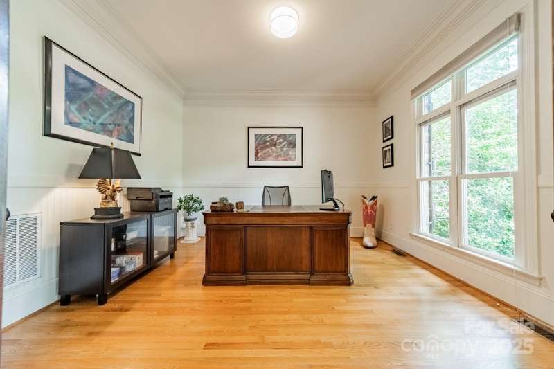 Nestled in the heart of Stonecroft - one of South Charlottes most sought after neighborhoods, walkable to restaurants, school, grocery & shops, incredibly private and gorgeous fenced backyard (complete with boulders and creek) this fortress of a home is waiting for you! A chefs kitchen with huge pantry, 5 ensuite bedrooms with primary on main, two offices, screened in porch, media room, bonus room, exercise room, 3 car garage, drop zone, outdoor patio with fireplace, walk-in storage galore and an open floor plan this beautiful home will satisfy all of your needs along with all of your wants! Extremely impressive and unique. New roof in 2022! New water heater 2025. Come take a look!