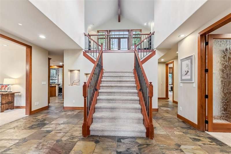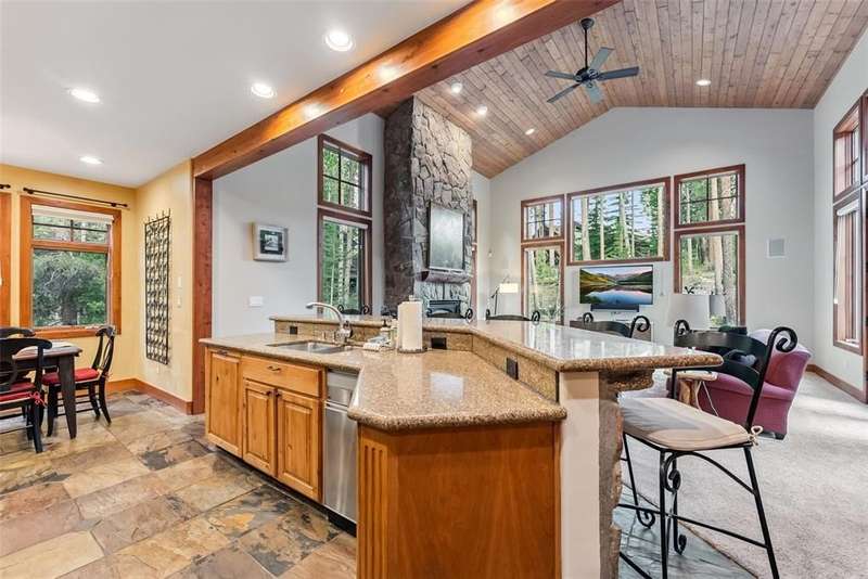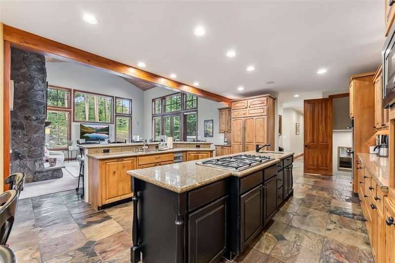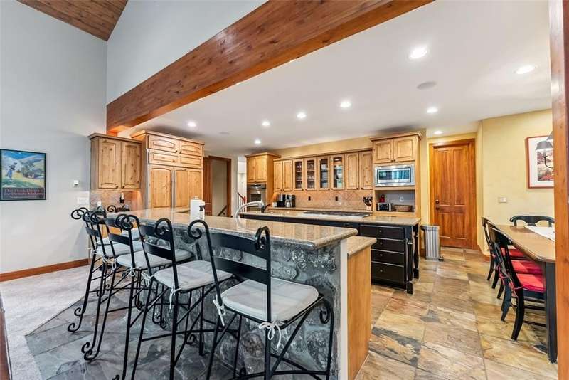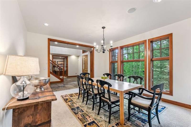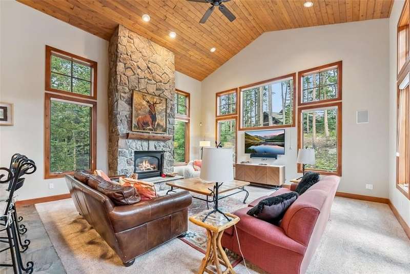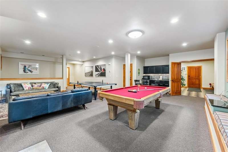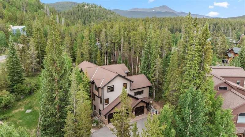 Mountain Views, Privacy & Central Location – The Ultimate In-Town Breckenridge Home This exceptional 6-bedroom home in the desirable Sunbeam Estates neighborhood offers incredible value at just $579 per square foot — well below replacement cost. Enjoy both privacy and convenience in a peaceful wooded setting just a short walk to Main Street, the skier shuttle, Carter Park and the Ice Rink. The open floor plan is ideal for entertaining, featuring a gourmet kitchen, spacious great room with stone fireplace and a large second living area with billiards, ping pong and a wet bar. Additional highlights include 4.5 bathrooms, a dedicated office, library/loft with balcony, expansive sunny deck with a hot tub and a 3-car garage. Mountain views, easy access to trails and a newly installed boiler make this well-maintained home a rare in-town gem!