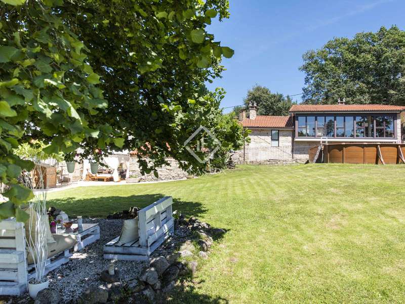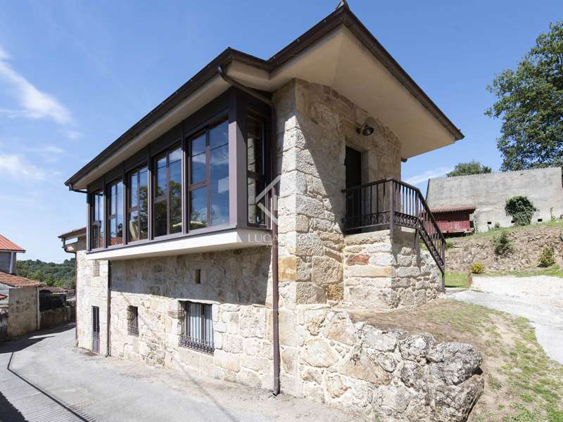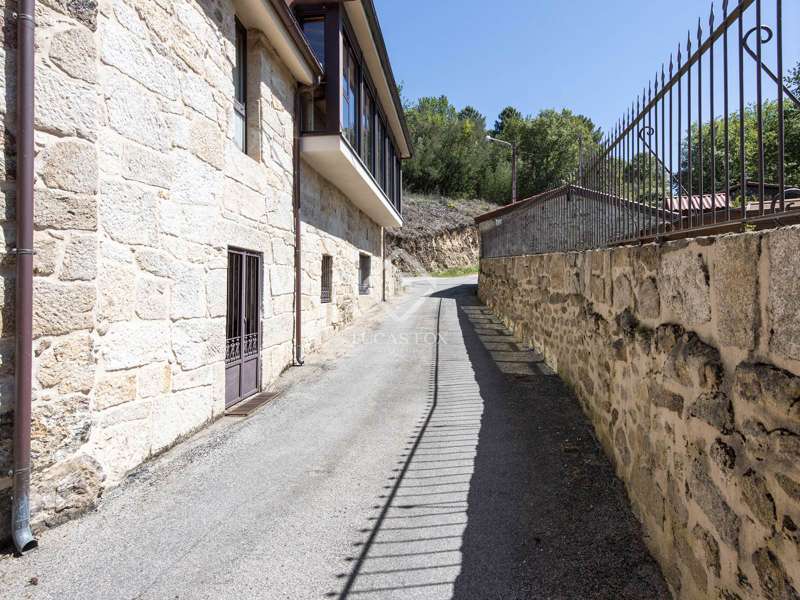 Inland in the province of Ourense, we find this well-built corner stone villa for sale with a large plot, renovated with good quality materials and an excellent layout. The first stones of the property were placed in the early 1900s, and it was renovated with exquisite detail in 2008. The property is finished with good quality interior joinery and a lovely layout combing three villas into one large beautiful property. The building has two levels of space facing south-east and west, benefiting from all-natural light throughout the day. Once we arrive at the villa, we are welcomed by the stairway leading to the large living and lounge section, which offers vaulted wood-finished ceilings and tile flooring. The interior features large windows overlooking the generous garden area and a wood-burning fireplace, well-finished Italian stucco wall and exposed stone-finished pillars and walls. Down the hall, we find a small dining area with built-in cupboards. Next to the dining area, we access the kitchen area with good quality, well-maintained appliances. Down the hall, we find the night section. Here, we have two double-size bedrooms, a shared bathroom and the master en-suite with its fireplace. A large gallery is next to the main bedroom, which is currently used as a sitting area. On the ground floor, we have a large dining room which gives direct access outside, and is perfect for enjoying with family and friends in the winter and summer months. This area of the ground floor benefits from a nice size family room with a wood-burning fireplace, another en-suite bedroom and a guest toilet. On this level, we find a large laundry room, a study area and a small gym. On the rear side of the villa, we find a small inner patio, which can be used for parking or an easy-to-maintain garden area. Here we see a large storage room to keep garden materials. On the front side of the villa, there is the possibility of purchasing 1,000 meters of urban land, which belongs to the current owners. The whole package would be a total of 760.000,00 €. You will have a large workstation and a utility room. On the opposite side, we find the large garden section, and here we will see the historic cellar in good condition that can be used in the winter and summer months and the parking area finished to welcome two cars. The front garden is finished with an outdoor dining area, many chill out sections, an above-ground pool and a vegetable garden. The garden is finished with fruit trees and large plants to enjoy with family and friends. This property would be ideal for a family looking for a property in a relaxed environment to enjoy throughout periods of the year. It is a property of 3 villas combined into one large home, offering a fantastic layout, good quality materials, all well maintained.