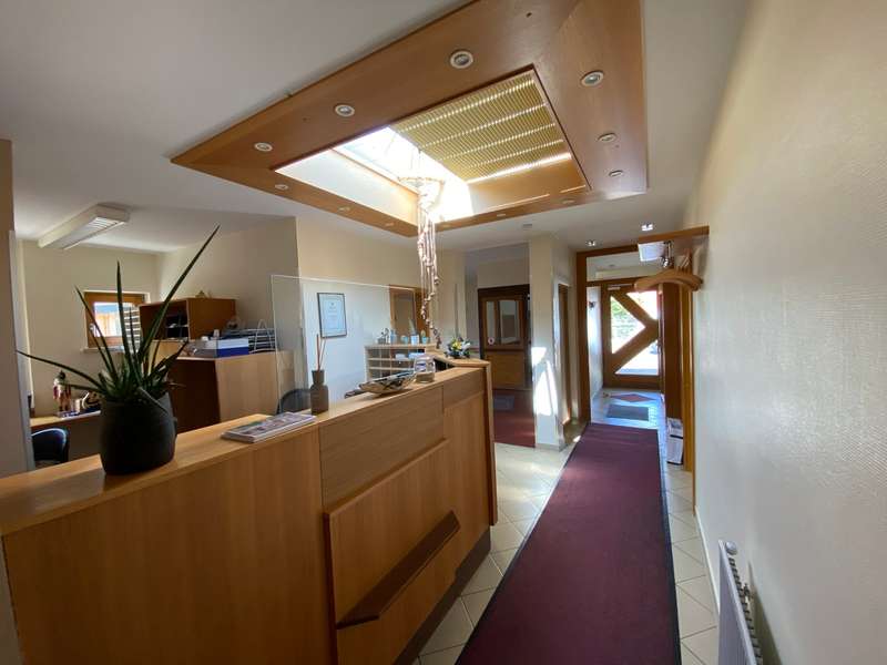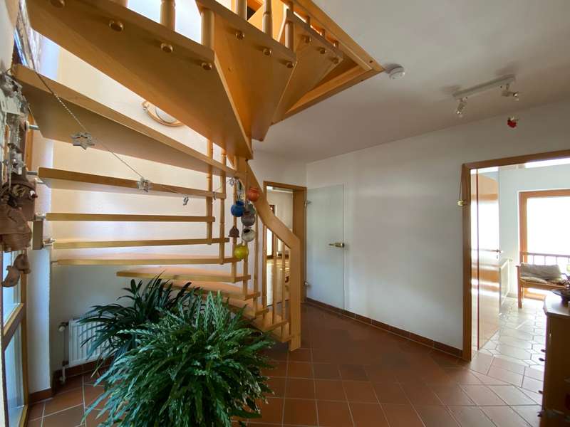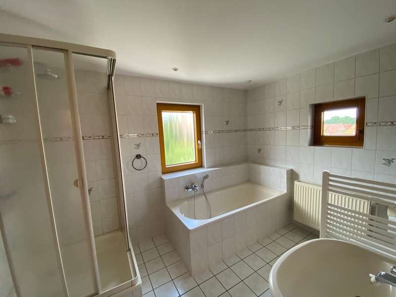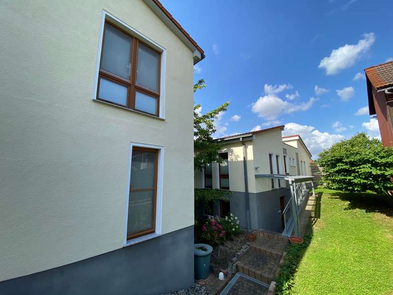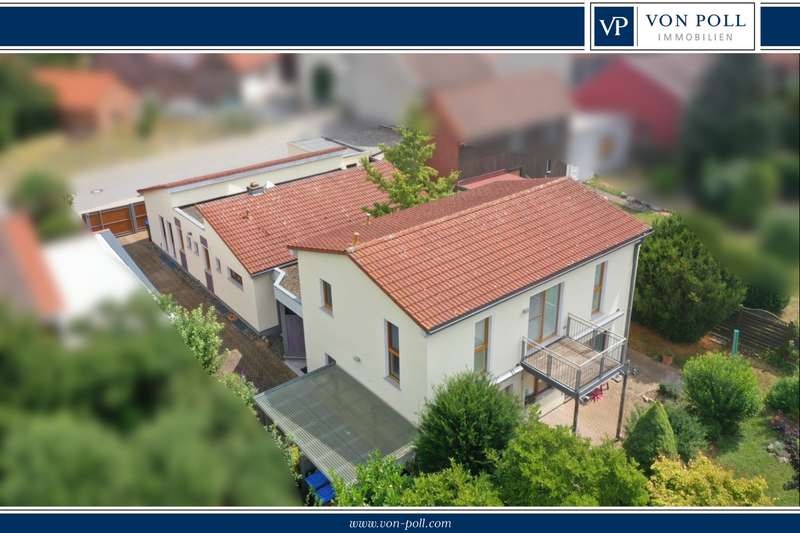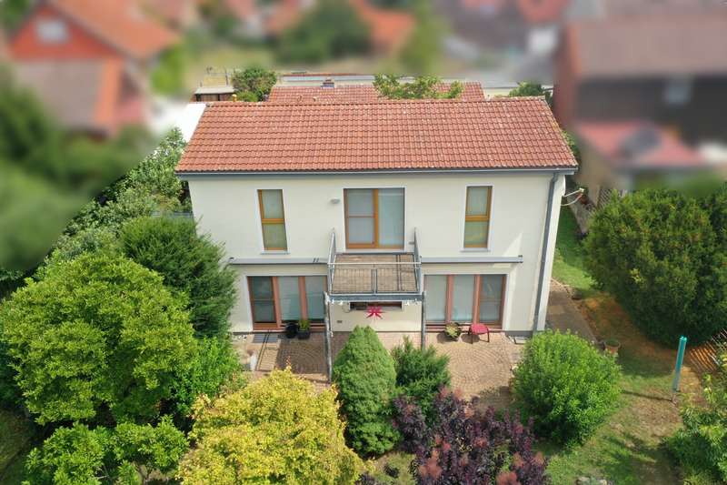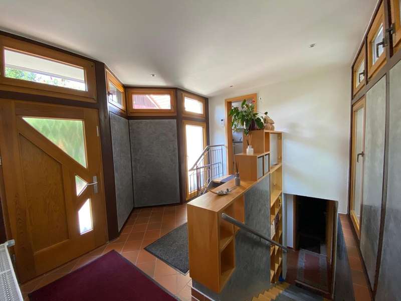 This well-kept property from 1993 combines living and working in an ideal way. There are two separate buildings on a 792 m² plot, which offer a wide range of possible uses - whether as a combination of residential building and practice, for multi-generational living or for renting out. The total living and usable area is approx. 416 m². The house has approx. 123 m² of living space spread over two floors. On the first floor there is a bright living area, a spacious kitchen with direct access to the sunny terrace and a modern bathroom with underfloor heating. Large, floor-to-ceiling windows provide plenty of natural light and a friendly living atmosphere. The terrace is accessible from both the living room and the kitchen and forms a seamless transition to the garden - ideal for relaxing hours outdoors. The well-tended garden offers plenty of space for children to play, for hobby gardeners or simply for relaxing in the greenery - a real highlight for families. The upper floor comprises three well-proportioned rooms, another comfortable bathroom with underfloor heating and a balcony with a beautiful view of the greenery. A particular highlight is the spacious full basement of around 178 m², which is partially heated and suitable for various uses, for example as storage, a hobby area or for commercial purposes. The second building on the property offers approx. 98 m² of usable space on the first floor and was previously used as a medical practice. The rooms can be arranged flexibly and are ideal for commercial use, but also as an office, studio, granny apartment or as additional living space. It can easily be rented out or used by family members. The entire property is heated by a central oil heating system. The energy values are in the solid range: the final energy consumption for the residential building is 85.1 kWh/(m²-a) and for the outbuilding 100 kWh/(m²-a) for heat and 19 kWh/(m²-a) for electricity. A garage, a carport and additional outdoor parking spaces are available for the vehicle fleet. This property impresses with its versatility, spacious areas and well-kept furnishings. The quiet location, direct access to the garden, the well thought-out room layout and the possibility of combining living and working on one property make this offer particularly attractive - for families, the self-employed or investors.