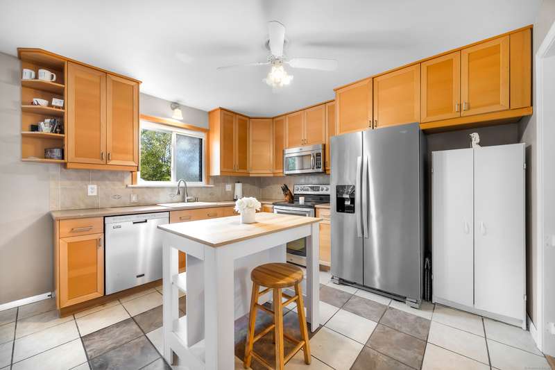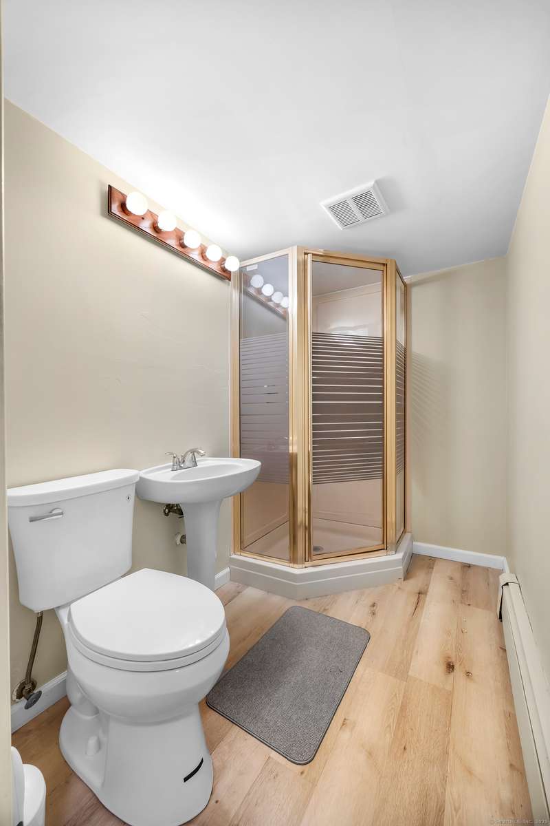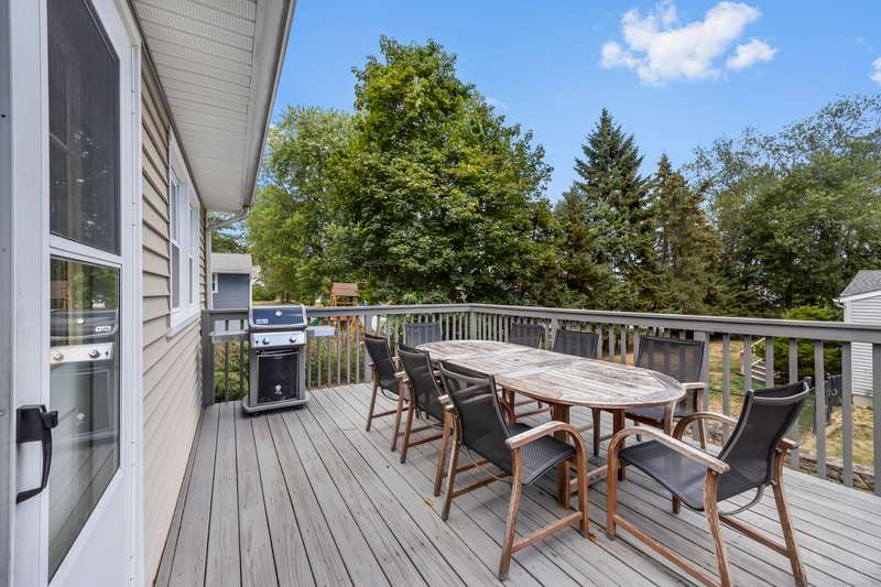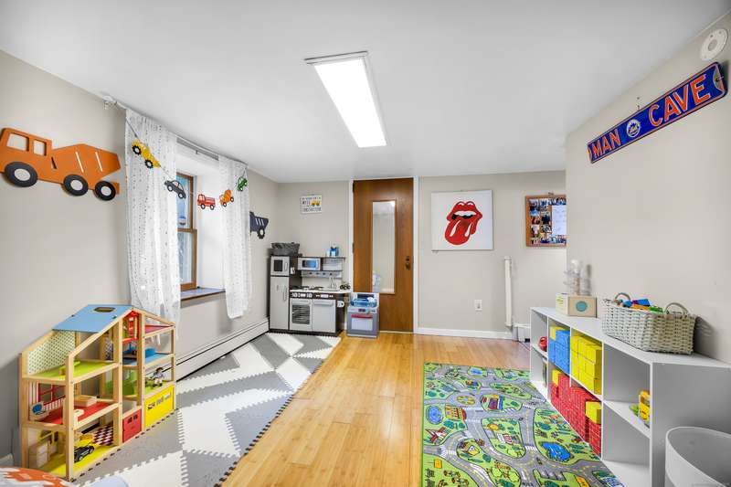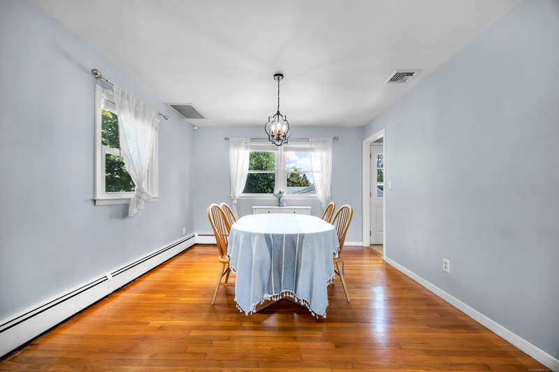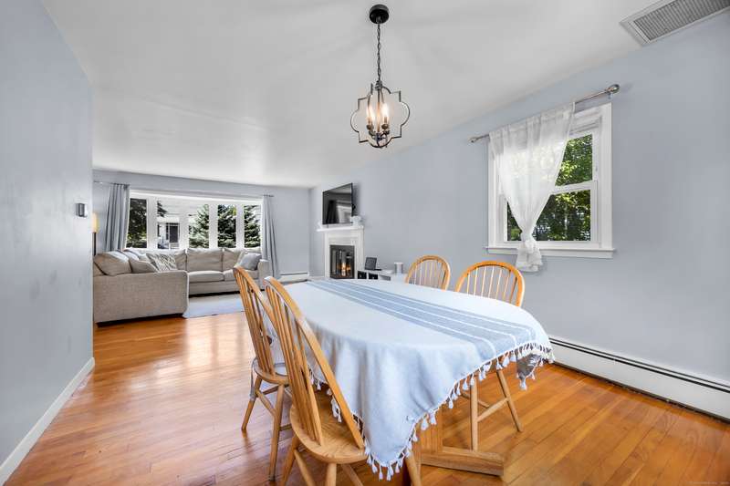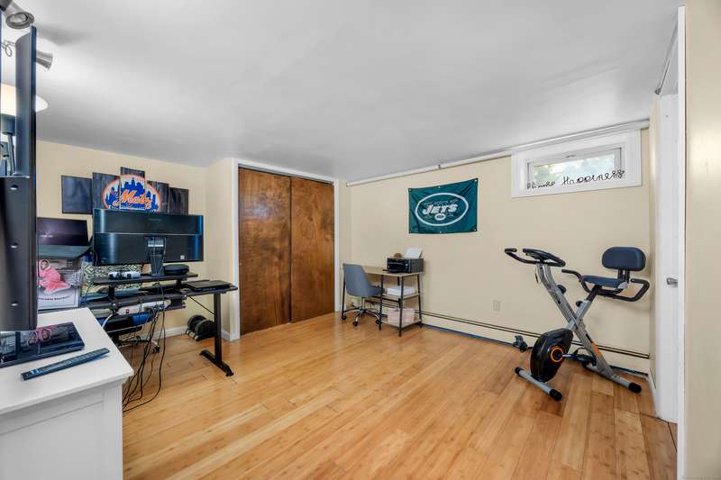 Welcome to this bright and inviting 2-3 bedroom ranch, offering a flexible layout and move-in ready comfort. The main level features a spacious living room with a large bay window that fills the space with natural light and a cozy fireplace that anchors the room. The adjoining dining area flows into a cheerful kitchen with abundant cabinetry, new stainless steel appliances, and a center island, making it the perfect hub for both everyday meals and entertaining. Two well-sized bedrooms and a full bath complete this level, all accented by warm hardwood floors and fresh, neutral tones. The finished lower level has its own private entrance and offers endless versatility. A den or playroom, as well as a private room with full-sized closet that easily serves as a 3rd bedroom, office, or gym, plus a full bathroom with shower, provide options to fit any lifestyle. Bright windows, updated flooring, and ample storage add to the appeal. Outside, enjoy a level backyard with a raised deck for grill