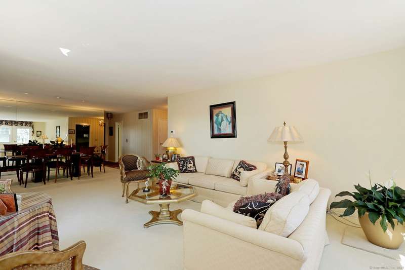 Welcome to Mosswood, one of Fairfield's most sought-after condominium communities-renowned for its unbeatable location, beautifully maintained grounds, and low common charges. Ideally situated within the complex, this bright and spacious second-floor end unit offers privacy, natural light, and effortless access to all that Fairfield has to offer. This three-bedroom, two-bath home features a generous, open-concept living and dining area-perfect for entertaining. Numerous windows flood the space with sunshine throughout the day, and a private deck just off the living room offers tranquil views above the rest of the complex. The updated eat-in kitchen offers ample cabinetry, counter space, and room to gather. On one side of the unit, the private primary suite includes a walk-in closet, in-unit laundry, and a full bath. On the opposite wing, you'll find two additional large bedrooms and a full hall bath-ideal for guests, family, or a home office setup. Beautiful hardwood floors run through